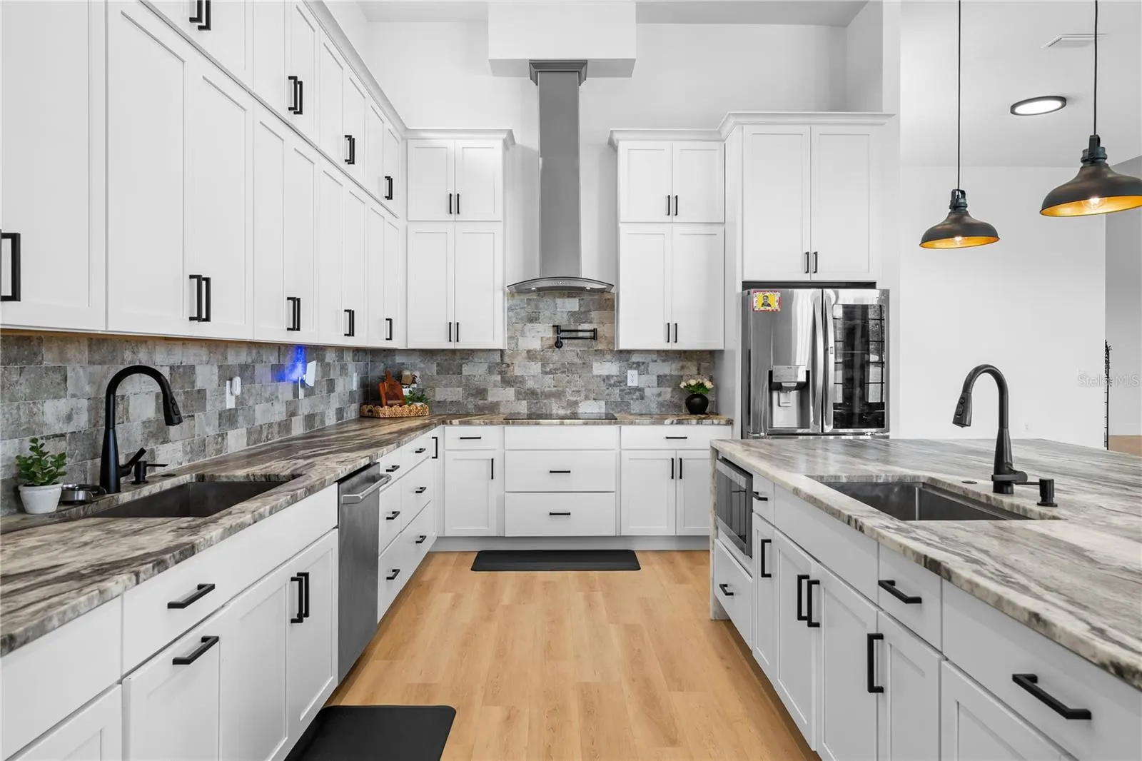 This Custom-Built Luxury Mansion on 5 acres presents a rare opportunity to own over 5,566 sq. ft. of masterfully designed living space in awell known gated equestrian community. From the moment you arrive, the stately architecture, elegant presence, and grand entryway with soaring ceilings set the stage for a lifestyle defined by sophistication and serenity. Inside, the open-concept design is bathed in natural light, blending timeless craftsmanship with modern elegance. The gourmet chef’s kitchen is a true centerpiece, featuring top-of-the-line appliances, a striking leathered granite waterfall island, and abundant storage perfectly suited for both intimate gatherings and large-scale entertaining.