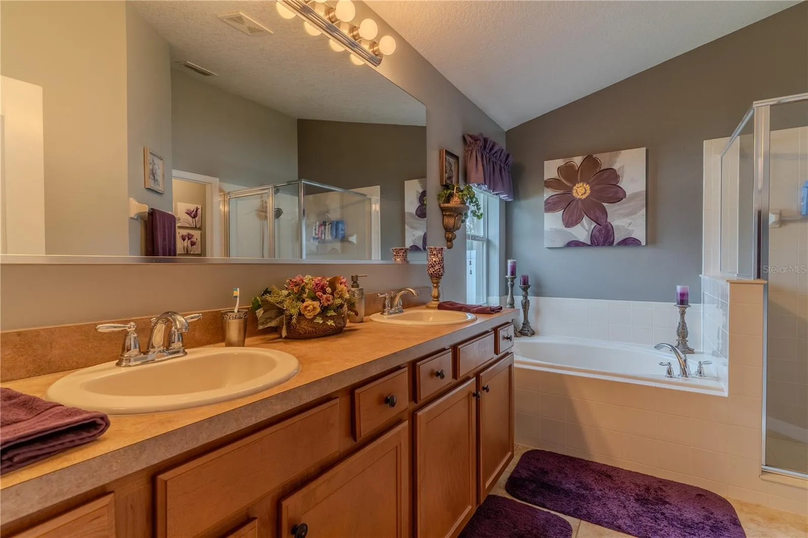 PRICE REDUCTION! Prepare to be enchanted by this turnkey, immaculately maintained three-bedroom, two-bath gem nestled in the heart of the Eagle Lake community. This stunning home is designed for those who value comfort, style, and tranquility, offering a unique opportunity to live in a serene environment with no rear neighbors—just the peaceful embrace of a lush conservation area. As you step through the grand foyer, you’re greeted by elegant luxury vinyl plank floors that flow through the formal living and dining areas, perfect for entertaining or cozy family gatherings. Transition seamlessly into the heart of the home where ceramic tile guides you to the spacious kitchen and family room—ideal for modern living. The gourmet kitchen boasts solid surface countertops, a double oven range, and an inviting island with seating for two, complemented by a generous breakfast bar for additional dining. This open-concept layout ensures the chef is always part of the action, whether hosting friends or enjoying quiet family meals. The thoughtful split bedroom plan features a bonus flex space—perfect for an office, den, or playroom—just off the kitchen, providing versatility for your lifestyle. Retreat to the large primary bedroom where relaxation awaits, complete with a spacious walk in closet, an en suite bathroom showcasing a luxurious garden tub, a stand-up shower, dual sinks and a separate water closet. On the opposite side of the home, you’ll find two additional bedrooms and a well-appointed bath, ensuring privacy and comfort for family or guests. Step out through the screened doors from the family room and unwind in the expansive screened lanai, overlooking a large backyard that seamlessly blends into the tranquil conservation area—a perfect backdrop for morning coffee or evening gatherings. As a resident of Eagle Lake, you’ll enjoy an array of exceptional amenities, including two community pools, a clubhouse, scenic walking trails, a soccer field, a basketball court, and ample green spaces, including a sprawling park right across the street. Don’t miss your chance to own this slice of paradise; schedule your private tour today and experience the unmatched lifestyle this home and community have to offer.