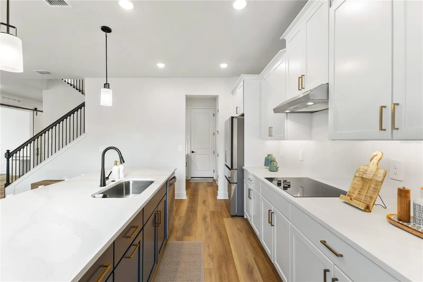 Beautiful new construction home in Summerlake Reserve, Winter Garden, offering 4 bedrooms, 3.5 baths, a loft, home office with barn doors, and a covered lanai on a private lot with no rear neighbors. The gourmet kitchen includes quartz countertops, soft-close cabinets, built-in oven, cooktop, vent hood, and Butler’s pantry. Interior features luxury vinyl plank flooring, open staircase, tray ceiling, freestanding tub, matte fixtures, pendant lighting, and EV charger. Community has only 41 homes and low HOA. Conveniently located near top-rated schools, dining, and shopping.