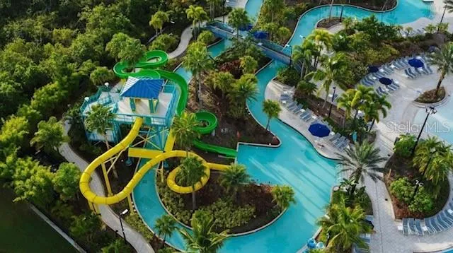 PRICE IMPROVEMENT. WOODS AND WATER – THE ELEVATED VIEW EVERYONE WANTS! This amazing 2 bedroom, 2 bathroom split plan features a KING SIZED bed in the primary suite and 2 QUEEN BEDS in the secondary suite. Sliding doors from the living room open to a large screen enclosed balcony for restful evenings after a day at the water park, or nearby theme parks. Both bedrooms and the living room enjoy the elevated water and woods views. The parking garage is just a short walk from the front door. FULLY FURNISHED AND MAINTENANCE FREE. The management company handles all marketing and rental activities as well as repairs and replacements. A vacation home that could earn you money while you are away. The resort features pools, lazy river, water slides, surf simulator, spa, bar and grill, arcade, gym, restaurant bar and lounge and water activities on the 20 acre Lake Austin. All of this in a GUARD GATED community just minutes from Disney and a short ride to Universe, Epic Universe and Sea World.