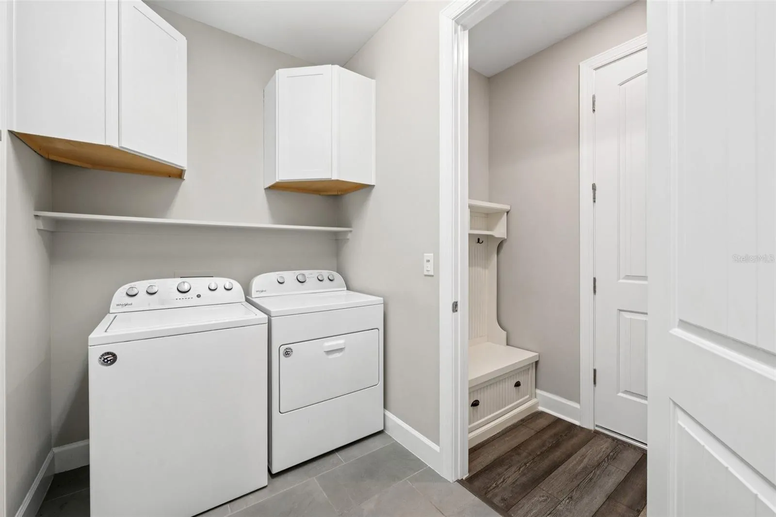 The open-concept layout features stylish flooring, designer light fixtures, and a chef’s kitchen with quartz countertops, upgraded appliances, bold navy-accented island, custom backsplash, walk-in pantry, and dedicated dining space. Zero-corner sliders in the great room create a seamless indoor-outdoor experience, leading to the screened-in lanai with a private pool and spa—your personal oasis.
