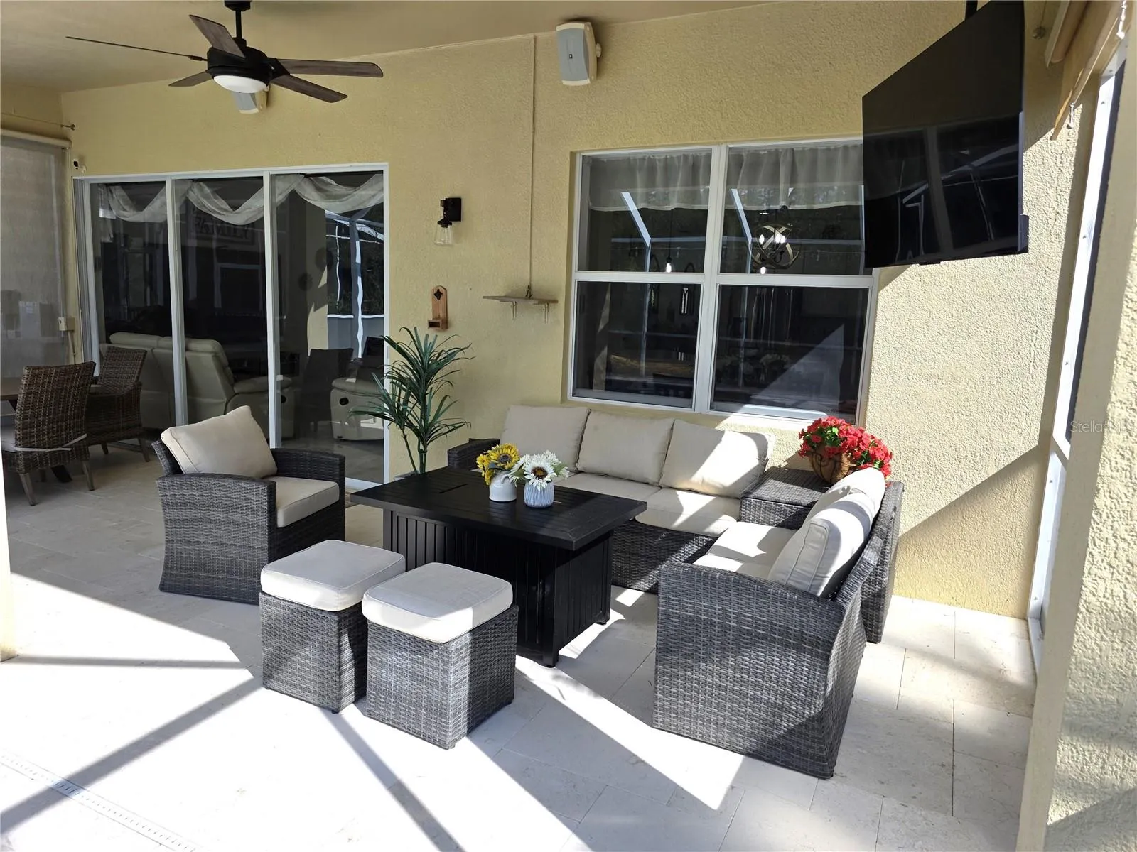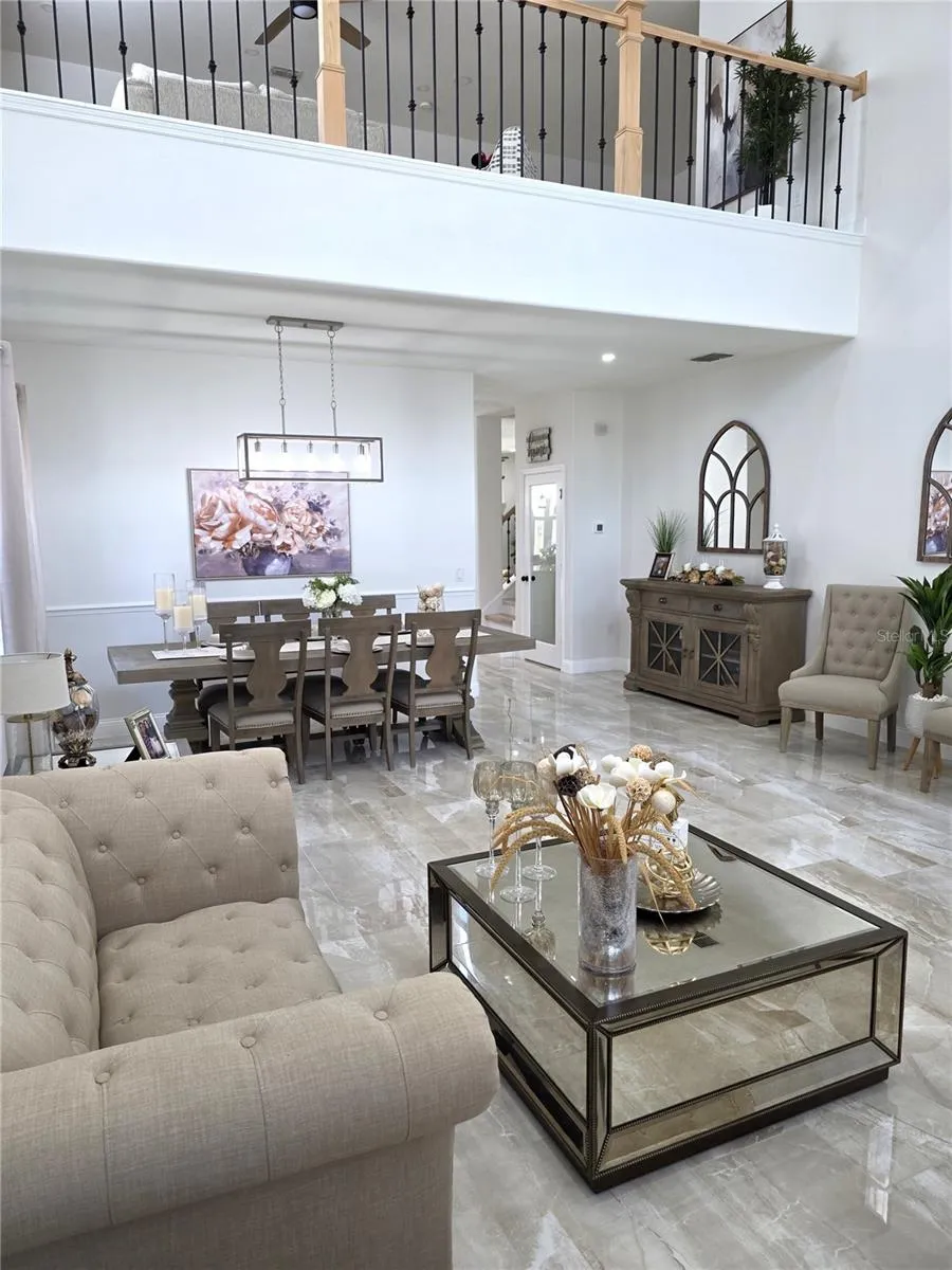 Stunning and move-in-ready, this beautifully updated 4-bedroom, 3-bath, 2-car garage home with a spacious loft offers over 3,000 SF in one of Tampa’s most desirable guard-gated communities. The kitchen and all bathrooms have been completely renovated since 2021, showcasing Quartz countertops, modern fixtures, and high-end finishes. Major improvements include a new roof (2023) and both AC units replaced in 2022 for reliable, energy-efficient comfort. In 2023, the entire first floor was upgraded with elegant porcelain tile flooring, while the second floor was fully renovated with new flooring and custom stair and upper-level railings, enhancing the open-concept design. The chef’s kitchen features Quartz counters, stainless steel appliances, a seamless sink, 42” cabinets, a large island, and a breakfast bar that opens to the family room and screened lanai with peaceful conservation views. Freshly painted interiors (2023) create a bright, inviting atmosphere throughout. Step outside to your own private retreat with a travertine pool deck renovated in 2022, offering a clean, luxurious surface that stays cool underfoot. The saltwater pool includes a new filter and water heater (2025). Additional highlights include soaring ceilings, an open loft, hurricane-grade mirror-tinted windows, a radiant barrier roof, upgraded backsplash, and designer lighting throughout. The flexible first-floor bedroom is perfect as an office or in-law suite, while the spacious master retreat features a private sitting area and a spa-style bath with garden tub, walk-in shower, double vanity, and Quartz counters. Located in a resort-style community with 24/7 security, Olympic-size pool, water playground, clubhouse, fitness center, sports courts, playgrounds, and scenic trails—this home combines luxury, comfort, and location in one incredible package!