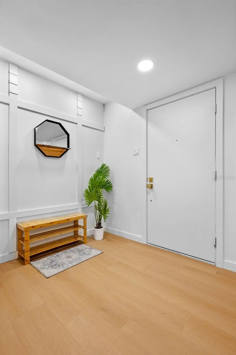 Enjoy total peace of mind with a new washer & dryer, new doors, locks, and baseboards, all-new light fixtures, recessed spotlights, and four ceiling fans throughout. This property also boasts a new HVAC and thermostat installed in July 2022, along with a newer hot water heater. Step outside to your serene screened-in lanai, offering peaceful views of lush landscaping and the sparkling pool just a short walk away. Two spacious exterior storage closets and a dedicated covered parking spot are also included.
