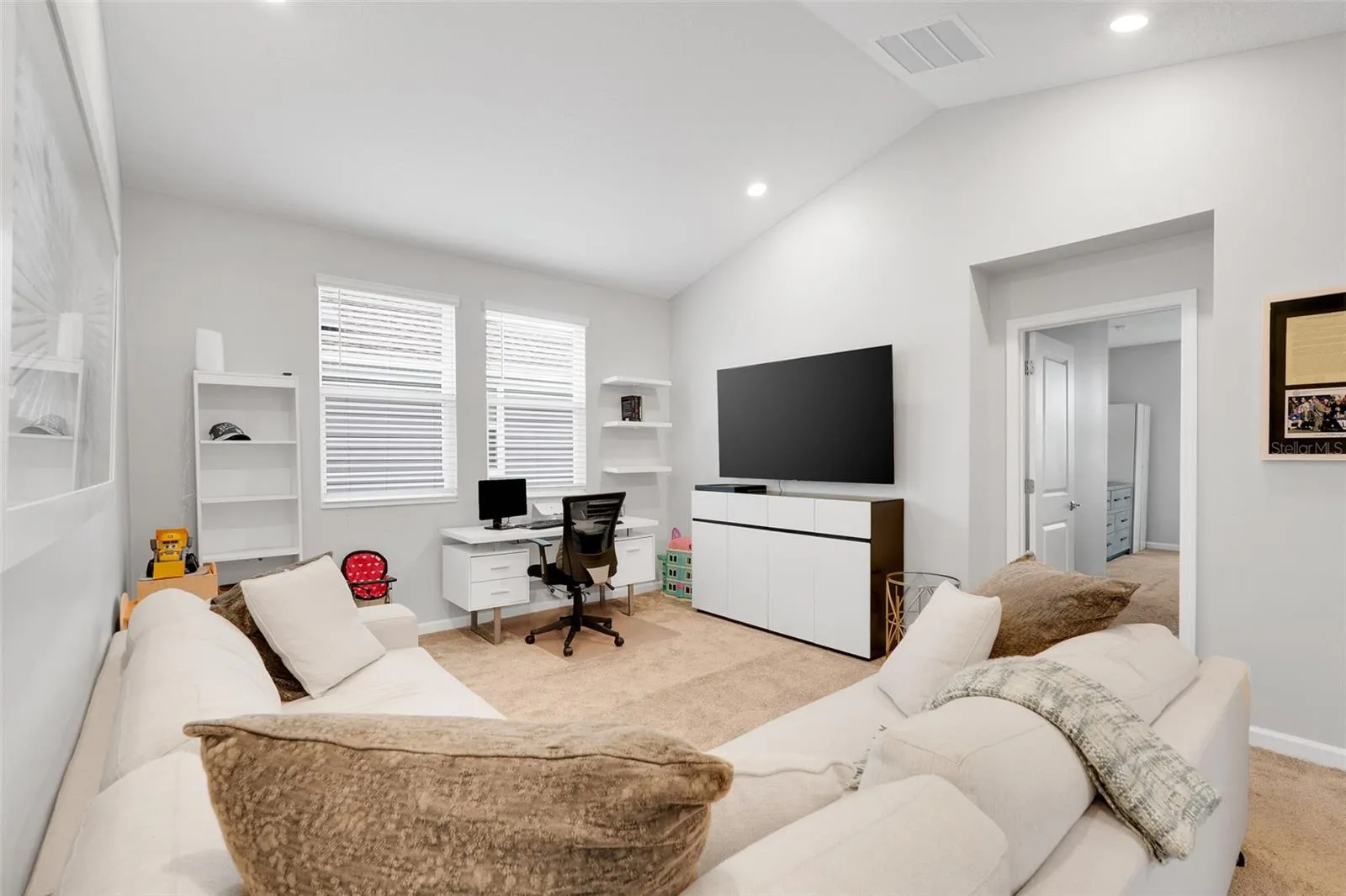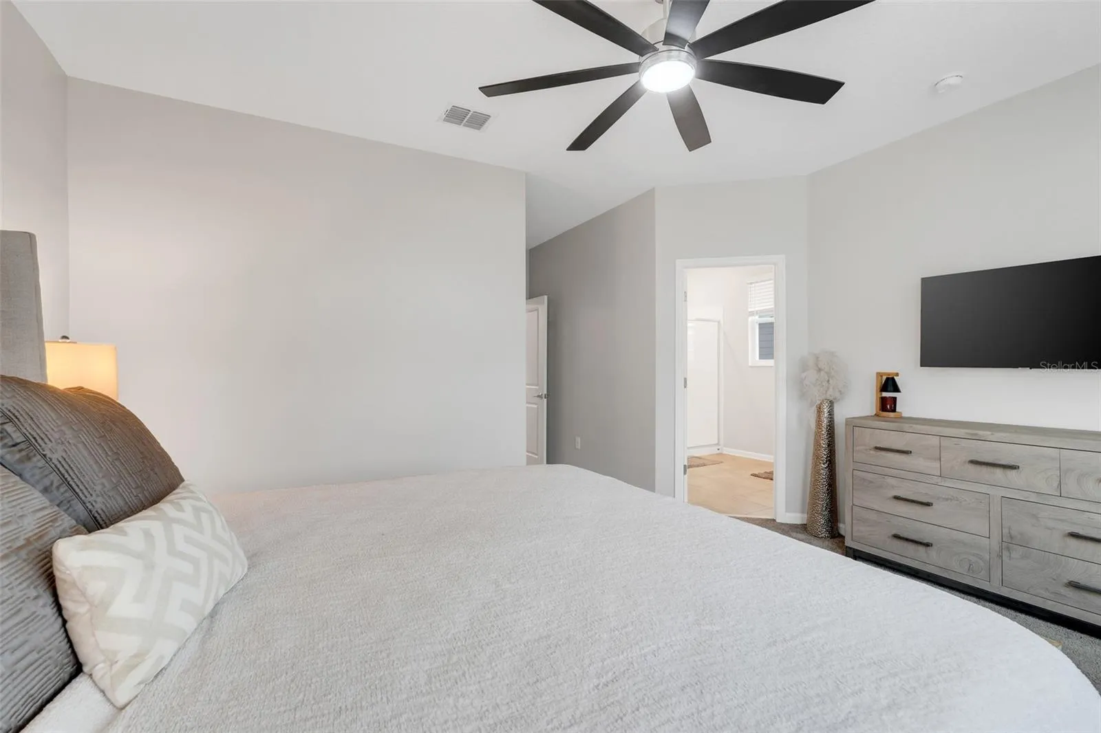 Welcome home to this GORGEOUS 4 bedroom, 3.5 bath home in Winter Garden’s exclusive Waterside at John’s Lake community! This home is boasting with DESIGNER UPGRADES and touches throughout! This energy efficient property INCLUDES SOLAR PANELS and a great open concept floorplan, with DUAL MASTER SUITES ON EACH LEVEL. The spacious master bedroom on the first floor with en-suite master bath, includes a large walk-in closet, double vanity, quartz countertops and shower. The kitchen, which overlooks the dining and living areas, is designed for entertaining and is fully equipped with stainless-steel appliances, pantry, neutral cabinetry with 42” upper cabinets, and quartz countertops. The large island that overlooks the dining and living area offers great workspace for the chef, as well as room for seating. The living area is open and conveniently situated beyond the kitchen and dining areas, which make it conducive for hosting parties and get-togethers! The downstairs also conveniently includes a guest half bath and laundry room. Going up the stairs, you will enter a loft/flexible space that can be used as a home office, play area, or additional living area, and is cable tv ready. There is the additional master suite with large walk-in closet, en-suite master bath with double vanity, quartz countertops, and separate walk-in shower. Down the hallway, you will find two storage closets, two additional bedrooms with great closet space, and a full bath with a tub/shower combo. Out the back door is an excellent pavered space for entertaining and grilling, as well as access to the detached 2 car garage. The home sits on one of the best lots Waterside has to offer, as there are no homes to the rear of the property. Exit the back door and enjoy a short walk to Johns Lake with dock and playground. As a resident of Waterside, your amenities include a large resort style pool, beautiful clubhouse, and state of the art fitness center. Waterside is conveniently located to Winter Garden’s historic downtown district with a plethora of dining and entertainment options, as well as highly rated schools, and just minutes from the Disney Parks. Immaculate and well-maintained, this home is ready for you to move in and enjoy all the amenities this property has to offer!