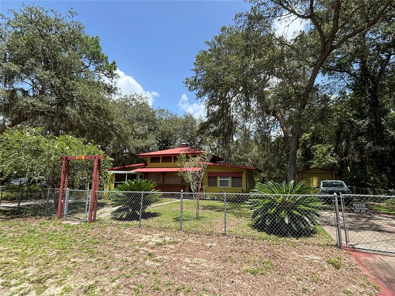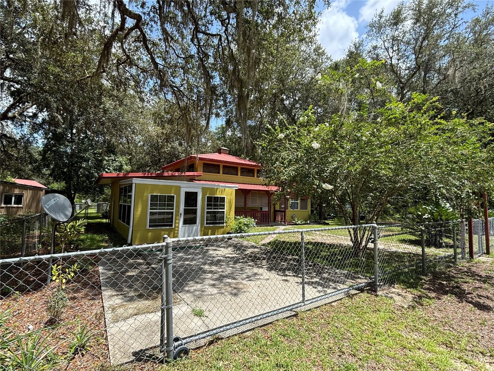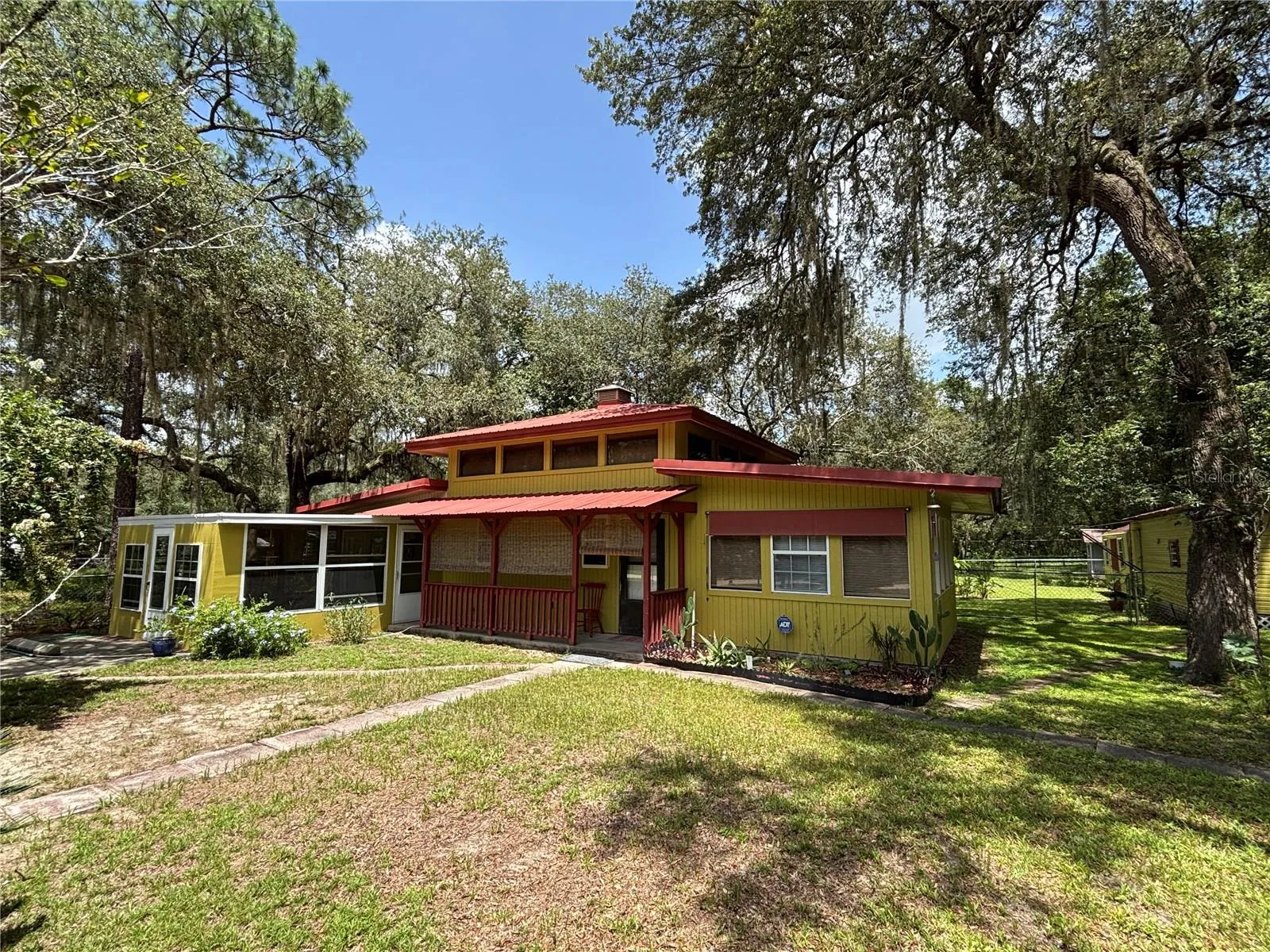 Come see this very unique, cute and cozy 2/1 two story gorgeous Frame Home that features many extras! Unique spiral staircase in the guest bedroom (makes guest bedroom small but staircase could be removed) that leads to a small loft area that can be used for storage or a small sleeping area. Enjoy the neighborhood Lake access featuring a docking area to beautiful Lake Owen. This home has been meticulously updated with updates that include per seller: new 50 gallon hot water heater in 2021, new Goodman AC unit in 2018, Septic Tank was pumped in 2022, new Well tank and pressure switch in 2022, inside of the home was freshly painted in 2022, updated electric breakers in 2022, new washer and dryer in 2022, new 200 amp service panel Siemans brand 120/240V in 2021, new pump switch in 2022, new kitchen faucet in 2022, new refrigerator in 2022, new surge protect at the meter in 2023 (Clay Electric), all new caulking and replacement of window sills in 2023, new light fixtures and fans. Complete outside of the home along with both sheds all newly painted in 2023 along with a new metal roof on the 20 x 12 shed. Inside features lots of natural light with beautiful clerestory windows throughout the home! 13 x 16 living room with lots of windows that add to the natural lighting. Beautiful kitchen with tile backsplash along with a pantry and kitchen island bar. Spacious 13 x 16 master bedroom leading to a 13 x 16 front enclosed porch with windows. Large 19 x 10 bonus room with a kitchen window bar. Breezy 20 x 4 front porch with additional washer hook up, currently the home has inside laundry in the bonus room. Outside feature a beautiful meticulously landscaped yard with multiple plant/flowerbeds throughout, gorgeous trees and luscious green grass all in a completely fenced in yard with two gated concrete driveway entrances. Help keep the heat out and electric bill down with cost-effective exterior rolling shades on the front of the home and front porch. Convenient double driveways for extra parking along with an RV hookup all on .23 acre! Spacious 20 x 12 and 16 x 12 metal sheds with electric/workshop area and a 13 x 9 back enclosed patio. This home has all you need make it your yours today! Home is located in the Ocala National Forest which affords you almost a ½ million acres of Forest to roam, 600 lakes, 2 rivers, Juniper Springs, Silver Glen Springs, Salt Springs, Swimming, Skiing, Big BASS Fishing, Boating, Camping, Hiking, Horseback riding and some of the best ATV riding anywhere. Daytona Beach is just 1 hour away. Let the fun begin! You need it!