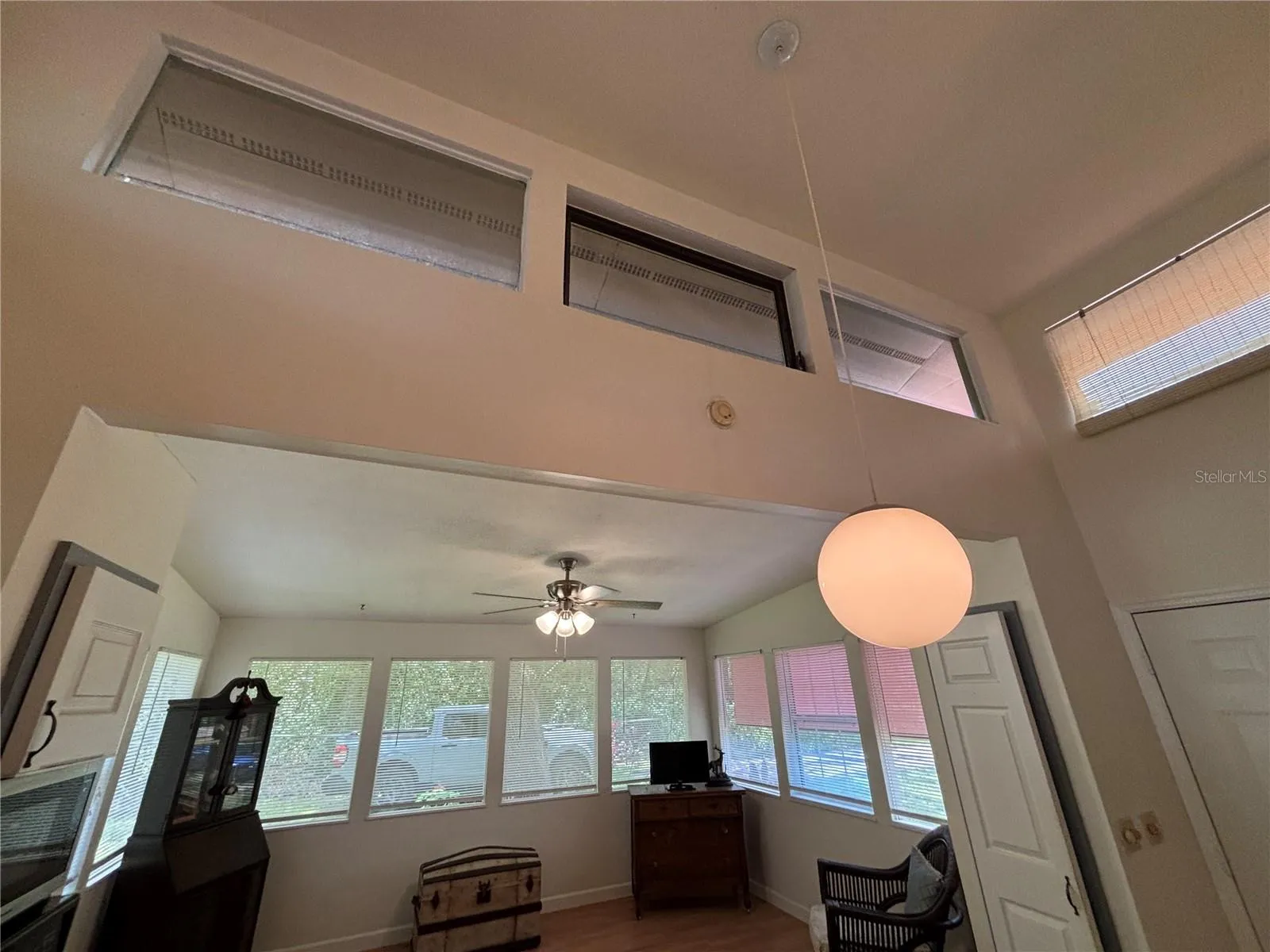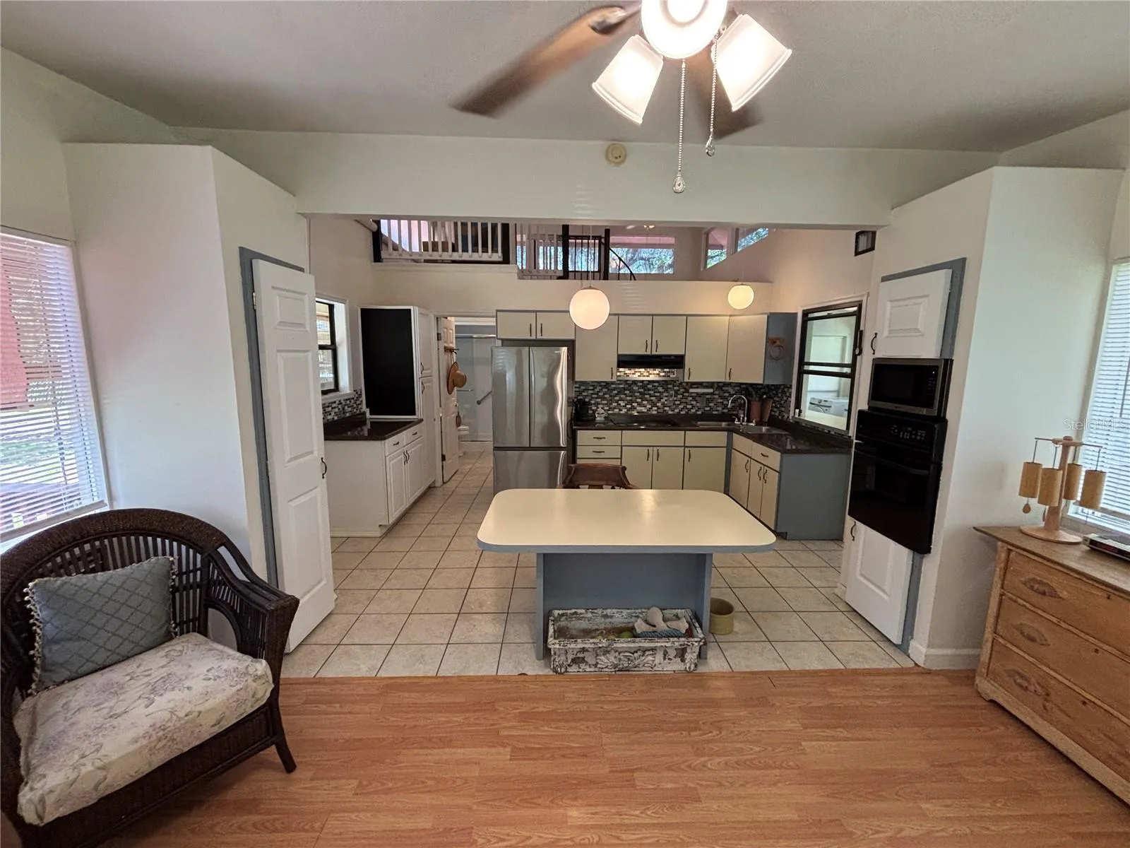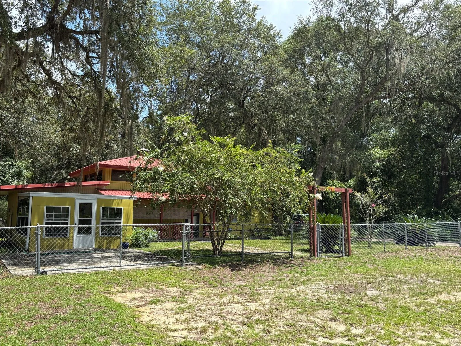 Come see this very unique, cute and cozy 2/1 two story gorgeous Frame Home that features many extras! Unique spiral staircase in the guest bedroom (makes guest bedroom small but staircase could be removed) that leads to a small loft area that can be used for storage or a small sleeping area. Enjoy the neighborhood Lake access featuring a docking area to beautiful Lake Owen. This home has been meticulously updated with updates that include per seller: new 50 gallon hot water heater in 2021, new Goodman AC unit in 2018, Septic Tank was pumped in 2022, new Well tank and pressure switch in 2022, inside of the home was freshly painted in 2022, updated electric breakers in 2022, new washer and dryer in 2022, new 200 amp service panel Siemans brand 120/240V in 2021, new pump switch in 2022, new kitchen faucet in 2022, new refrigerator in 2022, new surge protect at the meter in 2023 (Clay Electric), all new caulking and replacement of window sills in 2023, new light fixtures and fans. Complete outside of the home along with both sheds all newly painted in 2023 along with a new metal roof on the 20 x 12 shed. Inside features lots of natural light with beautiful clerestory windows throughout the home! 13 x 16 living room with lots of windows that add to the natural lighting. Beautiful kitchen with tile backsplash along with a pantry and kitchen island bar. Spacious 13 x 16 master bedroom leading to a 13 x 16 front enclosed porch with windows. Large 19 x 10 bonus room with a kitchen window bar. Breezy 20 x 4 front porch with additional washer hook up, currently the home has inside laundry in the bonus room. Outside feature a beautiful meticulously landscaped yard with multiple plant/flowerbeds throughout, gorgeous trees and luscious green grass all in a completely fenced in yard with two gated concrete driveway entrances. Help keep the heat out and electric bill down with cost-effective exterior rolling shades on the front of the home and front porch. Convenient double driveways for extra parking along with an RV hookup all on .23 acre! Spacious 20 x 12 and 16 x 12 metal sheds with electric/workshop area and a 13 x 9 back enclosed patio. This home has all you need make it your yours today! Home is located in the Ocala National Forest which affords you almost a ½ million acres of Forest to roam, 600 lakes, 2 rivers, Juniper Springs, Silver Glen Springs, Salt Springs, Swimming, Skiing, Big BASS Fishing, Boating, Camping, Hiking, Horseback riding and some of the best ATV riding anywhere. Daytona Beach is just 1 hour away. Let the fun begin! You need it!