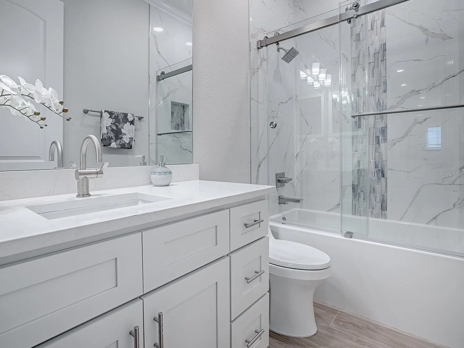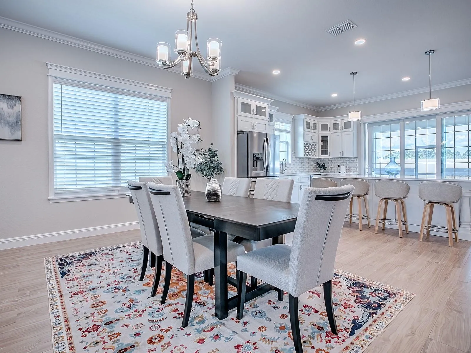 Luxury Redefined in this 3 Bedroom, 2 Bath Home located in the Family Friendly Gated Community of Densan Park. You will Experience & Appreciate the Style and Functionality in this Quality Stucco Built Home. The Light, Bright & Airy Open Floor Plan is IMPRESSSIVE with FANTASTIC FINISHES & UPGRADES INCLUDING: Grand 10′ Ceilings, Porcelain Wood-look Flooring, Crown Molding, Quartz Counters, Upgraded Light Fixtures & Appliances, Tankless Hot Water Heater, Nest Thermostat, Ring Door Bell, a Summer Kitchen, and so much more!! The Gourmet Style Kitchen has Modern Cabinetry with Stylish Hardware, Stainless Steel Appliances (Gas Range), Quartz Counters & Island, Pantry, Decorative Backsplash, and Recessed Lighting. The Primary Ensuite accommodates your King-size Furnishings, has a large walk-in closet, and the luxurious bath comes with Dual Sinks and a Walk-in Shower. The Secondary Bedrooms are good-size with built-in closets and there is a hall bath nearby with a Tub/Shower Combo. The Covered Lanai is complete with a Summer Kitchen equipped with a sink, mini refrigerator, and Barbecue Grill. The yard is fenced and a great place for entertaining &/or family fun! Existing Amenities and/or Amenities to come: Tennis Courts, Playground, Basketball Courts, Volleyball, Fitness Trail/Exercise Stations, Dog Park, Picnic Areas! This Gated ‘Family Friendly’ Community is located just minutes away from shopping, restaurants, medical, VA, The Villages Charter School and The Villages Town Squares! TRULY A PERFECT PLACE TO CALL HOME!