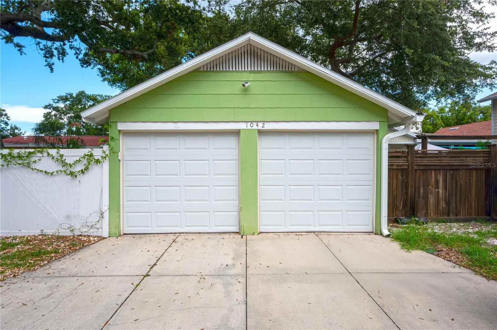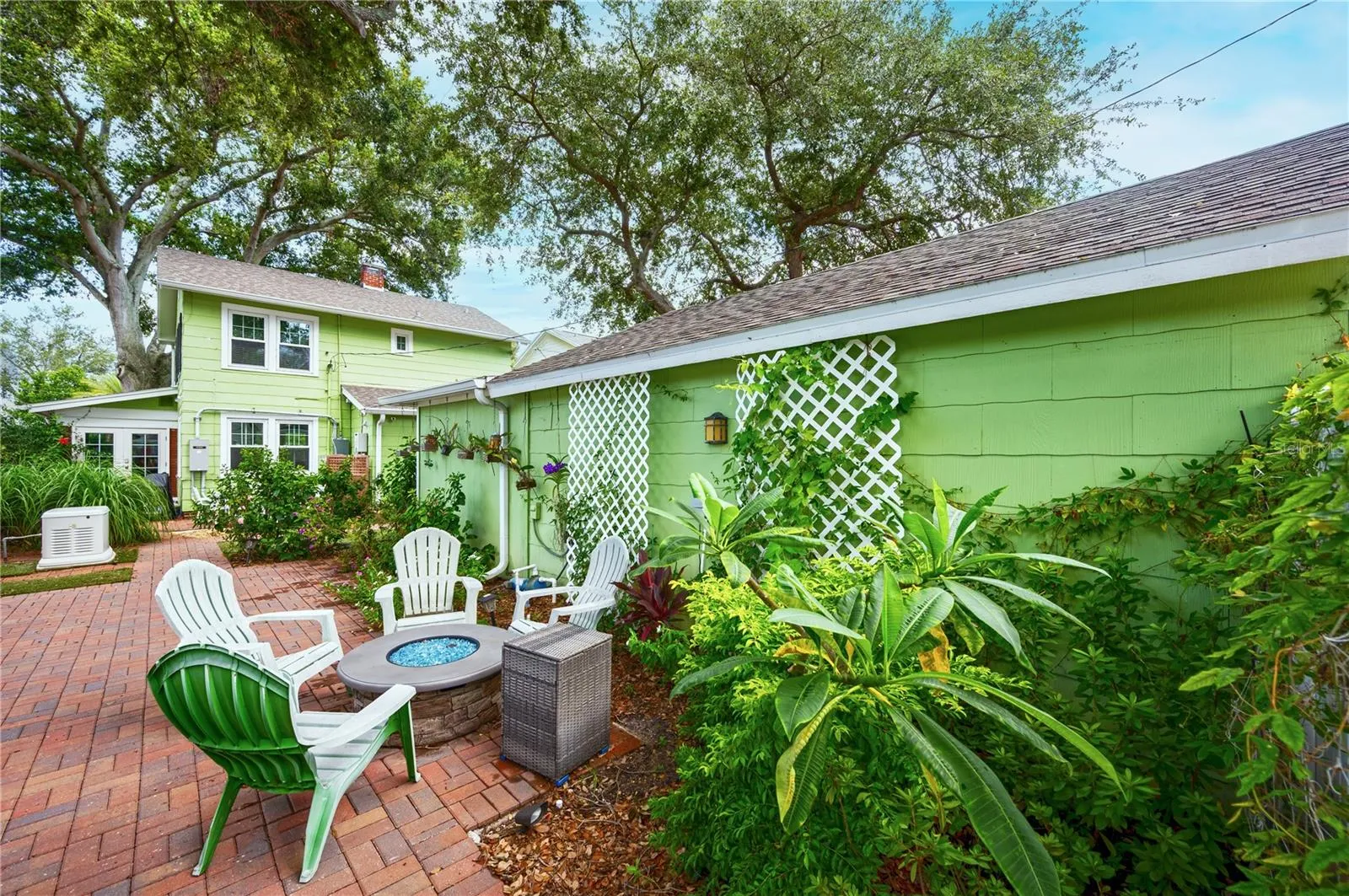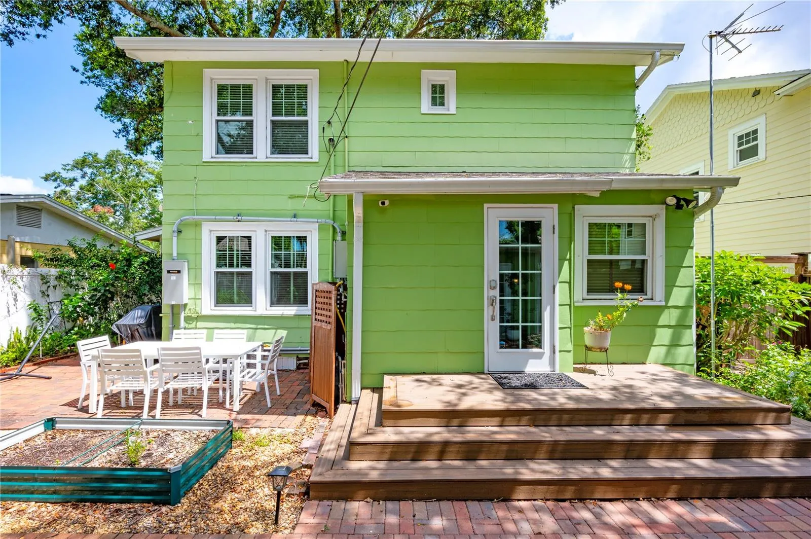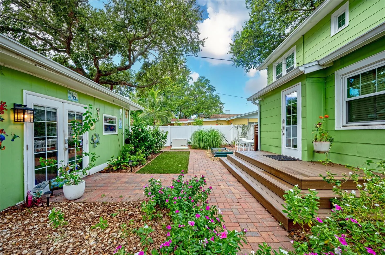 Welcome to the highly sought-after neighborhood of Euclid/St. Paul and this beautiful and fully-renovated Colonial-style home. This residence has been incredibly updated with virtually every modern convenience, while staying true to its original 1928 charm. Situated on the tree-shaded brick streets of this ever-popular area so close to downtown, this home was updated in the last six years in so many ways. From first sight of the vibrant violet-hued entry door and the beautiful garden landscaping, to the carefully-laid Augusta brick patios and walkways throughout the backyard, this home offers light and bright spaces and so many upgrades to weather our storm seasons. Classic hardwood floors of oak and heart of pine run throughout the home. The two story residence features two bedrooms and two baths upstairs, a half-bath downstairs and a bonus room for use as an office or flex space and an additional bonus office area attached to the garage. The living room is expansive, with a restored fireplace which has been converted to natural gas. Just off this space is a sun-filled flexible bonus room, ideal for a home office, workout room or playroom. The kitchen and dining area are spacious and surrounded by windows overlooking the backyard and outdoor dining area. The recently renovated kitchen is stunning, featuring all wood cabinetry, marble countertops, Samsung induction stove, Miele dishwasher, and wine cooler. Two large bedrooms and two fully renovated bathrooms are just up the staircase. The primary en-suite bathroom features custom built-in cabinetry, marble counters and tile and seamless glass shower. The inside laundry with stackable washer/dryer is just off the kitchen and leads to the classic and beautifully pavered Augusta brick and turf backyard. This area is perfect for entertaining, with alcoves for grilling, outdoor dining, play spaces, firepit area and more and all surrounded by beautiful custom wood and vinyl fencing for ultimate privacy. A detached two-car garage is just off the back steps, and features an additional 221 square feet of air conditioned space, perfect for a home office, work out room or flex space. Upgrades include newer roofs with double hurricane clips (2020) natural gas tankless hot water heater (2021), almost all windows replaced in 2021 with hurricane impact windows, the (4) lower front windows replaced and offer hurricane protective curtains, impact doors (2021), newer electrical throughout home (2021) newer electric panel (2024), all plumbing updated (2021), newer 24KW Generac full house generator (2023), newer gutters, newly installed French drains in backyard, well irrigation, new landscaping and lighting, Augusta brick walkways and patios and so much more. Absolutely move-in ready to immediately ENJOY! This picturesque property is located within an easy stroll to beautiful Crescent Lake Park, and is a 5-minute drive or quick bike ride to downtown St. Petersburg’s many restaurants, museums, theaters, shopping and entertainment. No flood insurance required. This beauty won’t last! Schedule your showing today!