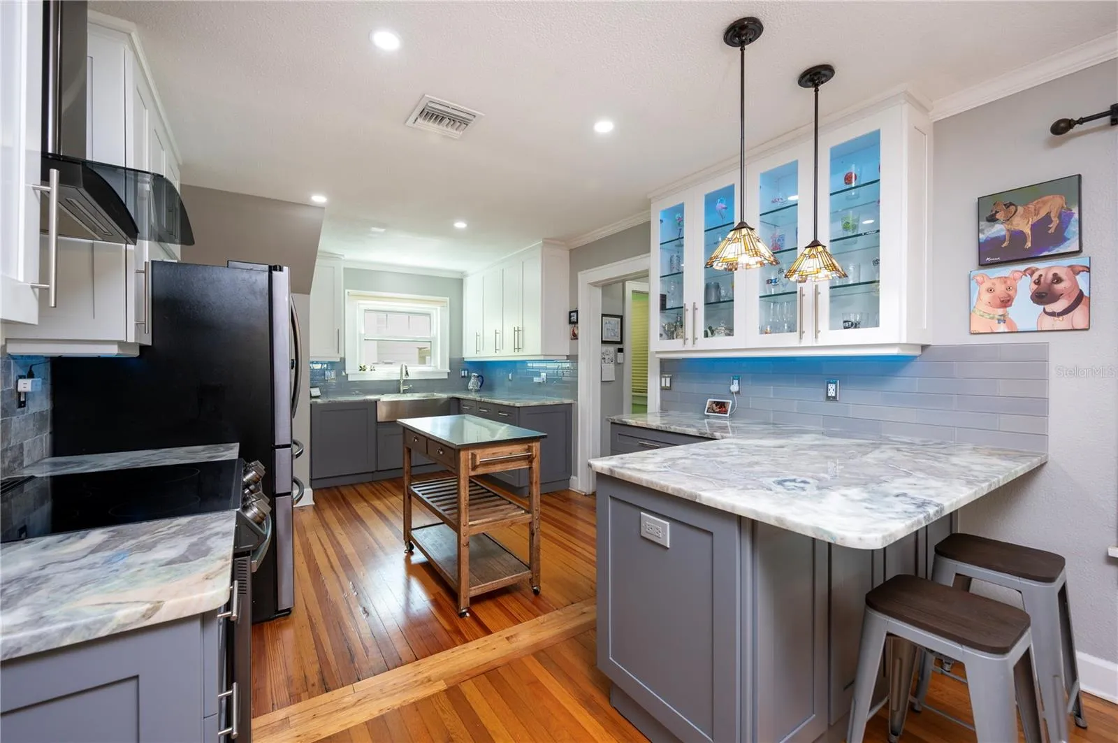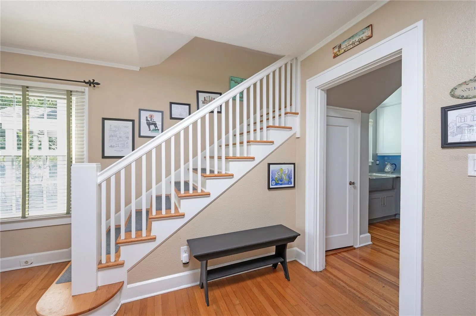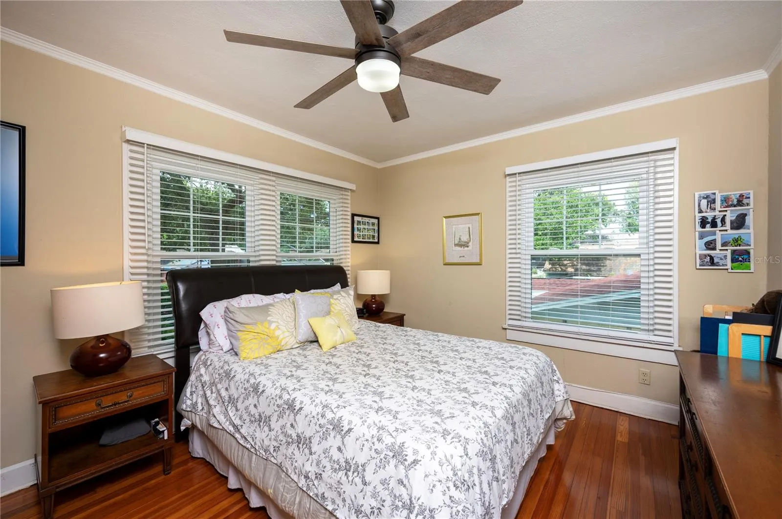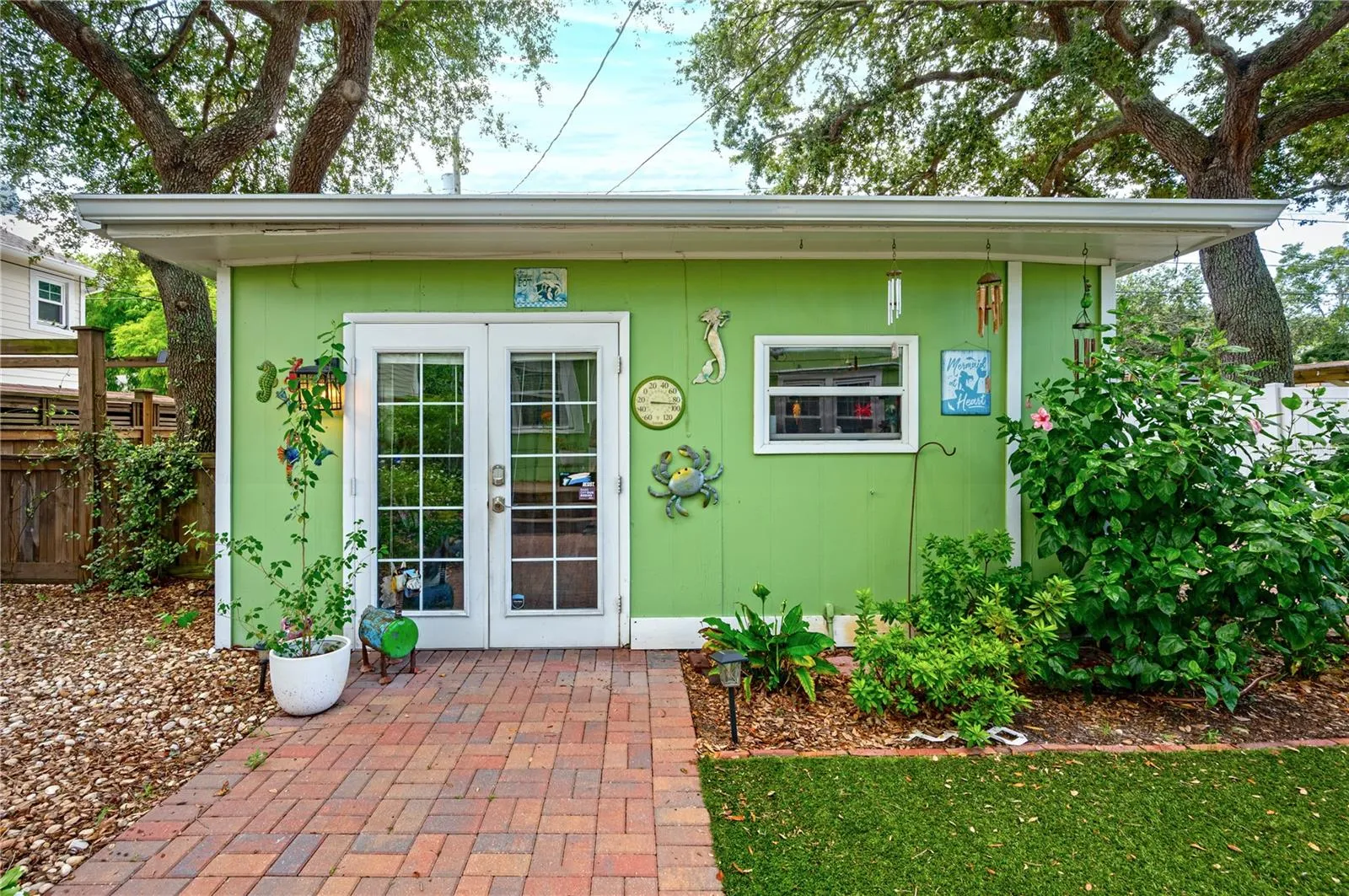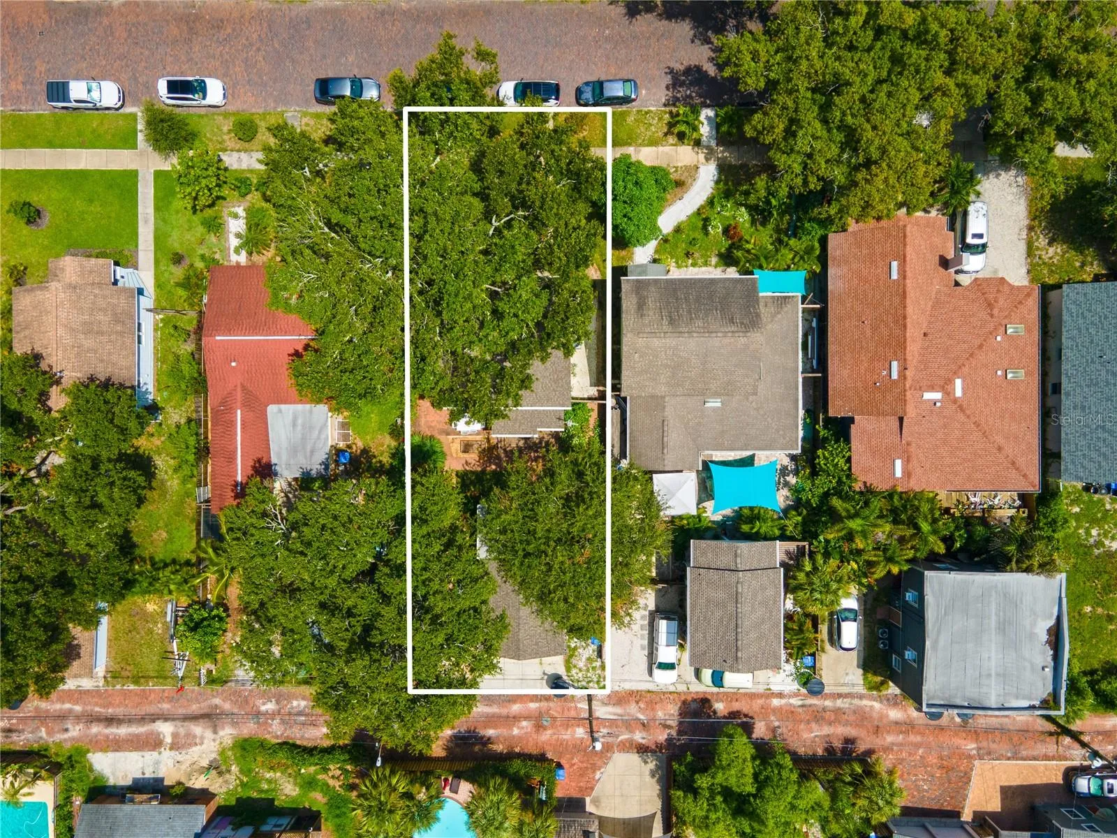 Welcome to the highly sought-after neighborhood of Euclid/St. Paul and this beautiful and fully-renovated Colonial-style home. This residence has been incredibly updated with virtually every modern convenience, while staying true to its original 1928 charm. Situated on the tree-shaded brick streets of this ever-popular area so close to downtown, this home was updated in the last six years in so many ways. From first sight of the vibrant violet-hued entry door and the beautiful garden landscaping, to the carefully-laid Augusta brick patios and walkways throughout the backyard, this home offers light and bright spaces and so many upgrades to weather our storm seasons. Classic hardwood floors of oak and heart of pine run throughout the home. The two story residence features two bedrooms and two baths upstairs, a half-bath downstairs and a bonus room for use as an office or flex space and an additional bonus office area attached to the garage. The living room is expansive, with a restored fireplace which has been converted to natural gas. Just off this space is a sun-filled flexible bonus room, ideal for a home office, workout room or playroom. The kitchen and dining area are spacious and surrounded by windows overlooking the backyard and outdoor dining area. The recently renovated kitchen is stunning, featuring all wood cabinetry, marble countertops, Samsung induction stove, Miele dishwasher, and wine cooler. Two large bedrooms and two fully renovated bathrooms are just up the staircase. The primary en-suite bathroom features custom built-in cabinetry, marble counters and tile and seamless glass shower. The inside laundry with stackable washer/dryer is just off the kitchen and leads to the classic and beautifully pavered Augusta brick and turf backyard. This area is perfect for entertaining, with alcoves for grilling, outdoor dining, play spaces, firepit area and more and all surrounded by beautiful custom wood and vinyl fencing for ultimate privacy. A detached two-car garage is just off the back steps, and features an additional 221 square feet of air conditioned space, perfect for a home office, work out room or flex space. Upgrades include newer roofs with double hurricane clips (2020) natural gas tankless hot water heater (2021), almost all windows replaced in 2021 with hurricane impact windows, the (4) lower front windows replaced and offer hurricane protective curtains, impact doors (2021), newer electrical throughout home (2021) newer electric panel (2024), all plumbing updated (2021), newer 24KW Generac full house generator (2023), newer gutters, newly installed French drains in backyard, well irrigation, new landscaping and lighting, Augusta brick walkways and patios and so much more. Absolutely move-in ready to immediately ENJOY! This picturesque property is located within an easy stroll to beautiful Crescent Lake Park, and is a 5-minute drive or quick bike ride to downtown St. Petersburg’s many restaurants, museums, theaters, shopping and entertainment. No flood insurance required. This beauty won’t last! Schedule your showing today!