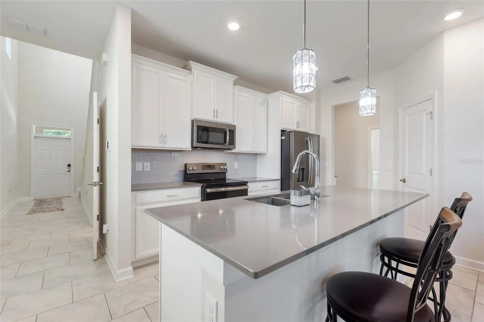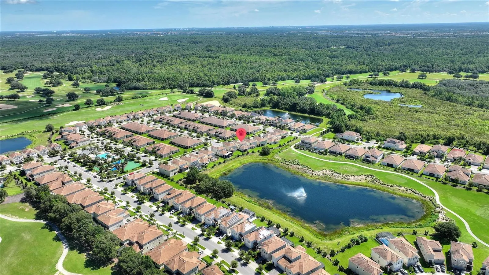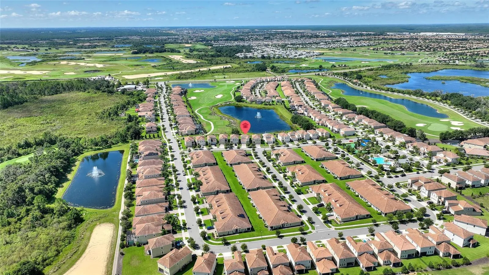 Welcome home to ChampionsGate Country Club! Central Florida’s Premier Resort-Style Golf Community. Full golf and tennis membership is included in the HOA, making every day feel like a vacation. This beautifully maintained two-story, three-bedroom, two-and-a-half-bath residence is perfectly positioned to capture sweeping views of the pristine golf course, tranquil pond, and illuminated fountain, creating a picturesque backdrop both day and night. Located just steps from the neighborhood pool and park, this home offers convenience and recreation right at your doorstep.