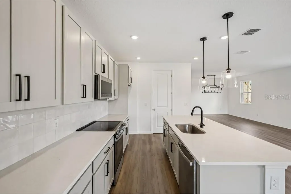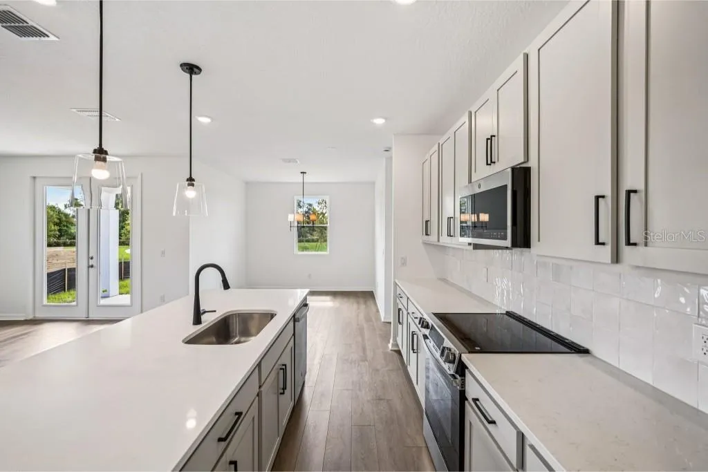 Under Construction. Receive up to $100,000 in Flex Cash + $20,000 in Closing Costs! Welcome to this stunning open-concept ranch home in the charming community of Ellington Place, inspired by Ashton Woods’ signature Artisan Collection. Featuring 3 bedrooms, 2.5 baths, and a versatile den, this thoughtfully designed home blends style and functionality. Enjoy peaceful pond views from your backyard and durable wood-look vinyl plank flooring throughout the main living areas. The gourmet kitchen is the heart of the home, boasting 42″ cabinets, quartz countertops, a stylish tiled backsplash, and stainless steel appliances including a range, microwave, and dishwasher. Located in a quaint, gated community just minutes from SR 417, Lake Nona, and the Sunbridge area, you’ll have convenient access to shopping, dining, and entertainment. With no CDD fees and a low monthly HOA, this home offers exceptional value in a highly desirable location.
