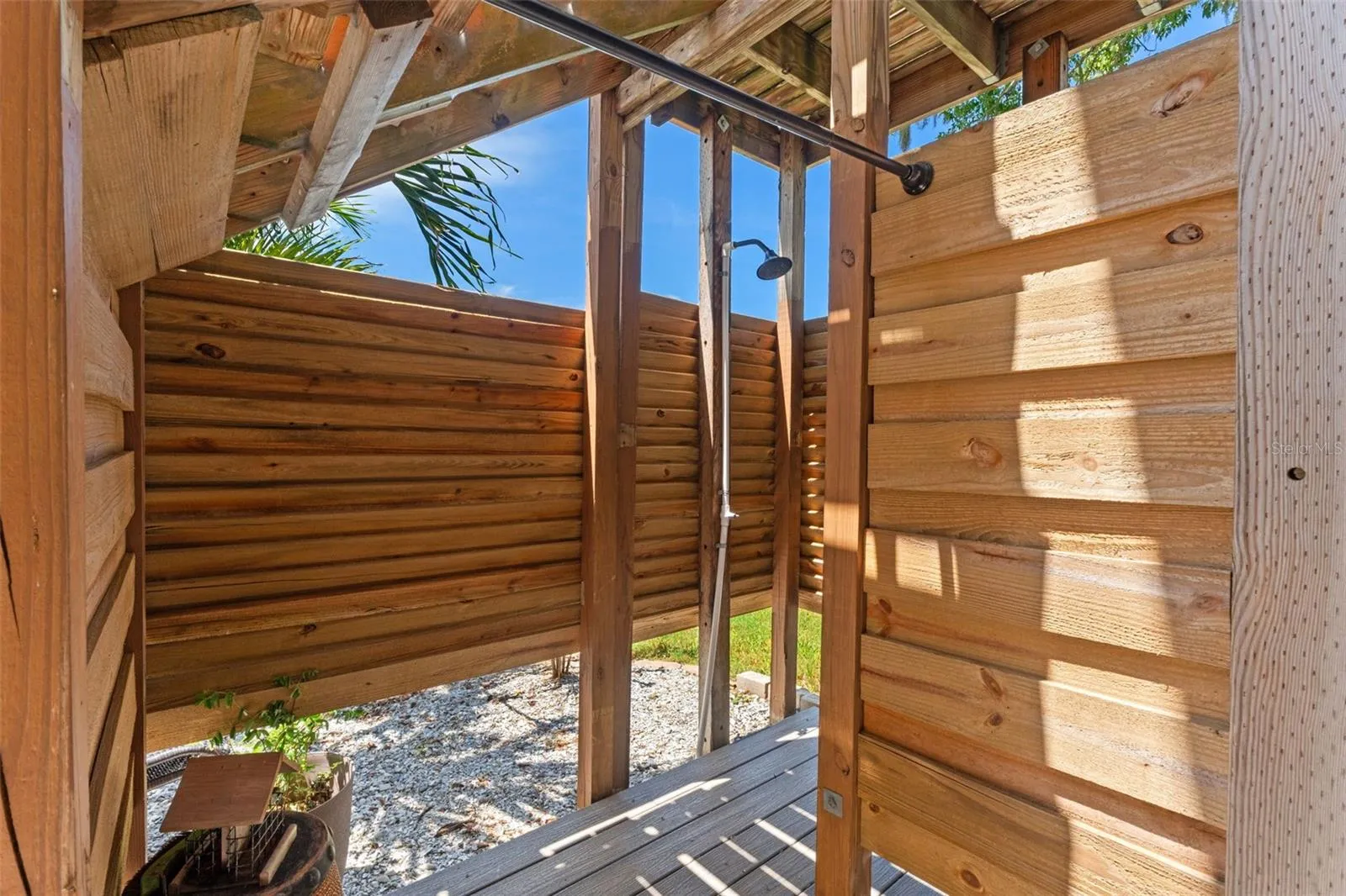 highlights include a huge garage with ample storage, an outdoor shower for sandy toes after