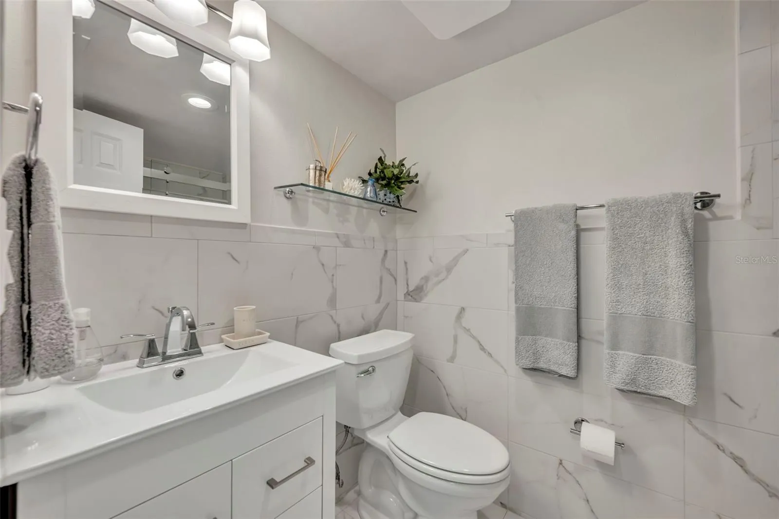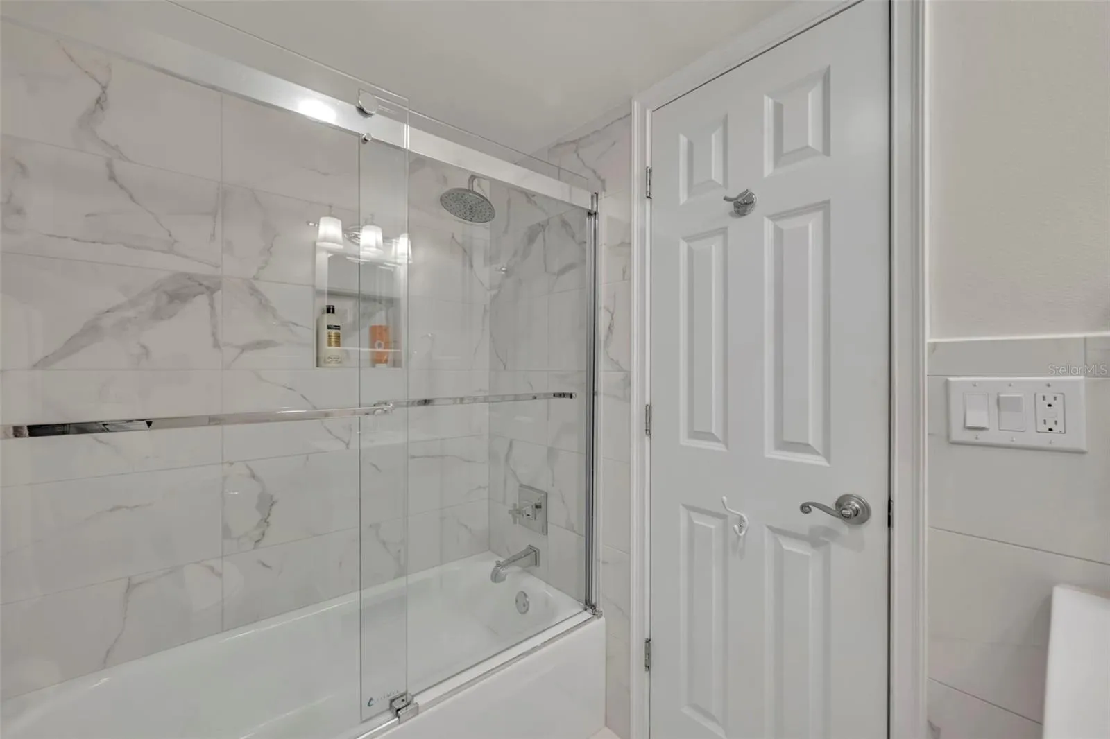Every inch of this home has been thoughtfully updated—featuring crown molding, designer light fixtures, removal of popcorn ceilings, updated wiring, and plantation shutters throughout. Major systems are also newer, with an HVAC system and water heater (2020) for peace of mind. Gourmet kitchen is appointed with quartz countertops, white shaker cabinets, stainless steel appliances, dramatic backsplash and under cabinet lighting. Custom built-ins in dining area for additional storage. Large Owner’s Suite offers two custom closets with built-in organizers and spa like bath with walk in shower. Spacious secondary bedroom. Renovated guest bath with modern finishes.