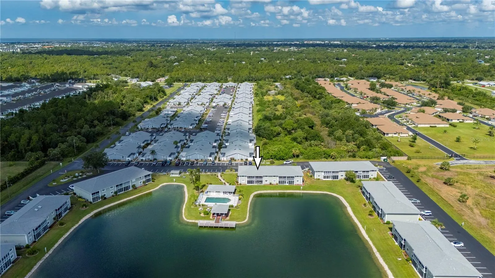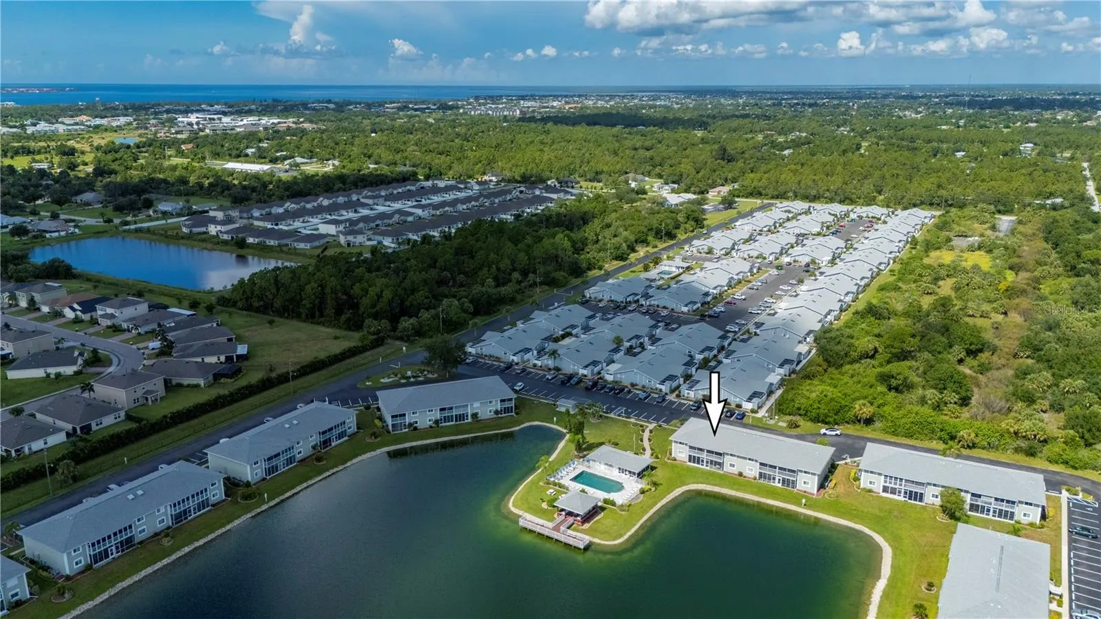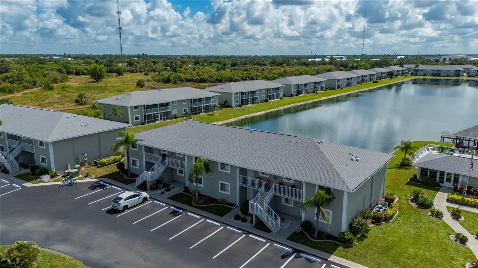 Stunning Lakeview Condo in Sought-After Lakes Edge Community. Welcome to this ground-floor condo located in the highly desirable Lakes Edge community! This furnished unit offers a serene lifestyle with lake views and direct access to all the community’s amenities. Enjoy the Florida lifestyle from your private screened patio, perfect for morning coffee or evening relaxation while taking in the peaceful surroundings. The spacious and functional interior features a well-appointed kitchen with abundant cabinet space, comfortable-sized bedrooms, and an indoor utility/laundry room for added convenience. Take advantage of the ample living space, perfect for entertaining or simply enjoying the natural light and views that fill the home. The unit is move-in ready and ideal as a full-time residence or seasonal getaway. The Lakes Edge community boasts sidewalks for easy walkability, a community pool, clubhouse, private pier / dock, and professional management. Water is included, and the condo is centrally located between Port Charlotte and Downtown Punta Gorda, offering easy access to shopping, dining, and entertainment. Don’t miss your opportunity to own this beautiful lakefront condo—schedule your private showing today!