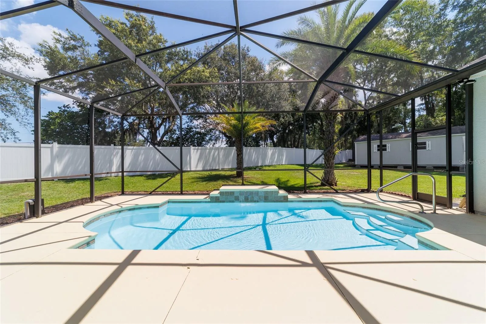 ROOF 2023, ROOF 2023, POOL ENCLOSURE 2023, SOLAR POOL HEATER 2020. Located in a quiet cul-de-sac within a desirable, family-friendly gated community, this beautifully maintained home sits on a large lot and offers the perfect balance of privacy, space, and convenience. This lovely home has split floor plan offering a primary suite with soaking tub, large shower, double sink vanity, walk-in closet. The two additional bedrooms are spacious with guest bathroom offering shower/tub combo, the kitchen is a cooks delight with plenty of counter space and storage, great room with cozy fireplace, bay window overlooking the pool and a large yard with 3 gated entrances for options to access the huge shed. Have an RV or Boat, they can easily be parked in the backyard for your convenience. With a low monthly HOA fee, this gated community offers peace of mind and a location that provides both privacy and easy access to schools, shopping, and everyday essentials. Come check it out!