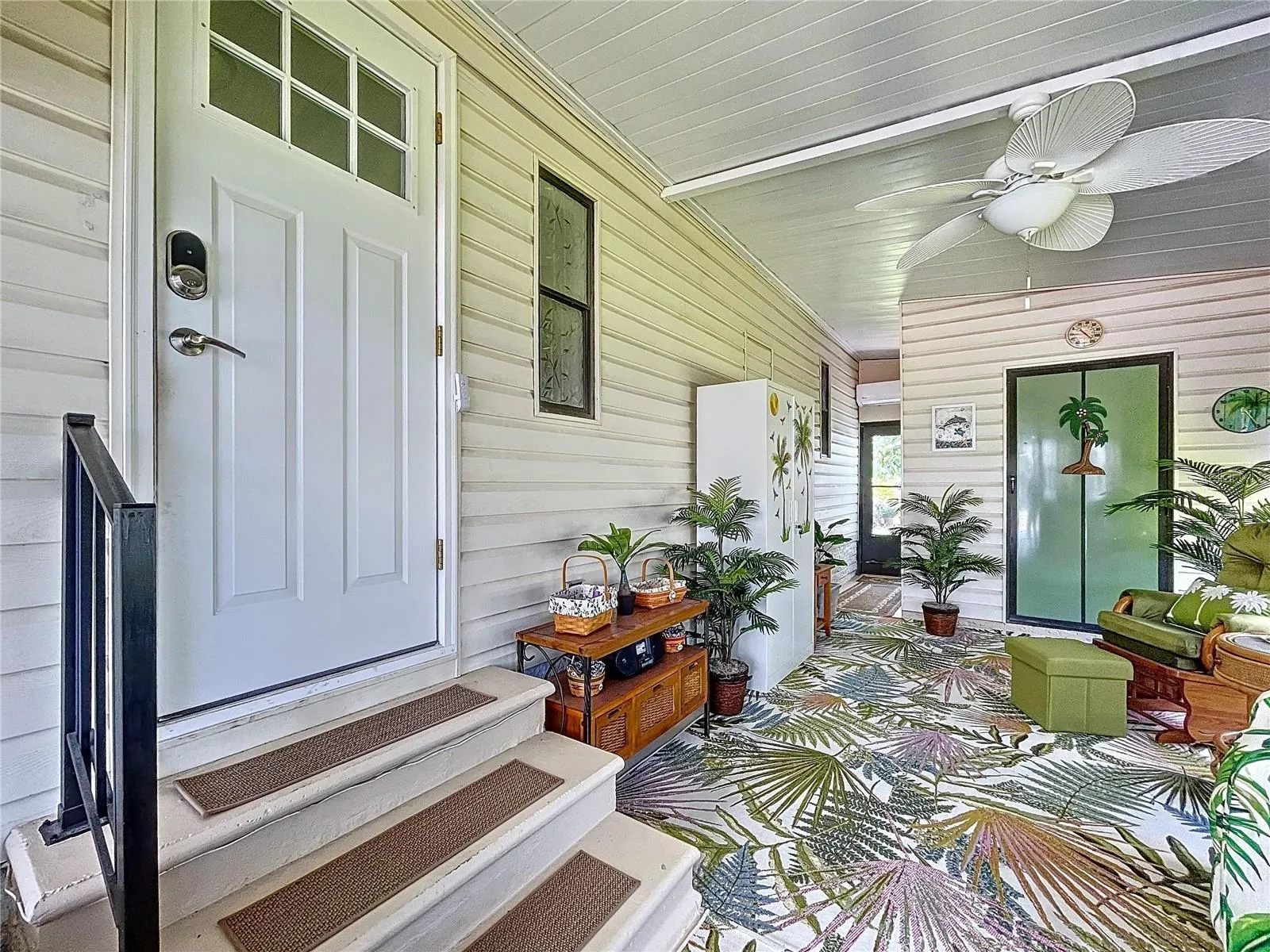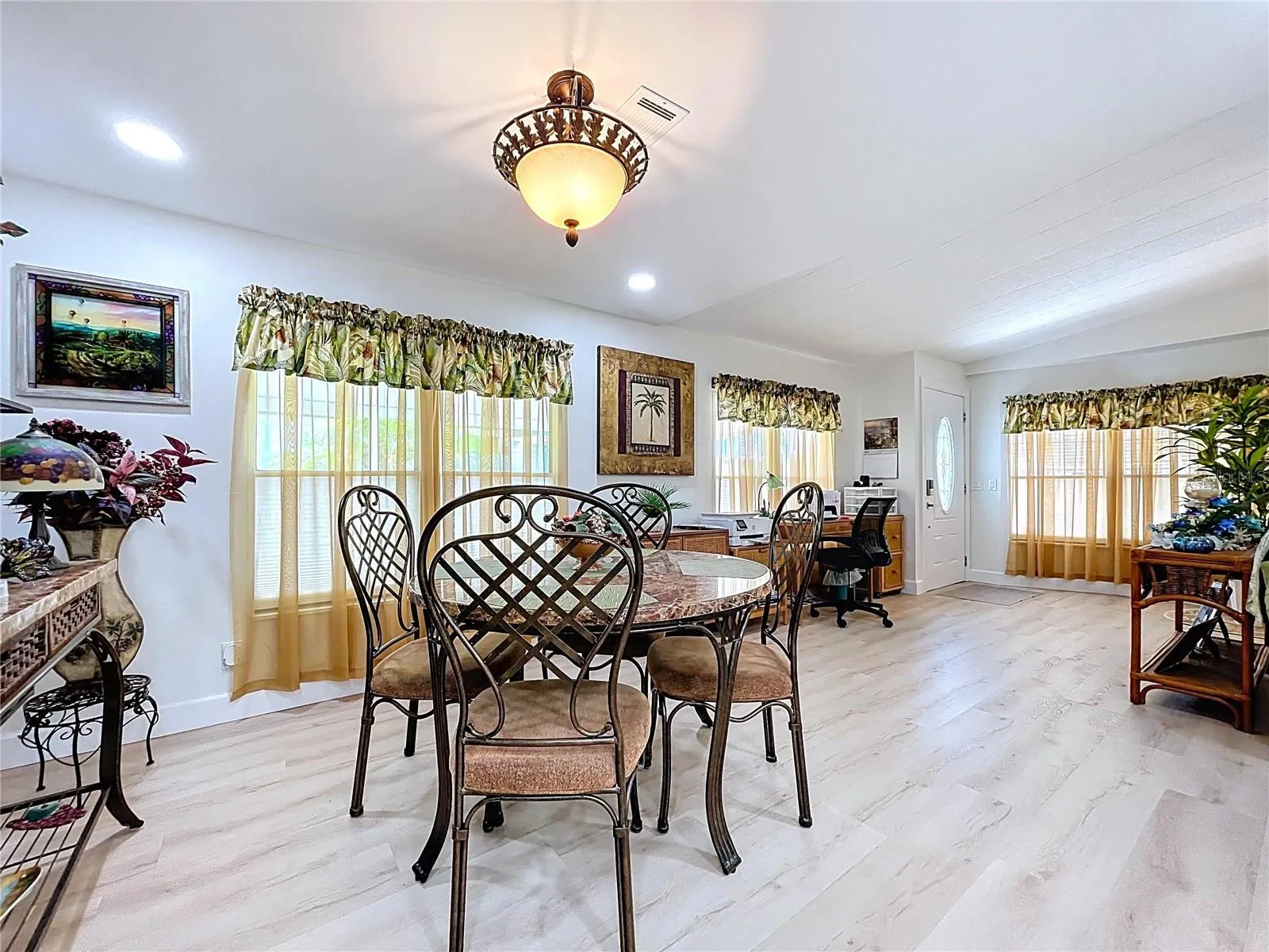 Beautifully renovated home in Gull Aire Village, a 55+ deed-restricted community where residents own their land and enjoy low HOA fees and an active social lifestyle. This move-in-ready home features a new electrical panel, tankless water heater, and new front and storm doors. Inside, enjoy LVP flooring throughout, fresh paint, new baseboards, and updated lighting. The living room has new drywall and 2-way blinds. The kitchen is fully redesigned with soft-close white shaker cabinets, Quartz counters, tile backsplash, new sink, fixtures, hood, and a large island with pendant lighting. Dining area features updated lighting and removed buffet for open flow. Laundry room has new doors, cabinets, and paint. Hallway bedroom offers new closet doors, fan, and blinds. Bathrooms boast tiled showers with multiple heads, Quartz vanities, lighted mirrors, updated toilets, and enlarged doorways. The primary suite includes a walk-in closet, sliding door, and upgraded bath with porcelain flooring. Enjoy the enclosed Florida room with mini split HVAC, fresh paint, and new fan. Close to shopping, beaches, dining, and cultural events in the heart of Oldsmar! Seller spared no expenses in this lovely renovated home