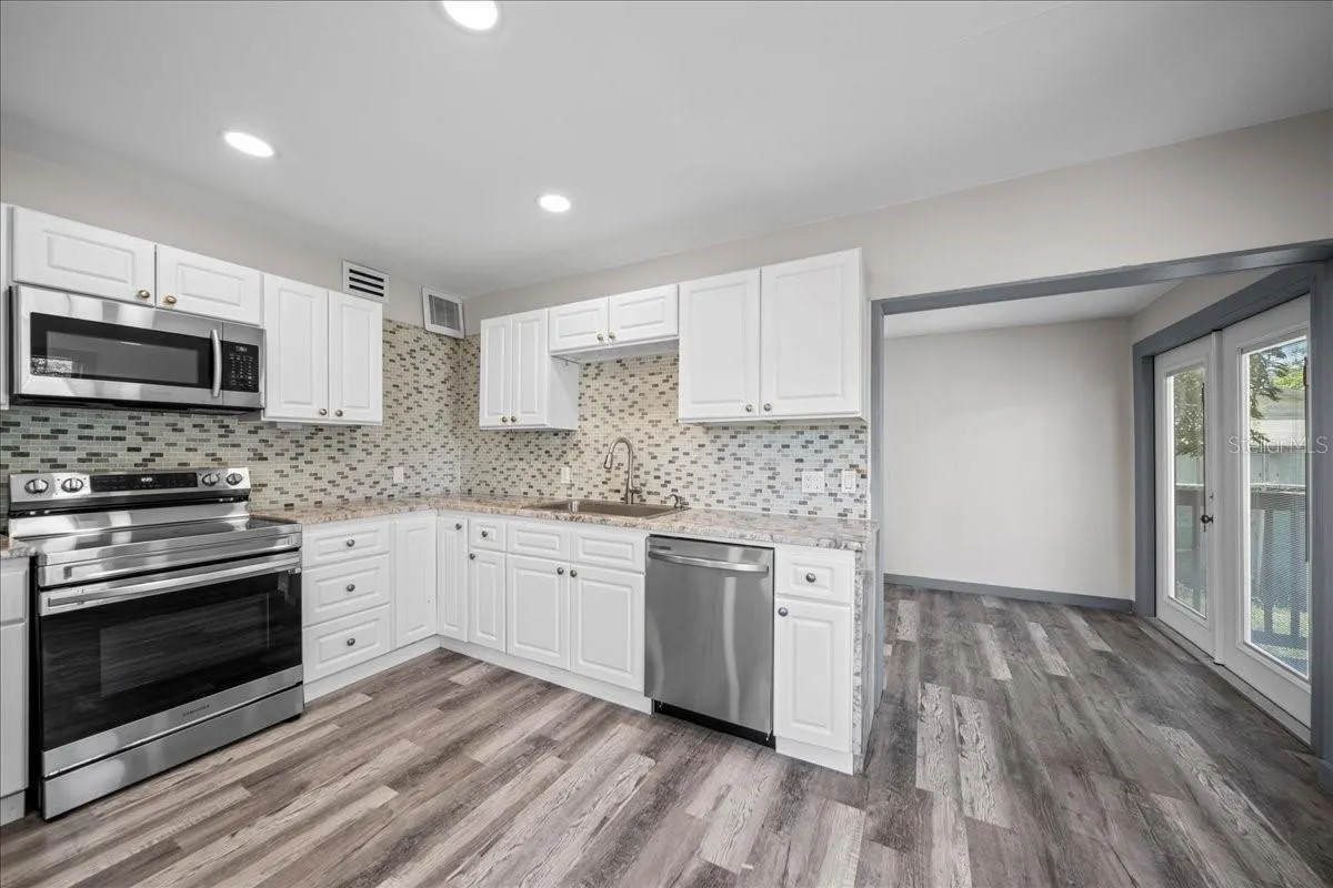 Discover this beautifully updated two-story home just a skip away from the Manatee River. Blending charm with modern finishes, this fully remodeled property features new flooring throughout, updated bathrooms, and a sleek kitchen with stainless steel appliances and custom cabinetry.