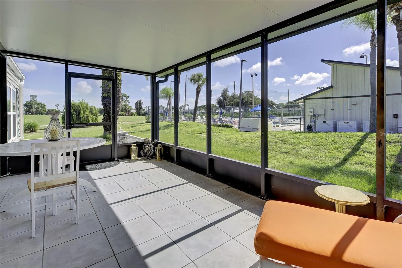 ATTENTION GOLFERS!!!!!! WELCOME HOME to this charming 2 bedroom, 2 bath home with a gorgeous view of the 14th green and the 15th TEE box plus a beautiful view of the 2 ponds. This home features a large living room, two bedrooms and two bathrooms with ceramic tile throughout, an additional bonus room and screened in lanai for entertaining family and friends. The kitchen has been updated with granite countertops, newer hardware on cabinets and drawers and SS appliances. The primary bedroom is spacious and has an ensuite bath with dual vanities, and walkin shower. The secondary bedroom has lots of natural light and a large closet. There is a bonus room behind the shed/carport that could be used as an extra lanai or home office. Maple Leaf is a resident owned 55+ community with an active resort lifestyle. Activities include 4 heated swimming pools, tennis courtys, lawn bowling, bocce ball, shuffleboard courts, 2 hottubs, sauna and a fitness center. If you arent up to cooking, stop in one of the 2 restaurants with full service bars and enjoy a nice dinner with friends, or stop by the new tiki bar and enjoy a few cocktails.