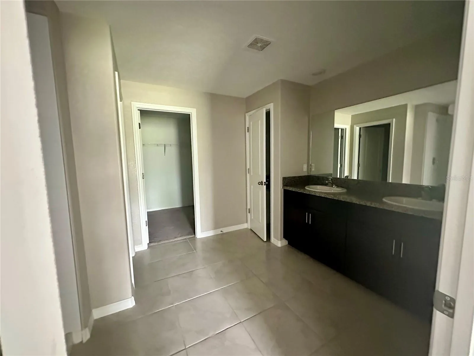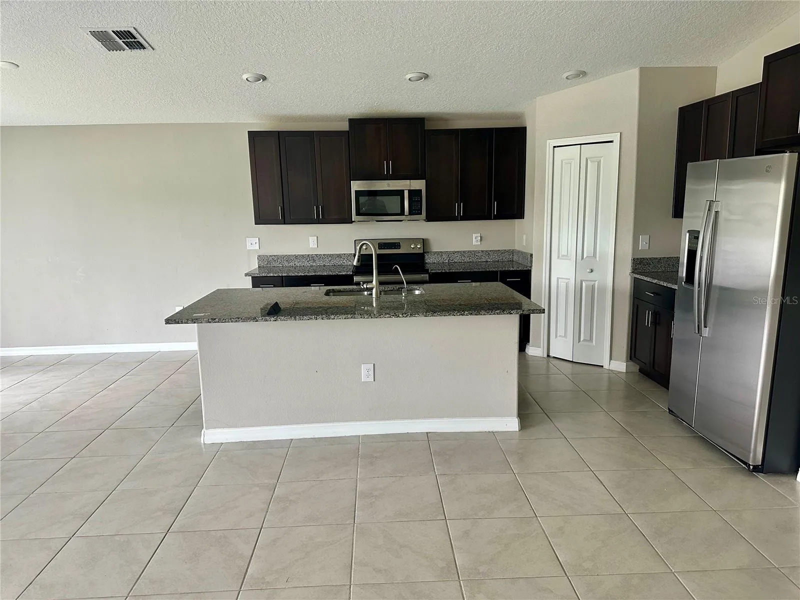 The chef-inspired kitchen features rich espresso cabinetry, gleaming granite countertops, stainless steel appliances, and a large island with seating—ideal for morning coffee or evening entertaining. The primary suite is a private retreat with a spa-like en suite, complete with double vanities and generous storage.