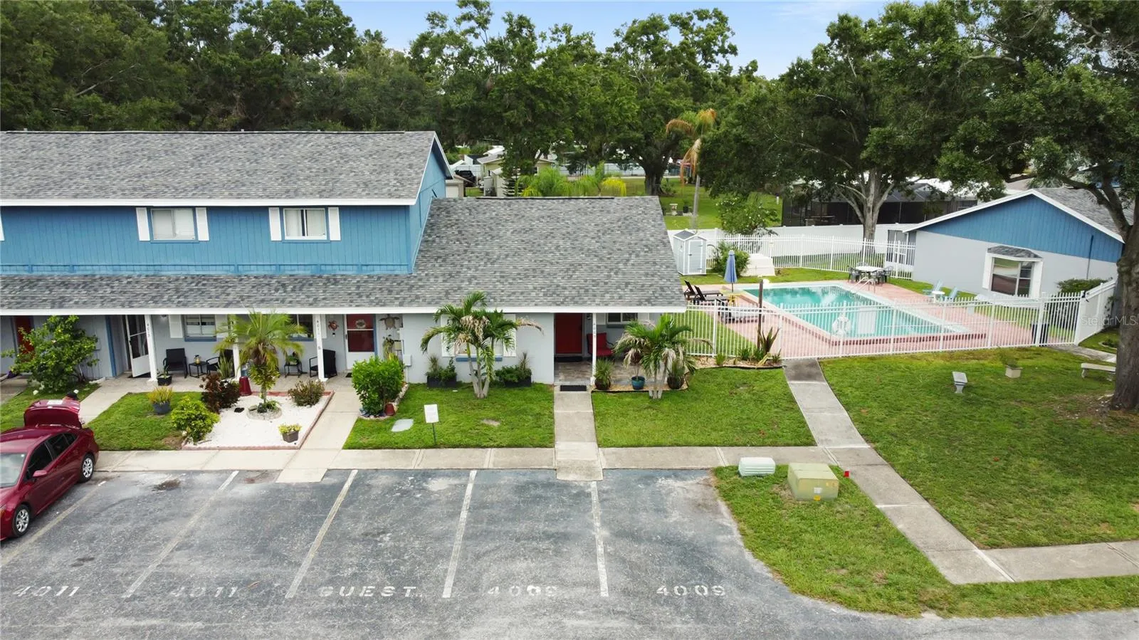 This hidden gem is close to shopping, restaurants, Bucs Stadium, Rays/Yankees Stadium and Tampa International Airport. Close to all of that yet tucked away in a quaint well-cared for community that includes an awesome pool and a scenic pond. Units here do not come available very often! This 2-bedroom/2 full bathroom unit has voluptuous high ceilings throughout. The open floor plan encompasses the kitchen, dining and living areas so you can keep the conversations going! The porcelain tile flooring is hardy and appealing. The kitchen has nice stainless-steel appliances and a solid island with drawers. This island is easily moved if you desire it elsewhere. The living room is spacious and comfortable. The split-bedroom arrangement provides privacy. The primary bedroom has an ensuite bathroom with shower and a large vanity. Bedroom 2 is roomy with a nice sized closet. Bathroom 2 is accessed from the living area and includes a tub/shower. Lots of windows allow natural sunlight to fill the rooms. Speaking of natural light, you have two lovely porches to relax on. There is a front porch with pavers and a delightful large, screened porch out back to unwind. And to top it all off, take a refreshing dip in the pool!! Everything is single-story so there are no stairs to worry about. You get all of this in one of the most AFFORDABLE priced condos in the area! PLUS one of the LOWEST HOA/condo FEES in the area at just $395!!! And that fee, as low as it is, includes water, trash, lawn maintenance, master insurance policy, POOL and pool maintenance! Come on by and see for yourself this fabulous opportunity!