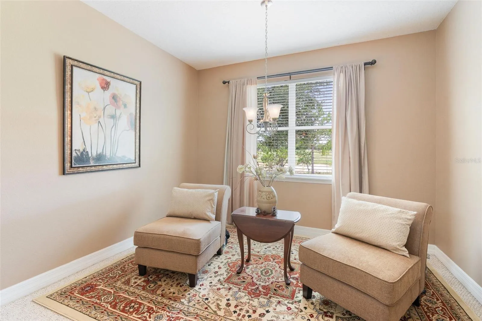 The large primary suite includes a cozy sitting area with views of the golf course, creating a peaceful retreat. Additional highlights include a two-car garage, new roof (4 years) and an HVAC system replaced just a few years ago, providing comfort and peace of mind.