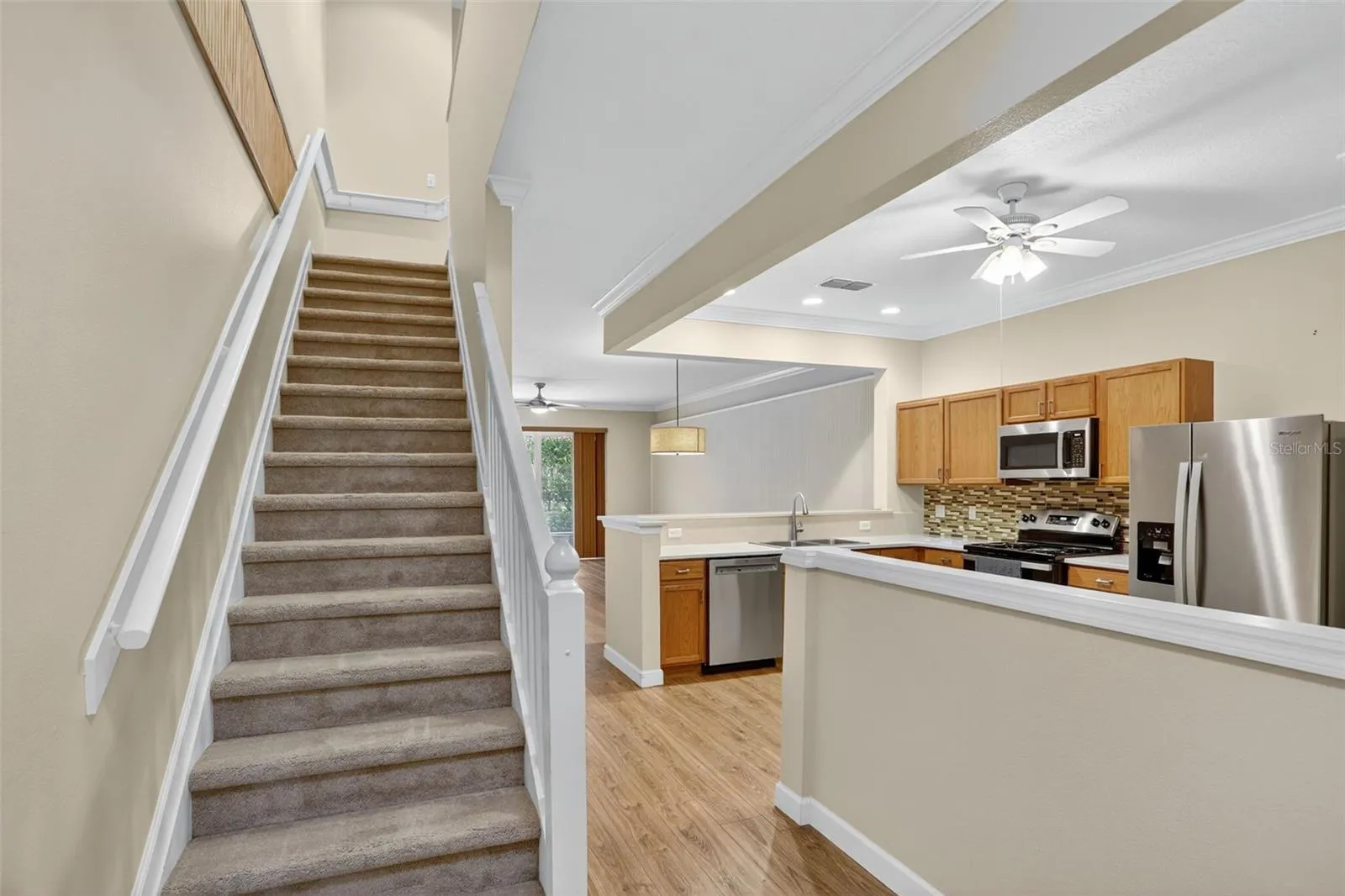 Seller has made upgrades to include: New Hurricane Grade Sliding Glass Doors in Living Room, New wood plank laminate flooring down stairs, New Hot Water Heater, New AC, New Refrigerator, New Dishwasher and HOA replaced the roof 2018.