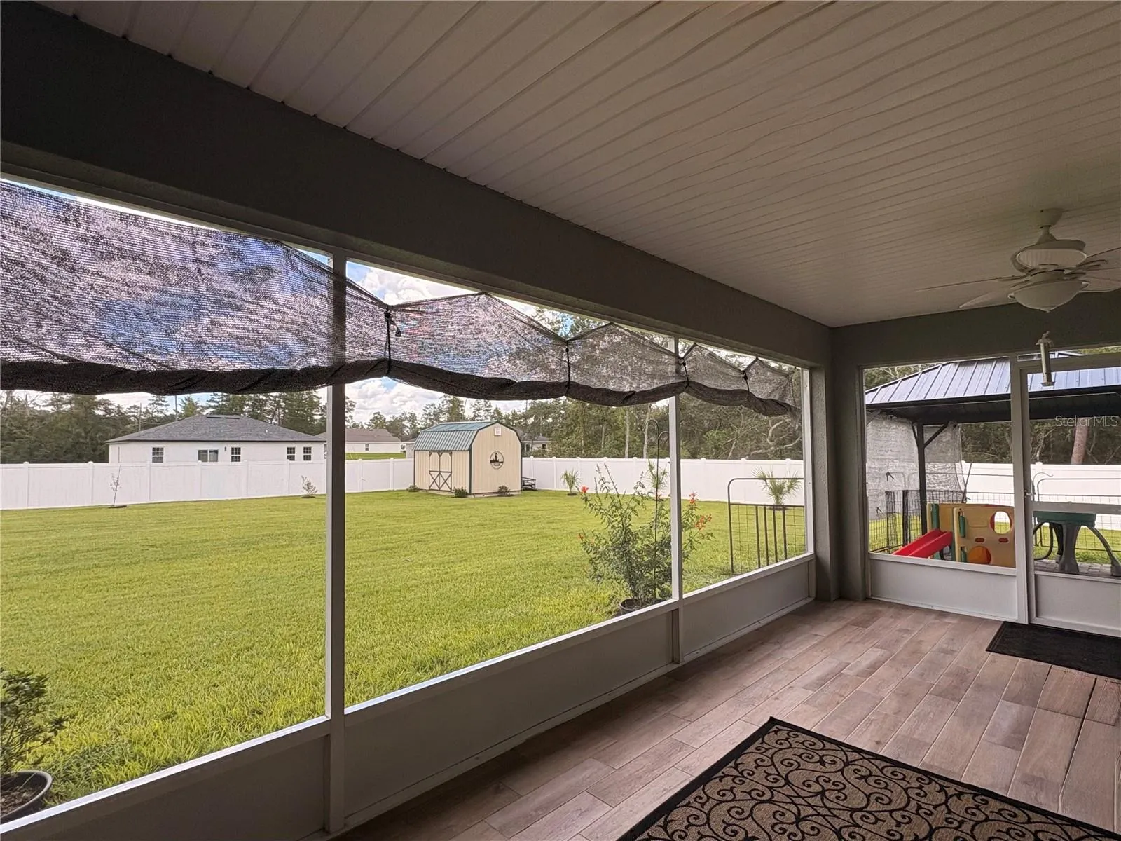Discover your dream home in this beautifully designed 3 bed 2 bath residence on a ½+ acre in the picturesque rolling hills of Marion Oaks. This home features an open and inviting floor plan that’s perfect for modern living. Imagine starting your day at the charming breakfast bar, bathed in sunlight streaming through this open floor plan with cathedral ceilings that add a spacious and airy feel to the home. Ceiling fans throughout ensure your comfort is a priority. The master bedroom is truly a retreat, offering ample space to the luxurious ensuite complete with dual sinks, a walk -in closet, and a walk-in shower for added convenience. This home is less than a year new, has a 2-10 warranty, and it also has several upgrades to include granite counter tops, a tiled enclosed screen room that could be converted to an amazing great room and add almost 300 sq. ft. to the home. A free-standing gazebo, shed, and an enormous beautiful, fenced back yard. It’s situated in a prime secluded area at the back of the subdivision. Don’t miss out on the chance to call this fantastic house your home. Schedule a viewing today and experience the perfect blend of comfort, style, and convenience!