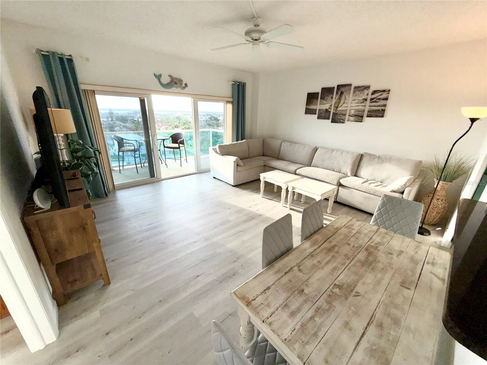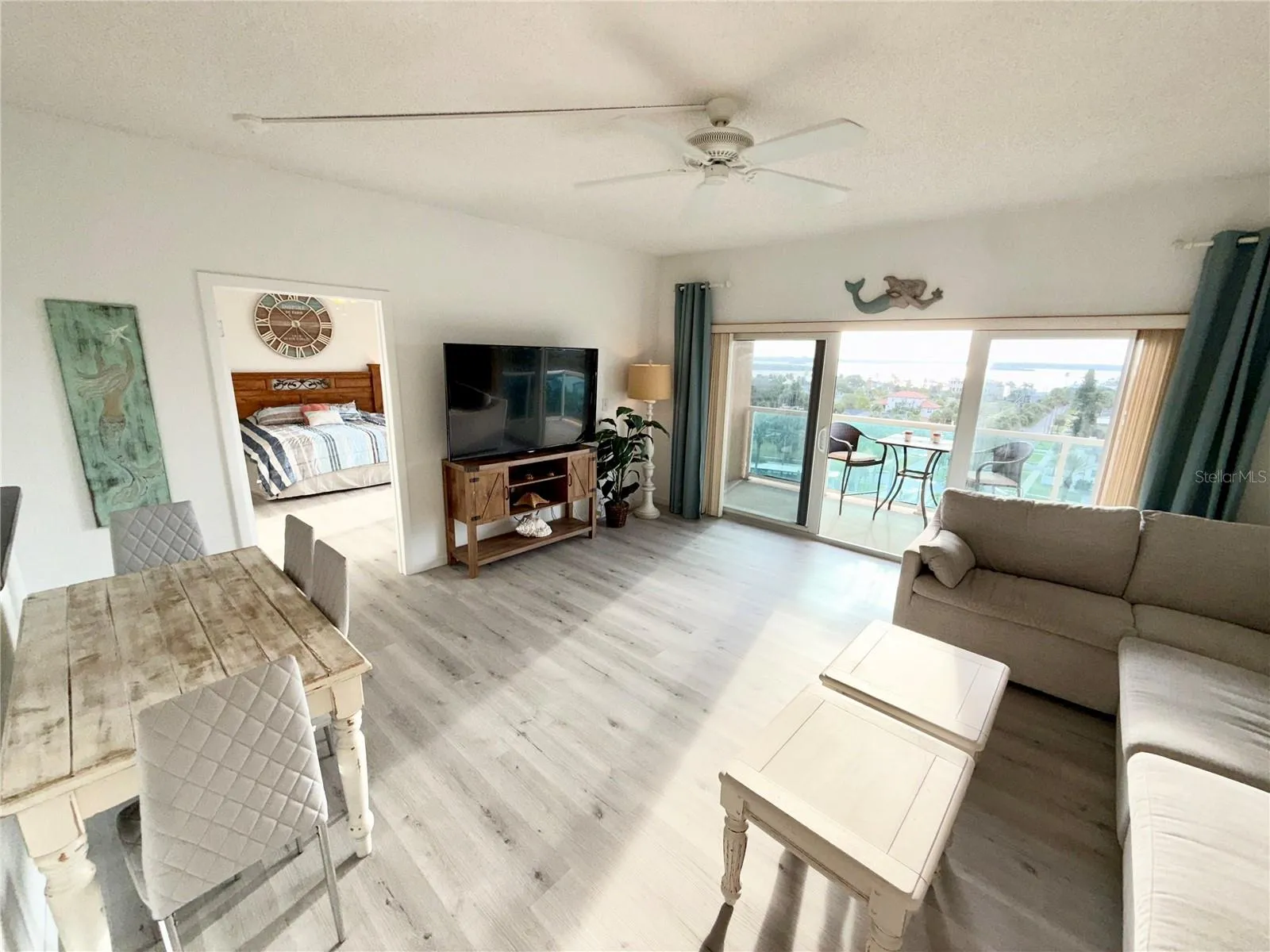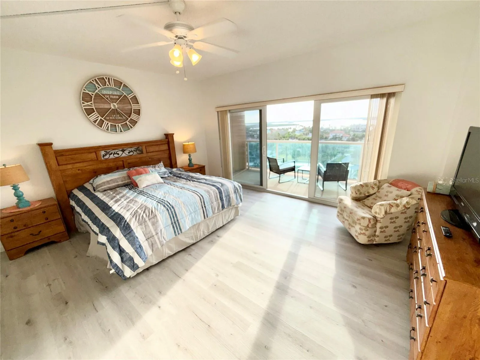 Unit highlights include: two large balconies for sunrise coffee and shaded afternoon lounging; split-bedroom layout for privacy; water views from both bedrooms and living areas; updated kitchen and baths (granite/stainless; rain showers with handhelds); luxury vinyl flooring; excellent storage; two entrances; fully furnished for turnkey use with bonus room for extra guests; and the quiet North Beach location with direct private access to award-winning shoreline.