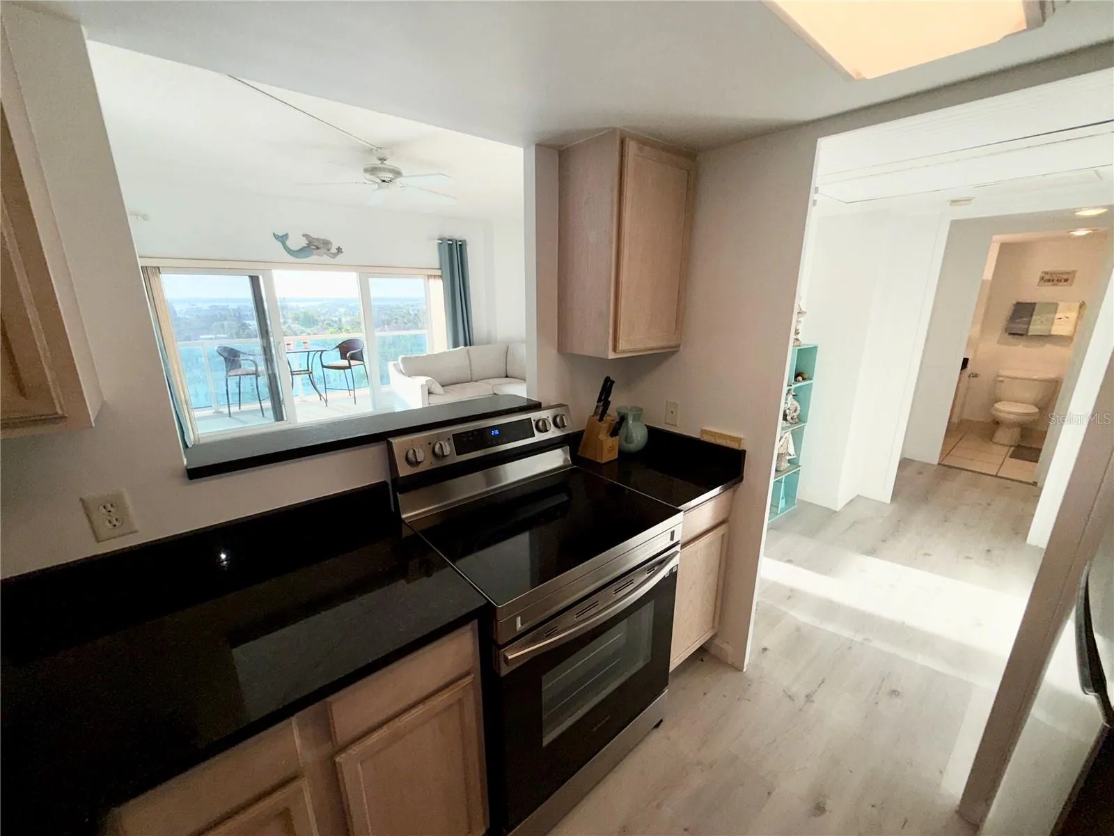 Inside, you’re greeted by a calm beach palette and luxury vinyl flooring throughout. The updated kitchen pairs stainless appliances with granite counters and light beachwood cabinetry, opening to a generous living/dining area that flows out to the first balcony. Each bedroom enjoys water views and its own updated bath with wood vanities topped with black granite, plus wide rain shower heads with handhelds. A flex/bonus room (currently set up with bunkbeds for guests) and two separate entrances add versatility. Thoughtful updates—new outdoor furniture and abundant storage—make day-to-day living easy. This unit is offered fully furnished, so you can arrive with a suitcase and step straight onto America’s #1 voted beach.
