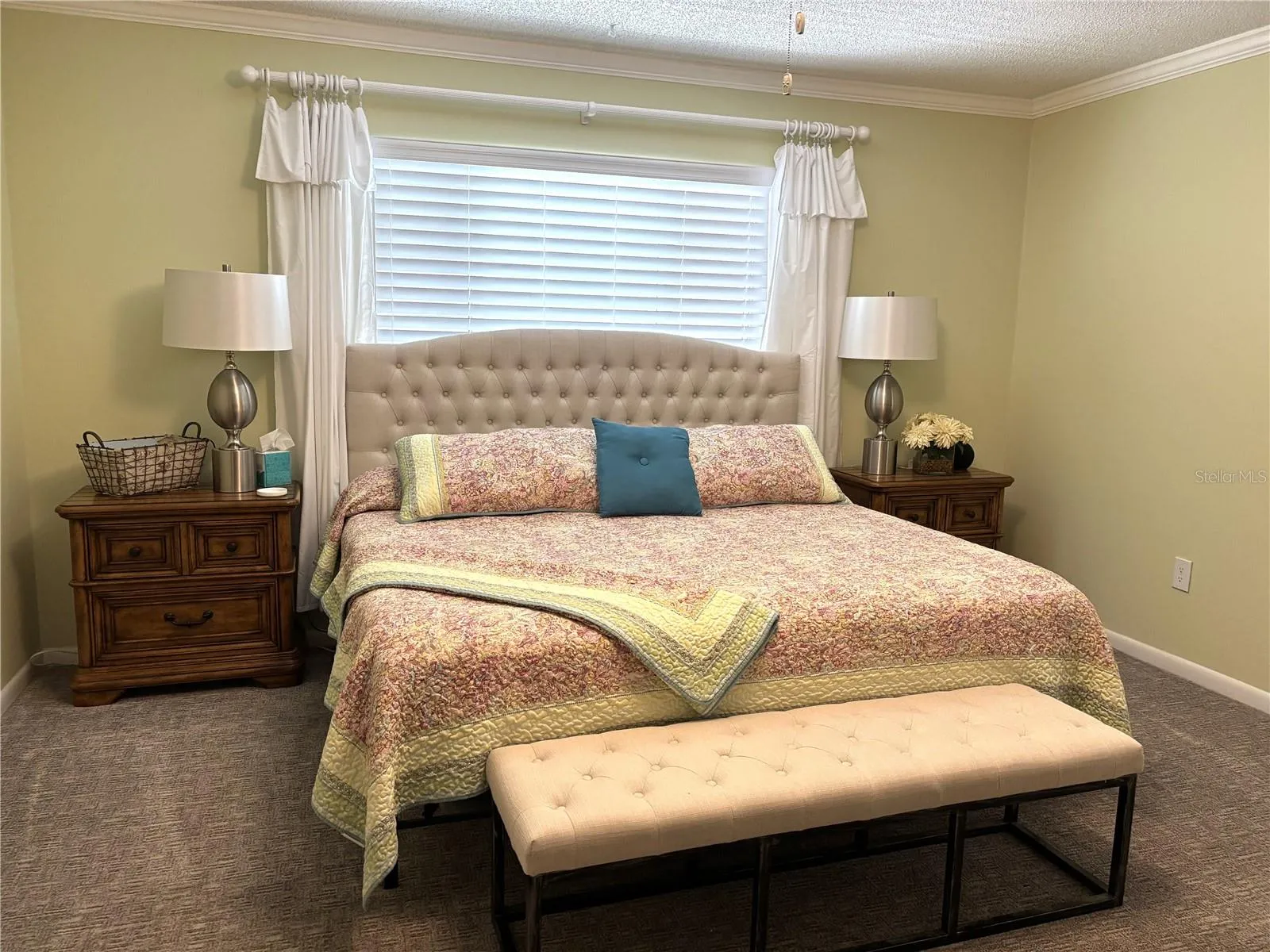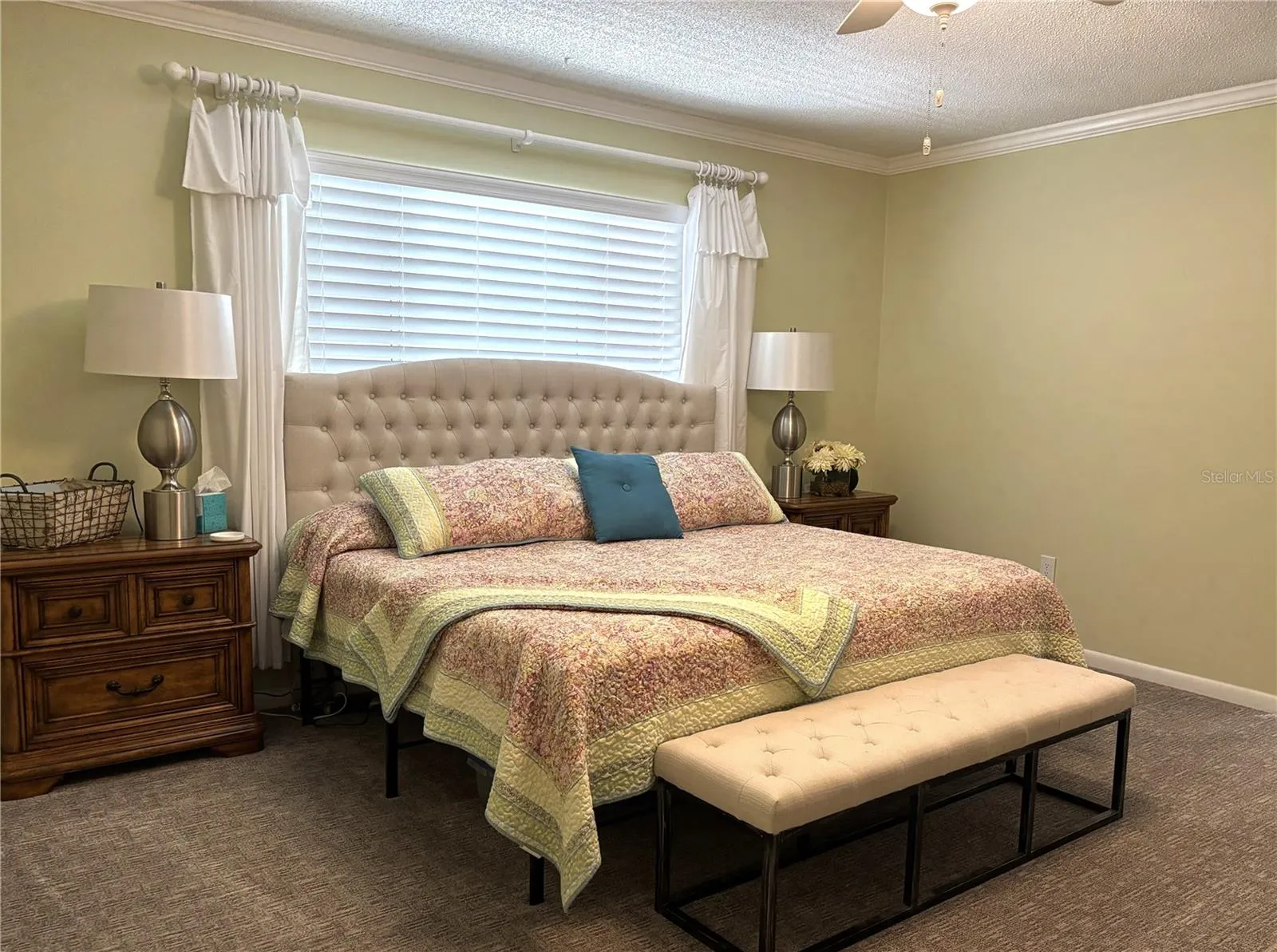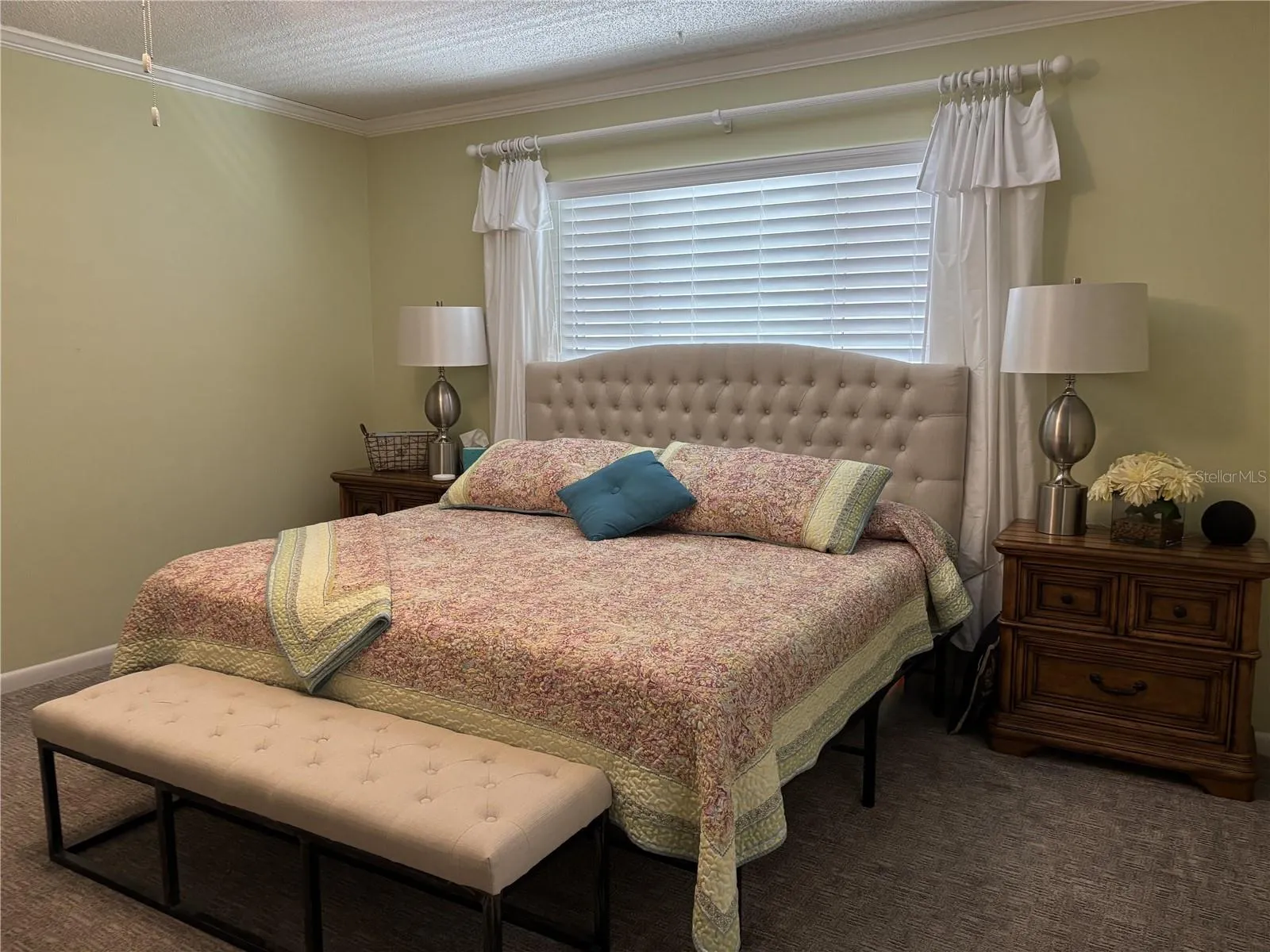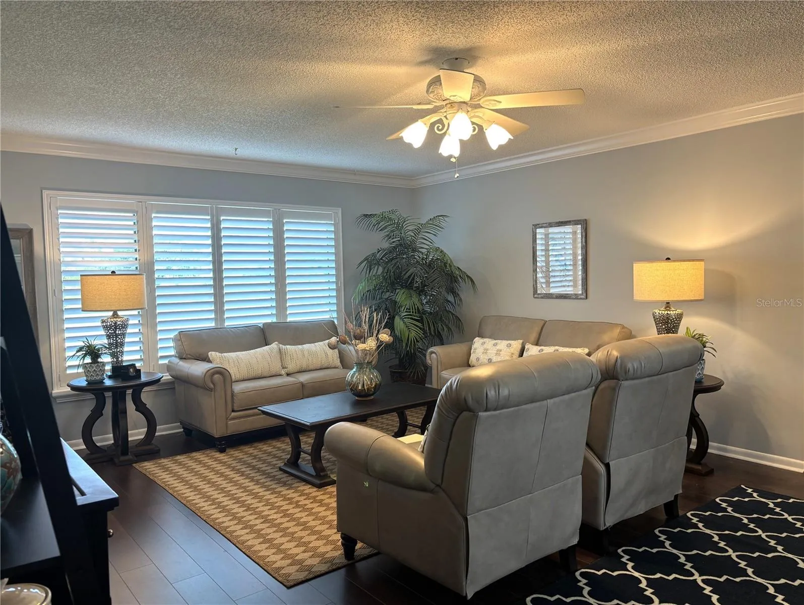 Welcome to 1811 El Rancho Dr, Sun City Center, Florida! This charming home features 2 bedrooms and 2 bathrooms, along with an oversized 2-car garage, all situated in a non-HOA area that permits fencing. Enjoy picturesque views of the pond from your front living room or the screened garage. Home Features – Split Bedrooms – Each equipped with an en-suite bathroom, walk-in shower with a bench, walk-in closet, and a linen closet. Galley Kitchen has updated cabinetry with ample drawers, upper cabinets featuring glass fronts and lighting, built-in oven, and shiplap ceiling. Multifunctional Great Room can serve as a formal dining room or den. Dining Area just beyond the kitchen, leading to double doors (with built-in blinds) that open to a private screened gazebo with a roof. The backyard is fenced to provide a private oasis. The oversized garage allows for longer vehicles or additional storage. The laundry area has a utility tub and cabinets for additional storage. There are impact windows throughout the home, along with drop-down storm shutters on most windows. Crown molding throughout the home adds a touch of elegance. The HVAC system was updated in 2021. Sun City Center is a vibrant 55+ community offering an array of amenities including indoor and outdoor swimming pools, large fitness center, tennis courts, Pickleball, lawn bowling, and softball for both men and women and woodcarving. In addition, there over 200 clubs such as travel, gardening, ceramics, computer, bridge, poker, writing, big band, chorus, jazz, dance clubs, theater groups, and a library.