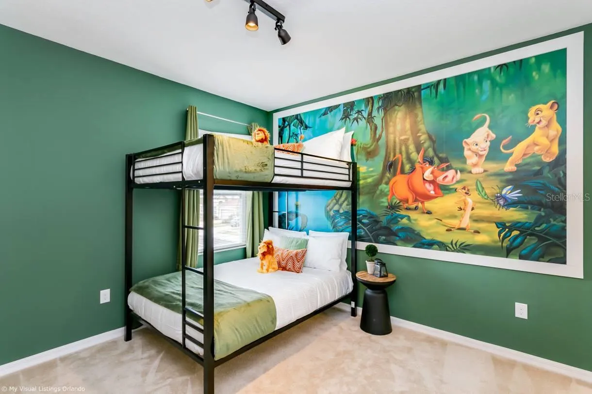 home located in the desirable Veranda Palms Resort in Kissimmee, just minutes from the Disney area. This exceptional property offers 8 spacious bedrooms—including 3 themed rooms (Minions, Lion King, and Mickey & Minnie)—and 6 full bathrooms, providing comfort and style for family living or an excellent investment opportunity.