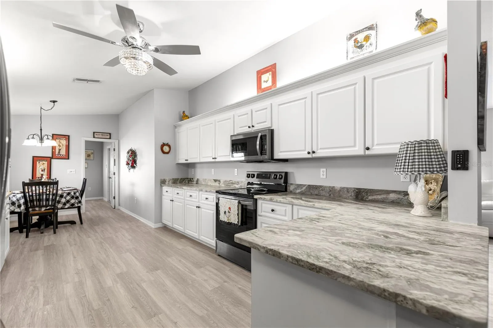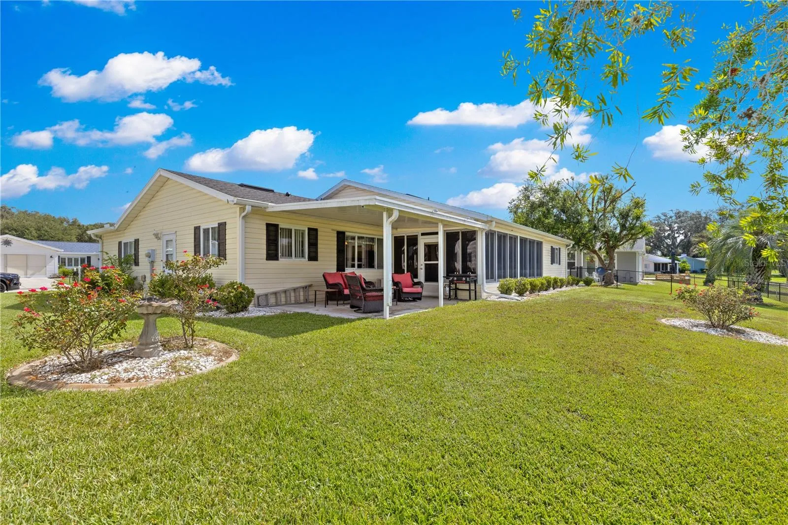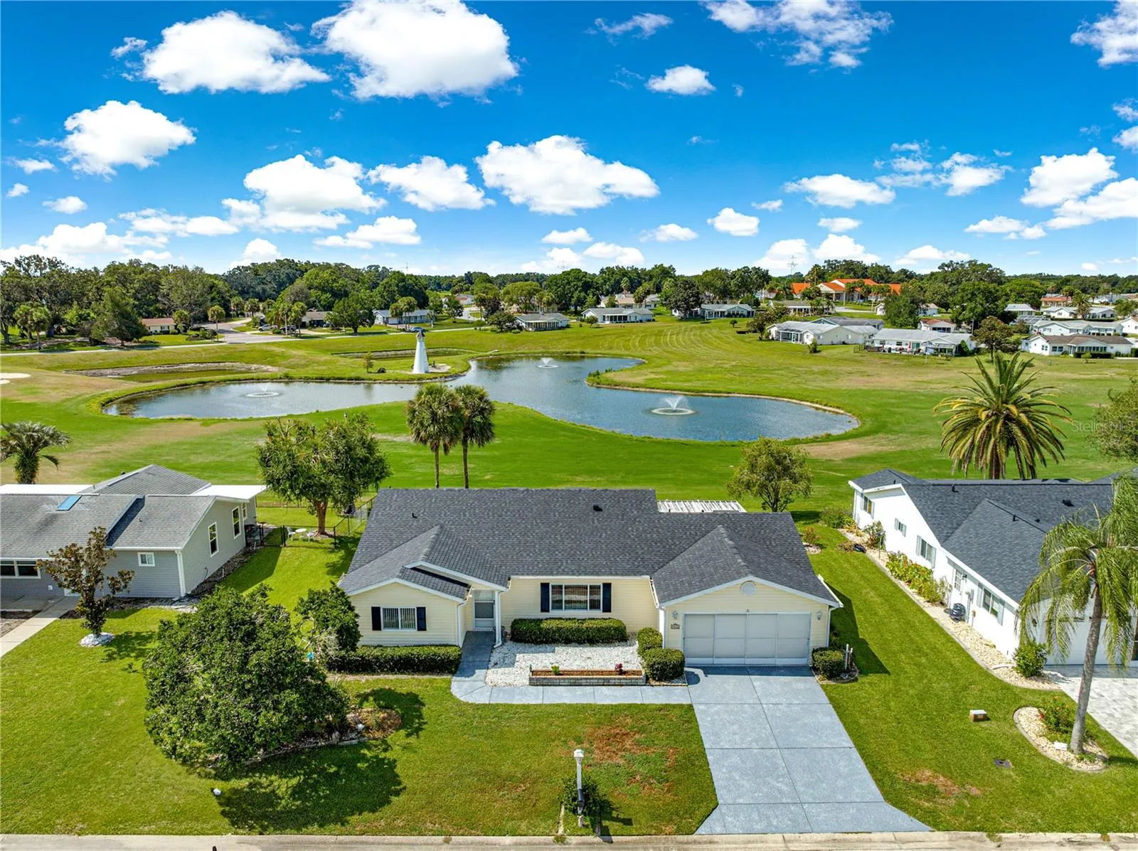 DYNAMITE LOCATION! SPECTACULAR VIEW!! Take in breathtaking views of the beautiful golf course, lighthouse, serene pond, and cascading water fountains right from your back porch! Perfect place to relax and entertain your family and friend. Enjoy the luxury vinyl plank floors that flow seamlessly throughout home. The updated kitchen features granite countertops, black stainless steel appliances, cabinets and flooring. The primary bathroom is very spacious with dual vanities and granite countertops. The Guest bathroom features a fully renovated walk-in shower. You will love this versatile bonus room perfect for an office space, hobbies or extra storage space. Nestled in the desirable 55+ gated golf community of Spruce Creek South, just two miles from The Villages downtown Spanish Springs Square. This beautifully updated home offers Country Club living with the convenience of nearby shopping, dining, VA and medical facilities all accessible by golf cart. This home is very close access to the community activity center, community pool, and a host of amenities. With a roof replaced in 2021, this move-in ready property blends comfort, style, and an unbeatable location. *** DON’T MISS OUT ON THIS ONE ***