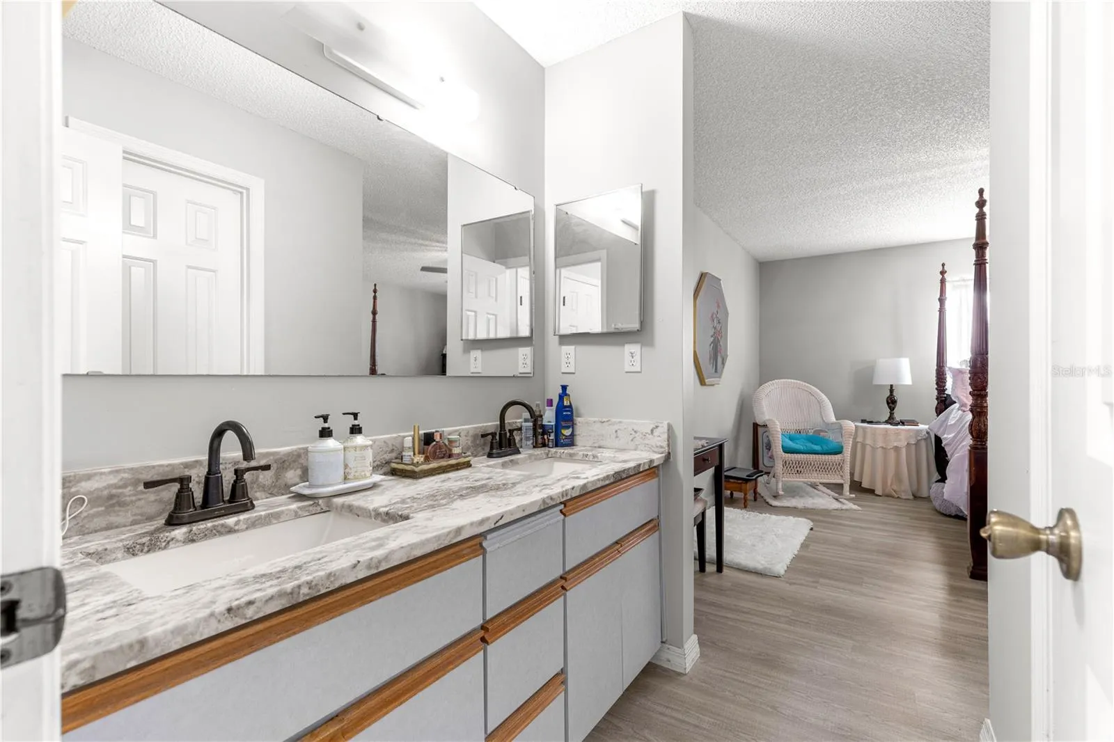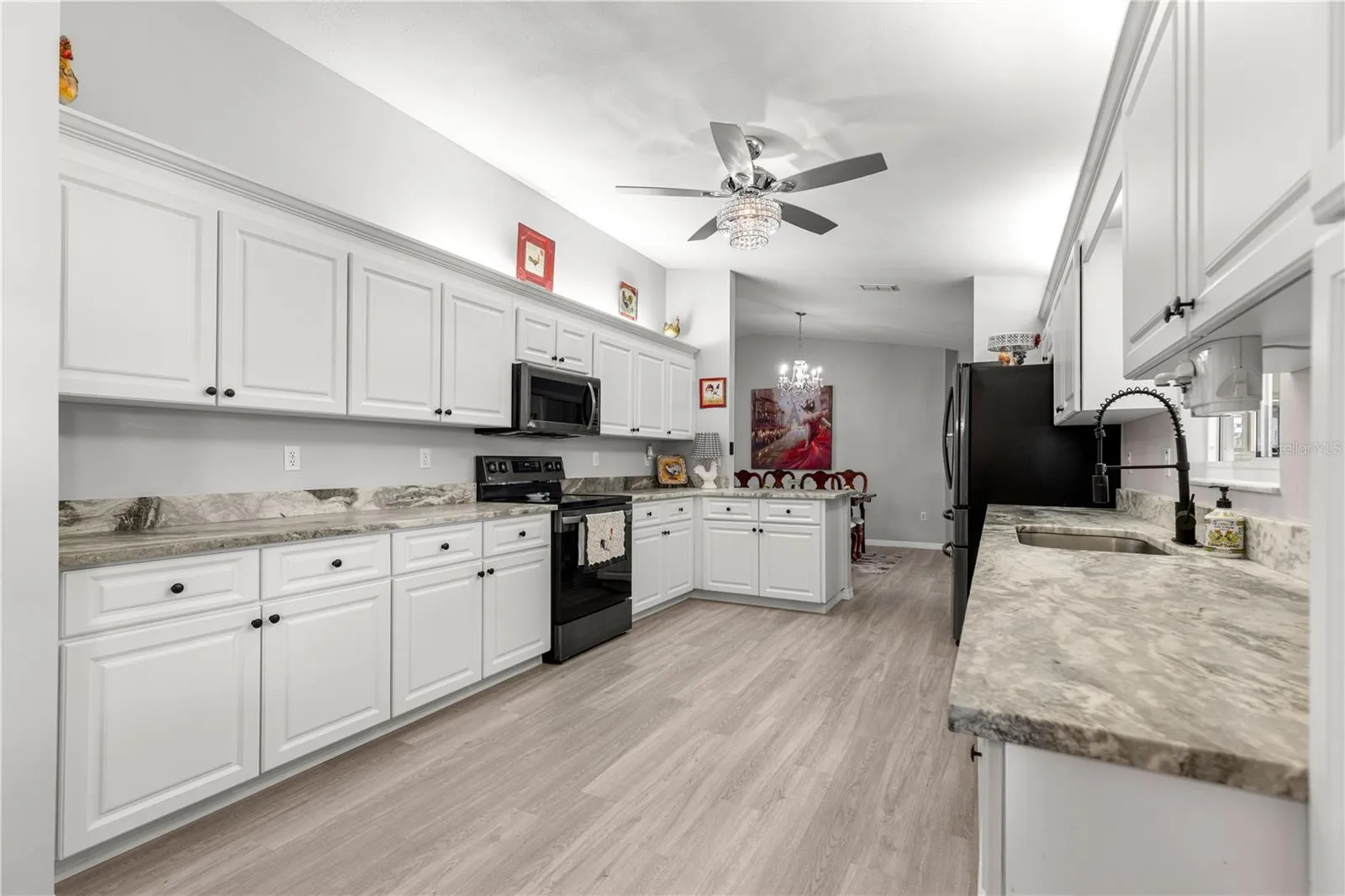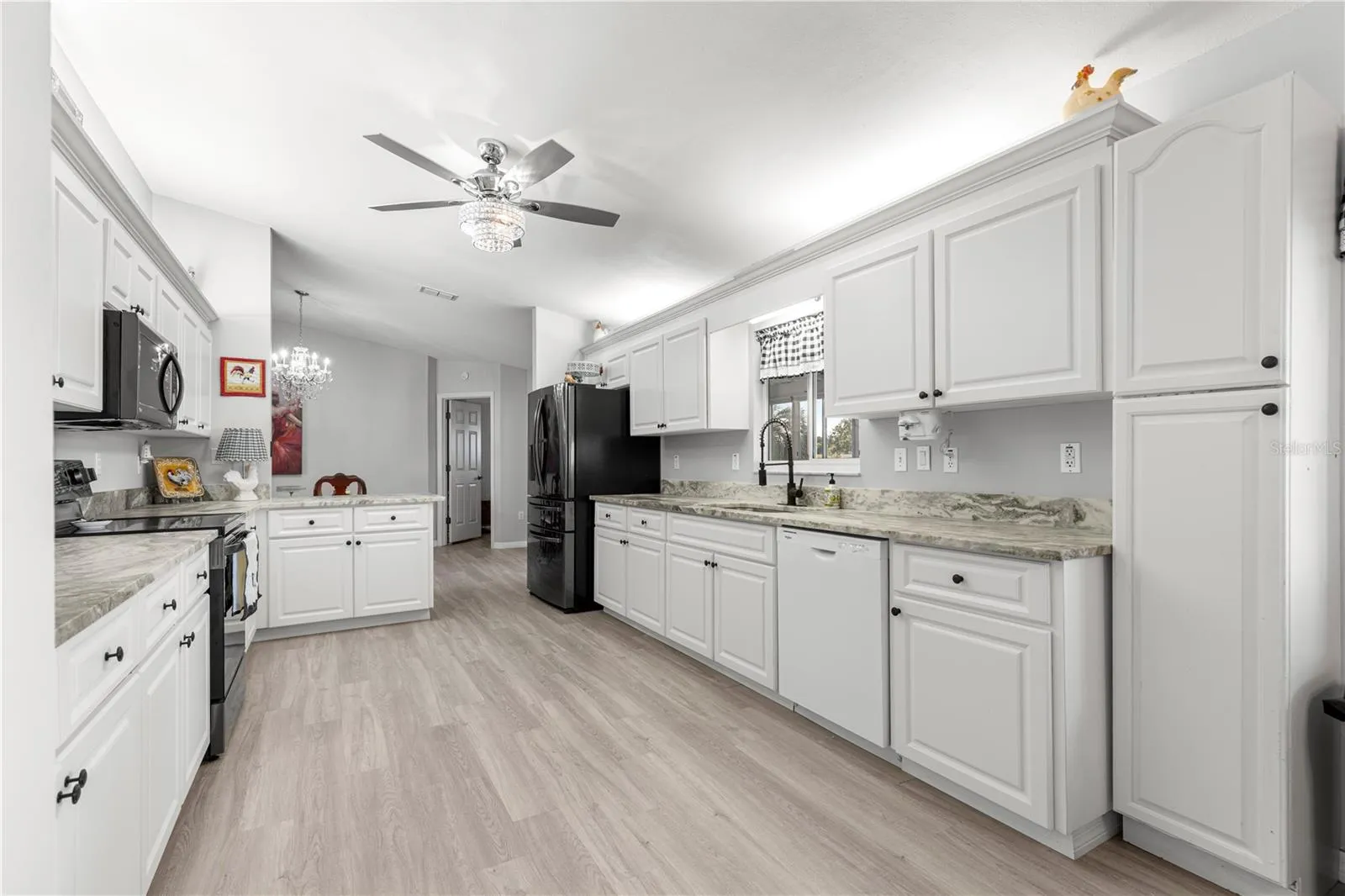 DYNAMITE LOCATION! SPECTACULAR VIEW!! Take in breathtaking views of the beautiful golf course, lighthouse, serene pond, and cascading water fountains right from your back porch! Perfect place to relax and entertain your family and friend. Enjoy the luxury vinyl plank floors that flow seamlessly throughout home. The updated kitchen features granite countertops, black stainless steel appliances, cabinets and flooring. The primary bathroom is very spacious with dual vanities and granite countertops. The Guest bathroom features a fully renovated walk-in shower. You will love this versatile bonus room perfect for an office space, hobbies or extra storage space. Nestled in the desirable 55+ gated golf community of Spruce Creek South, just two miles from The Villages downtown Spanish Springs Square. This beautifully updated home offers Country Club living with the convenience of nearby shopping, dining, VA and medical facilities all accessible by golf cart. This home is very close access to the community activity center, community pool, and a host of amenities. With a roof replaced in 2021, this move-in ready property blends comfort, style, and an unbeatable location. *** DON’T MISS OUT ON THIS ONE ***