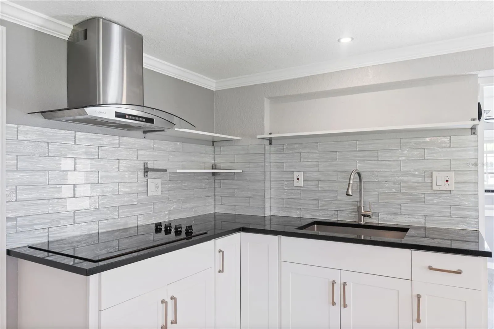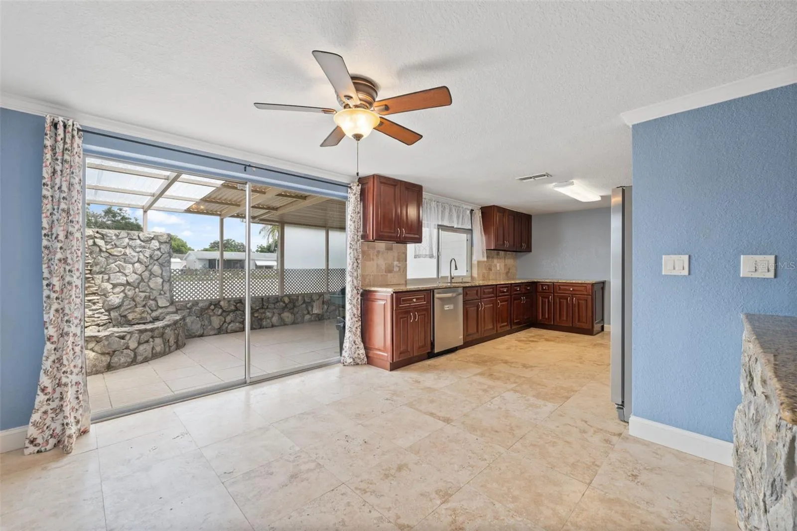 This beautifully remodeled home offers stunning canal views and a versatile layout that includes a private mother-in-law suite with its own eat-in kitchen, bedroom, and en-suite bath featuring travertine floors.