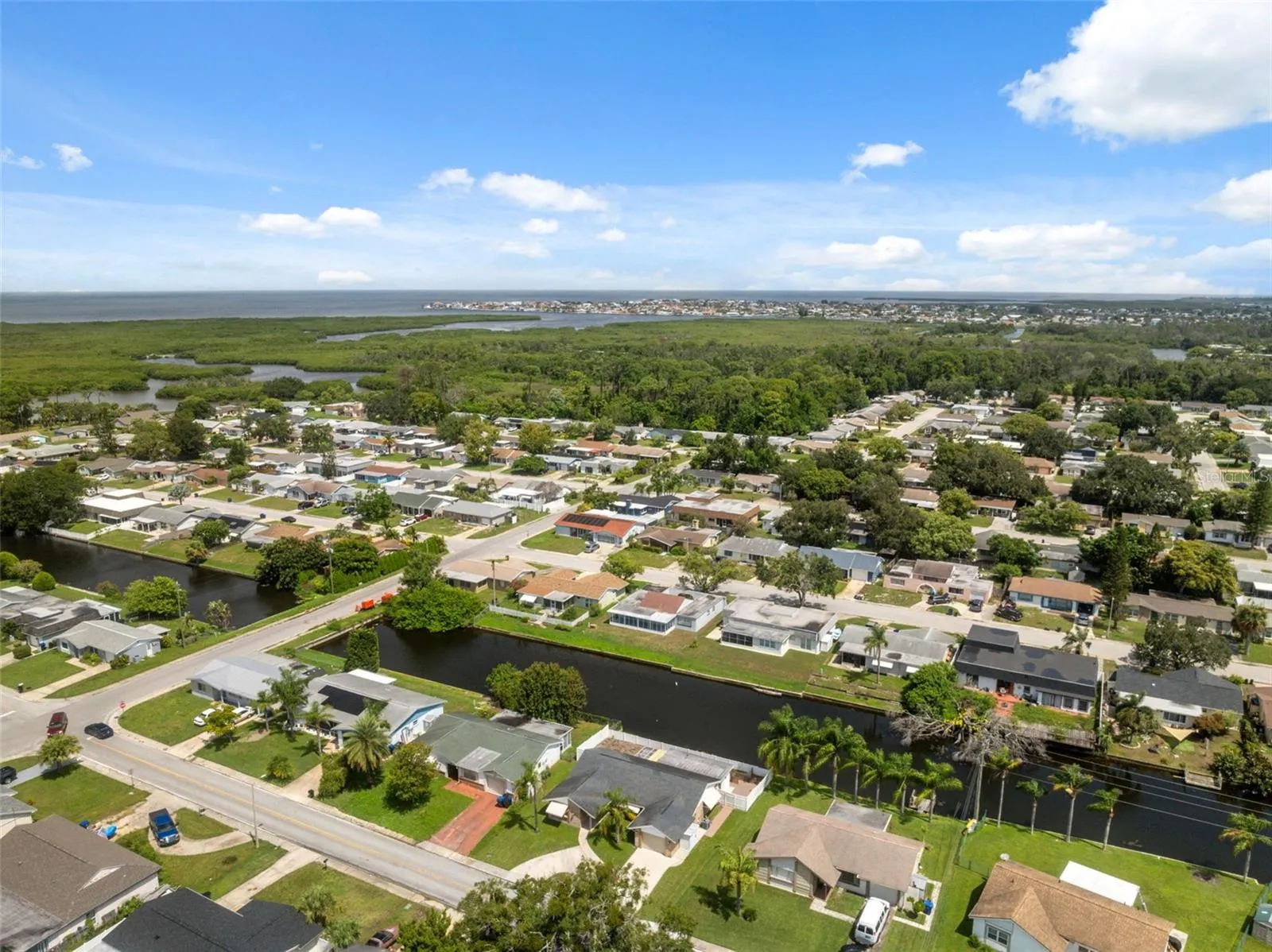 Outside, enjoy a screened-in lanai with a fountain overlooking the canal, perfect for watching wildlife and sunsets. The circular driveway adds convenience and curb appeal. Just down the street, you’ll find a community pool and clubhouse, with beaches, parks, shopping, schools, and the charming downtown New Port Richey and Tarpon Springs Sponge Docks nearby.