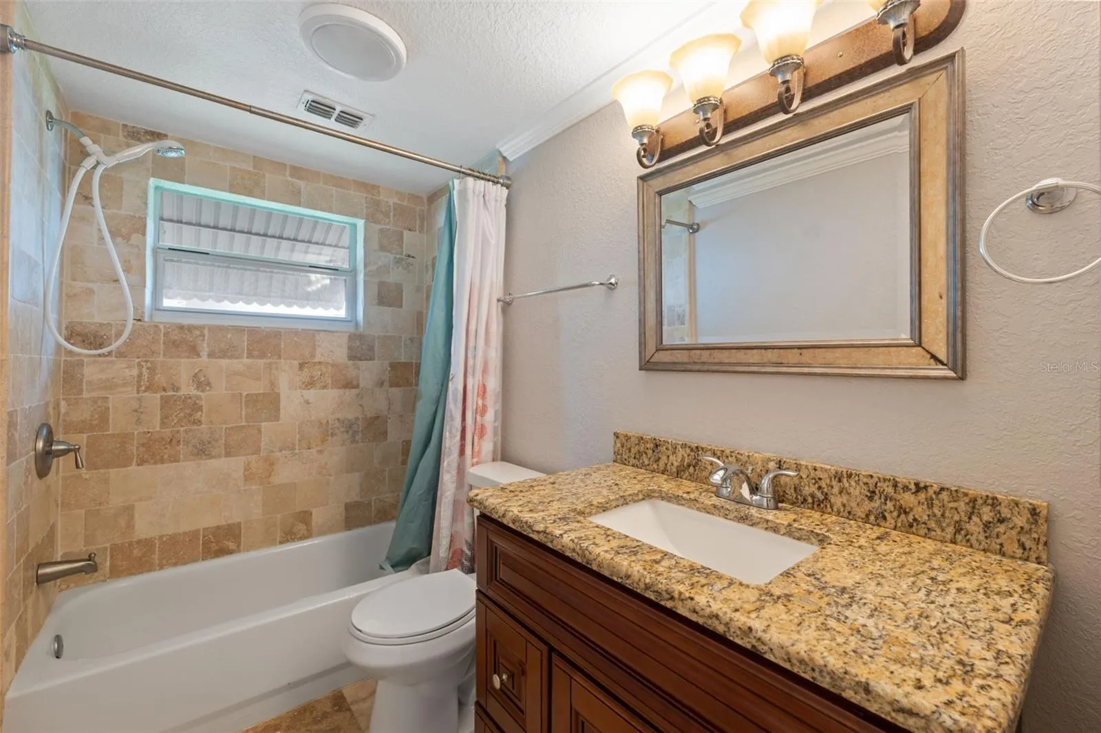 The main home showcases a fully updated kitchen with self-closing wood cabinetry, granite countertops, travertine backsplash and floors, and Whirlpool stainless steel appliances. Both main bathrooms have been tastefully remodeled with granite vanities, new fixtures, and travertine showers or baths. Throughout the home, you’ll find rich wood flooring, crown molding, six-inch baseboards, and raised panel doors for a refined finish.