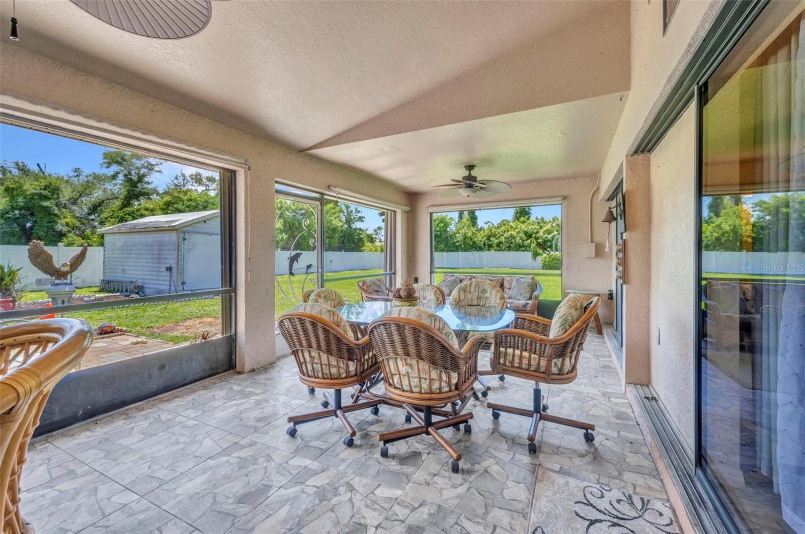 Open Floor Plan 3 bedrooms, 2 baths, 2 car garage surrounded by 2 vacant lots that have been combined with the main house, so you have lots of privacy. A new Generac Generator recently Installed in February 2025 (This means you will never lose Electricity during any power failures) All plumbing has been updated (Re-piped-no copper pipes), Electrical updated to include Electric Power all along the Vinyl Fence (Approximately 250+ feet of Fence). Sprinklers on one of the vacant lot and main house. New Roof with Third Nail installed May 2023. Accordion Shutters on all windows including the screened in lanai and front door. This home is protected in every way. Landscaping with a plethora of Solar Lights to illuminate the property at nighttime. Solar Light Caps on the Vinyl Fence.
