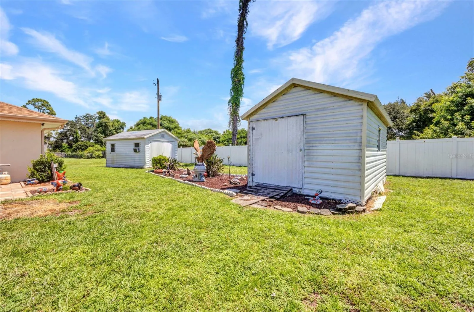 Dishwasher, new glass top stove & over the hood Microwave Oven, large pantry with bifold mirrored doors. Dining Room comes with a built in Mirrored/Glass Wall Unit to show off all your cherished heir looms or awards and whatever you want it to show off. The bottom cabinets can store all your cherished dinnerware & silverware. Living Room/Grand Room will accommodate a sectional sofa and large screen TV. Master Bedroom with ensuite bathroom has a Roman Type walk-in Shower with a bench and built in shelves for Shampoos & Soaps, updated vanity sink with granite countertop and a toilet closet, large linen closet. Guest bedrooms can accommodate queen beds or twin beds or used as a home office, both have built in closets with Bifold Mirrored Doors. Updated Ceramic Tile Flooring in Living Room, Dining Room, Kitchen, Hallways, & guest bathroom. Carpets in Master Bedroom and the 2 guest bedrooms. All rooms have ceiling fans with Lighting, including 2 ceiling fans in the lanai. Guest Bathroom comes with walkin Tub with Jacuzzi Jets and mood lighting. Laundry Room comes with LG Front Loaders with the bases, Bifold Mirrored Doors and across from the laundry room there is another large pantry closet to store pots & pans & whatever you want to use it for with bifold mirrored doors as well. This home is within a short driving distance to any type of Restaurants, shopping stores, medical facilities and hospitals, and schools. Charlotte Harbor Beach Complex is about 6 to 10 minutes away & has been very well maintained and cared for. Home is sold with the 2 additional lots plus two (2) 10 x 16 Sheds.