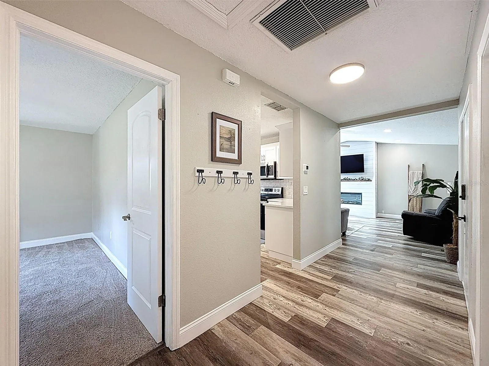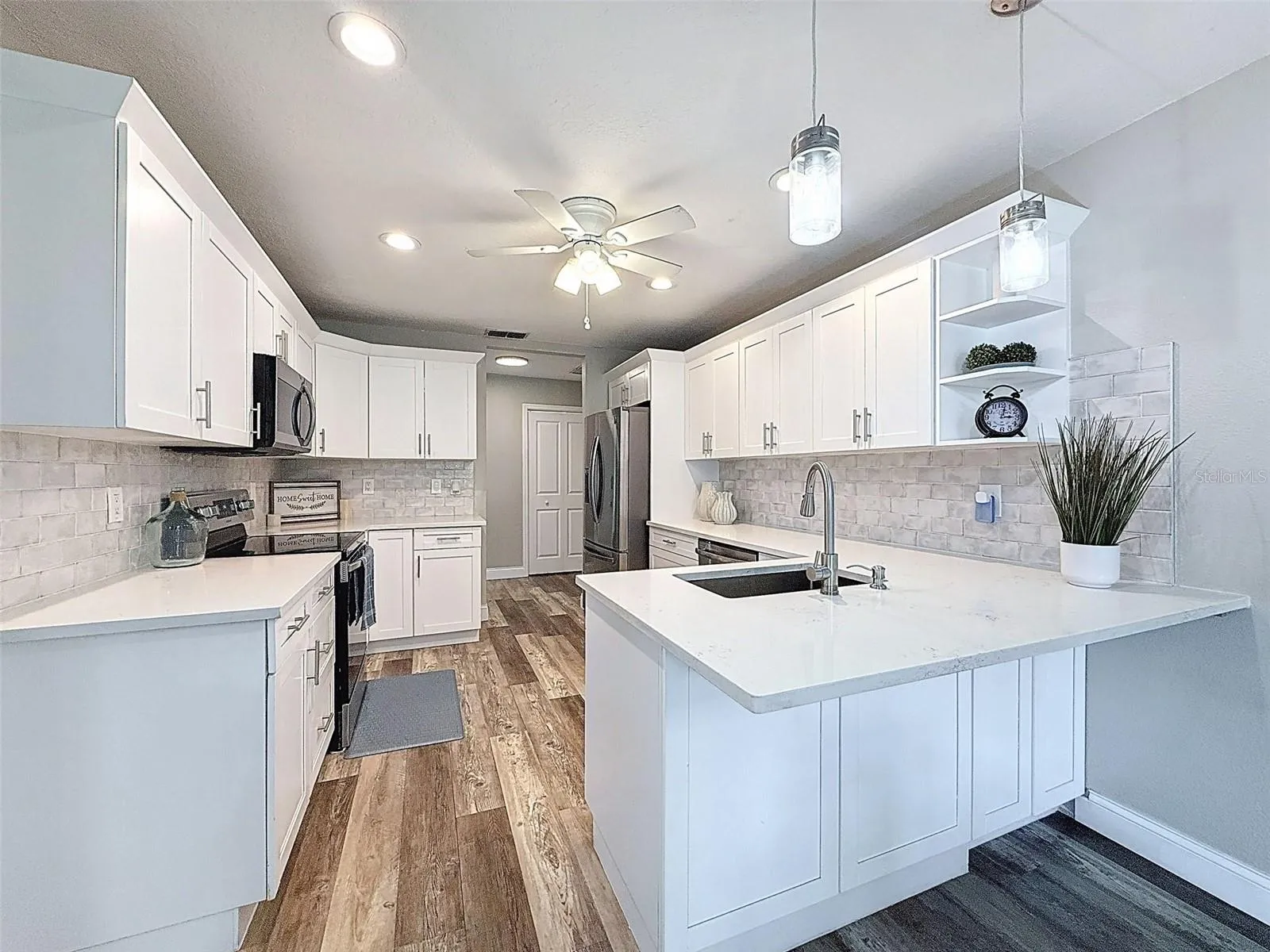 Come check out this beautifully remodeled home in Greenbrook Estates. You will love the open concept living, the vaulted ceilings, and large bedrooms. The living area boasts a beautiful fireplace/tv/storage area, walk in closets/laundry, and pantry. Enjoy the water and wildlife views and/or experience the thrill of a nice catch in the pond right in your private back yard. The community pool and clubhouse are a stones throw away and are waiting for you to visit. There is a beautiful oak tree in the front yard to provide plenty of shade for you to enjoy. The garage, screened in front and rear porches, and patio provide plenty of space for you to utilize. Enjoy nearby Mitchell Park, Mitchell Ranch shops, highly rated schools, golf courses, restaurants, and shopping. Tampa and the beaches are within a half hour drive and you can be in Orlando before you know it! Welcome home!
