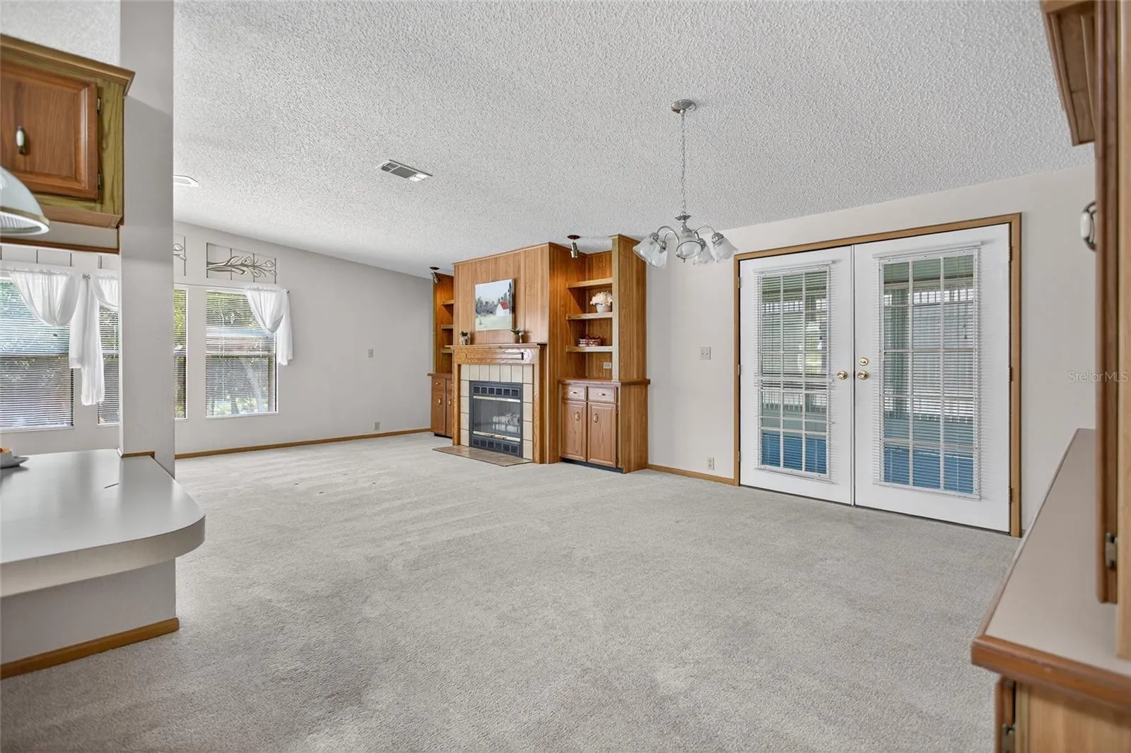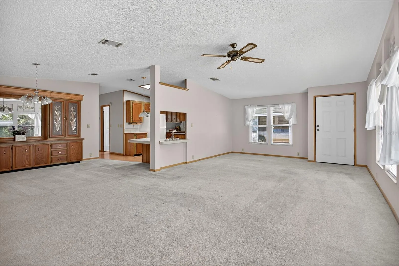 This beautiful open floorplan 2 bedroom/2 bath overlooks some of the best views in the community. New Roof 2018, Annually Serviced A/C, Inside Laundry (washer/dryer convey) HOME WARRANTY included. Spacious Living room with wood burning fireplace (electric insert) overlooks the park like setting with mature trees, blue skies, the lake, birds & butterflies offering a tranquil setting for this phase of your life. The formal dining room has spacious built in cabinetry & opens both into the well appointed kitchen and through French doors onto your All-Season Porch for even more dining capacity. Your spacious guest bath is adjacent to a generous sized guest bedroom. Enjoy your primary bedroom’s high ceilings and huge walk in closet. Then open the French Doors into your Primary bath with double vanity, tons of storage and the walk in shower. But don’t get too comfortable….there’s always something to do. More activities than you will ever have time to do. Full Service Restaurant, Entertainment every Friday night, Bingo multiple nights, Line Dancing, a Gym, Woodworking shop, Stained Glass, 4 pools, water aerobics and a Championship Golf course. Manned Security Guard Gate 24/7 & On Site Park Management Staff. RV Storage Lot. LOW HOA includes Lawn, Trash, High Speed Fiber Optic Internet and Cable, Security & use of all the amenities. Ask about our Reduced Greens Fees. THIS COULD BE YOUR HOME, SET AN APPOINTMENT TO COME SEE IF FOR YOURSELF! Zellwood Station, where The Good Life Begins!