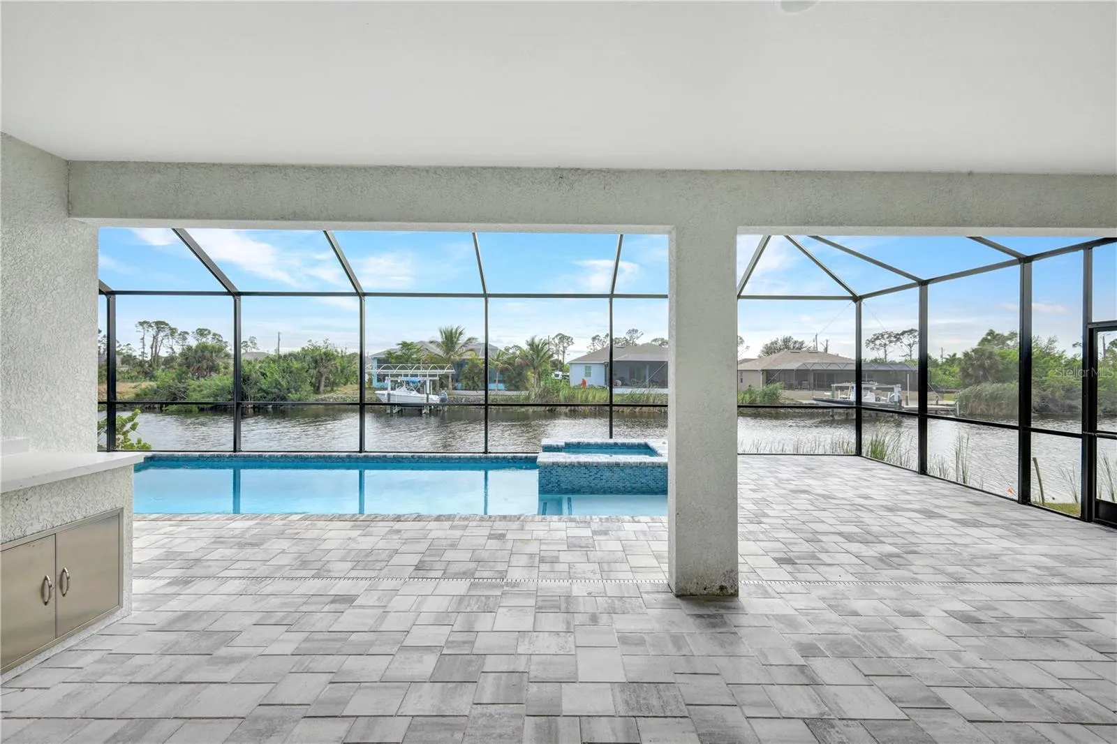 Enjoy YEAR-ROUND PEACE OF MIND with HURRICANE-IMPACT WINDOWS AND SLIDING GLASS DOORS throughout. The outdoor living area is equally impressive, featuring a spacious covered lanai, SUMMER KITCHEN hookups, OUTDOOR SHOWER, and a POOL AND SPA with a SUNDECK perfect for lounging, splashing, or cooling off with your furry friends. The 60’ WIDE PAVER POOL DECK and HEAVY-DUTY UPGRADED CAGE (6” FRAMING) complete this exceptional OUTDOOR OASIS. Each of the three bedrooms offers DIRECT POOL ACCESS, making this home ideal for both ENTERTAINING and RELAXED FLORIDA LIVING. The OVERSIZED 3-CAR GARAGE (32’ x 20’, 720 SQ. FT.) includes HURRICANE-RATED DOORS and houses the HVAC handler and water heater.