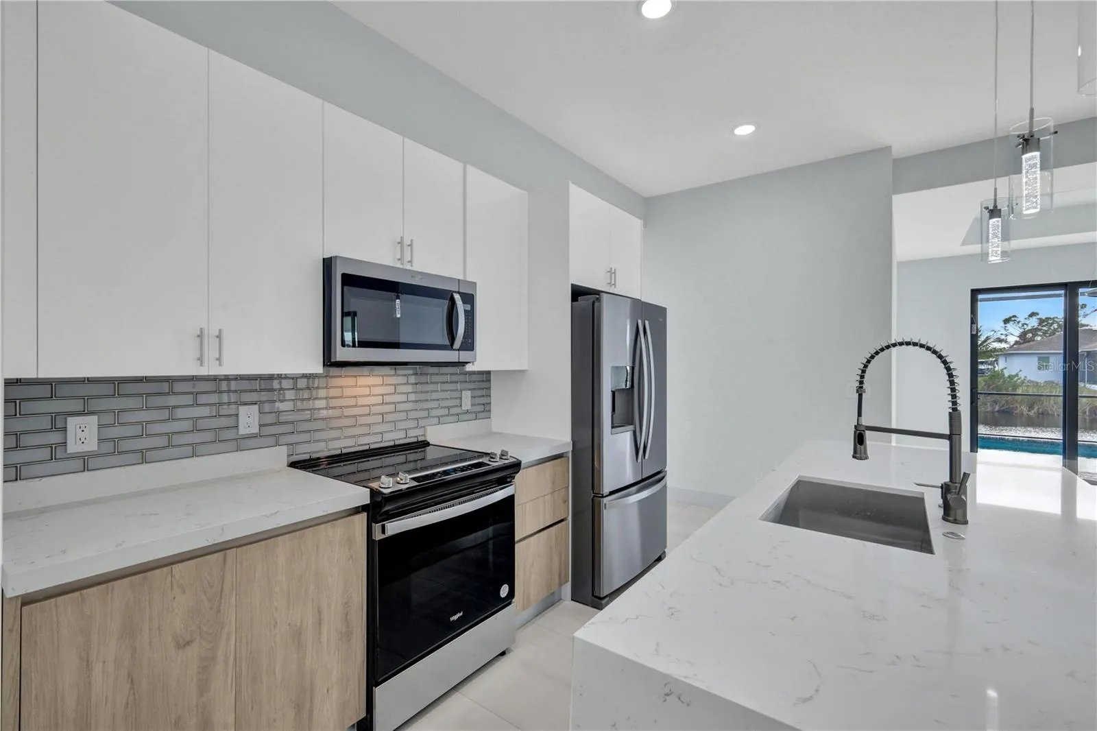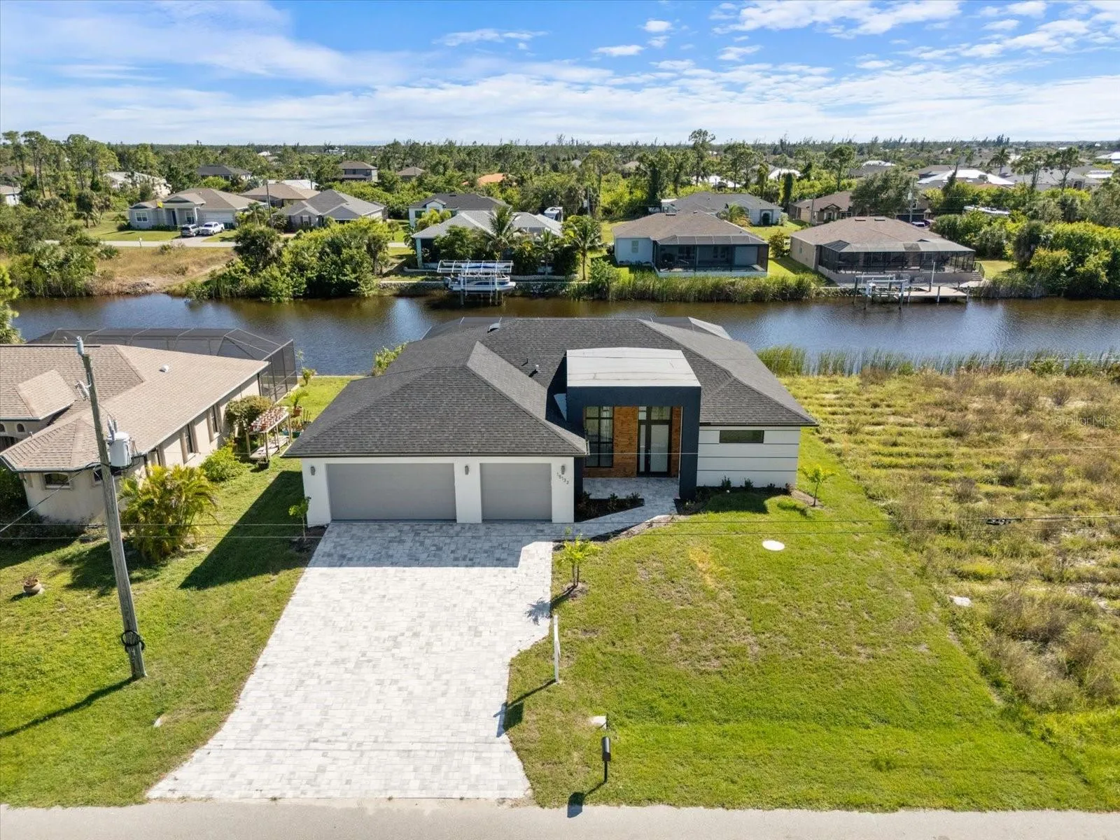 This BRAND-NEW, CUSTOM-BUILT HOME radiates QUALITY CRAFTSMANSHIP and MODERN ELEGANCE from the moment you arrive. The PAVER DRIVEWAY, GRAND ENTRANCE, and FLOOR-TO-CEILING WINDOWS WITH SLATTED WOOD ACCENTS immediately set the tone for the stunning design found throughout. Perfectly situated on a SALTWATER CANAL WITH DIRECT GULF ACCESS in the highly desirable boating community of South Gulf Cove, this 3-BEDROOM + OFFICE, 3.5-BATHROOM, RESIDENCE — featuring TWO MASTER SUITES — offers REFINED LUXURY and THOUGHTFUL FUNCTIONALITY at every turn.