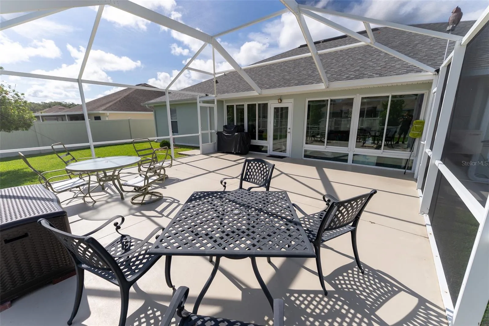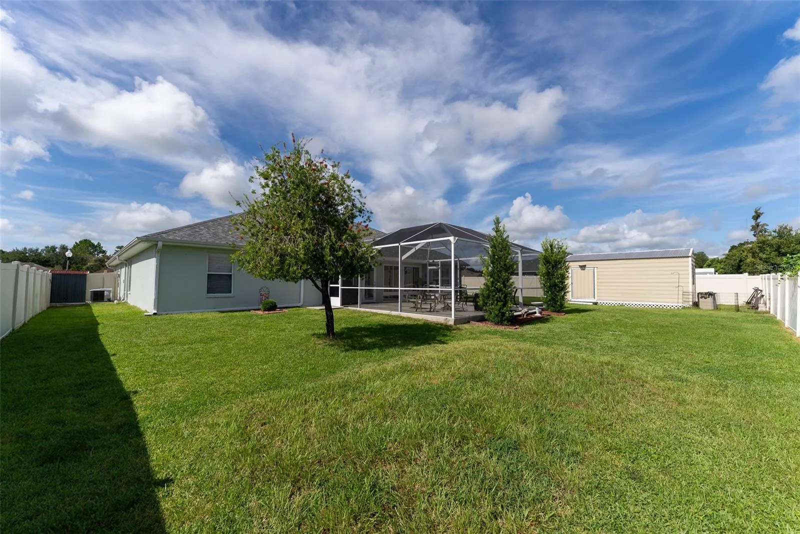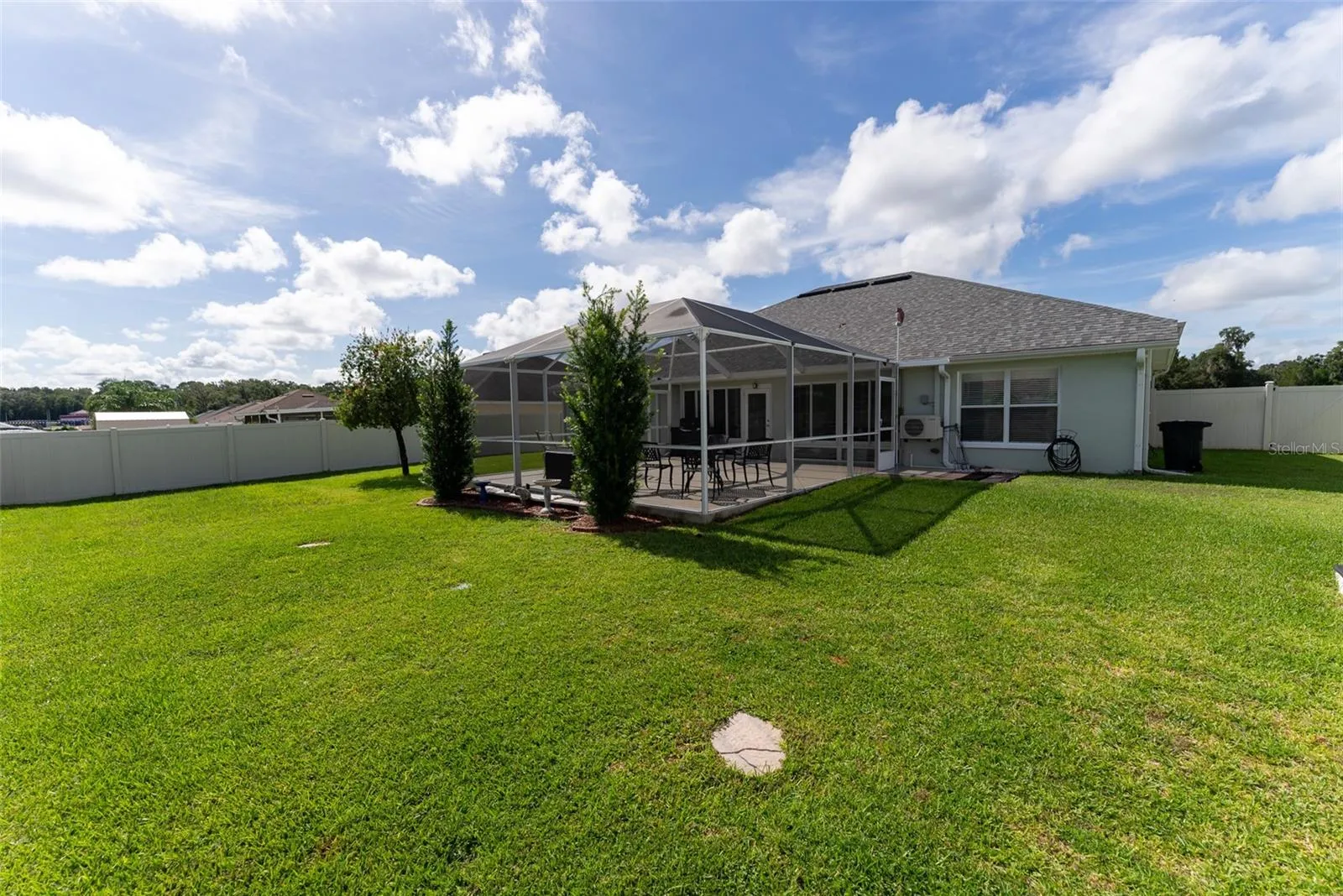 On a sunlit corner lot, where breezes carry the scent of fresh-cut grass, a home waits to wrap you in comfort. Step through the door and into a living room awash in natural light, its soaring ceilings making every moment feel open and free. The kitchen gleams with granite countertops and stainless steel appliances, perfect for unhurried breakfasts or lively gatherings with friends. A flexible bonus room stands ready to become whatever life calls for next: a cozy library, a home office, or a space for new dreams to take shape. The master suite offers a peaceful retreat with a walk-in closet, dual sinks, and a tiled walk-in shower designed for quiet moments. This home’s thoughtful updates a new roof (2024), brand-new garage door, enclosed porch with mini-split AC, and self-timer water softener mean you can settle in without worry. Outside, the screened lanai invites you to linger over coffee while the fenced yard offers privacy, space, and security. A 12×22 storage shed, workshop-ready garage with sink, 7-zone sprinkler system, and generator hookup with included generator make life here as easy as it is beautiful. All this, just minutes from local shops, doctors, schools, and the vibrant energy of The Villages. This isn’t just a home. it’s where your story unfolds.