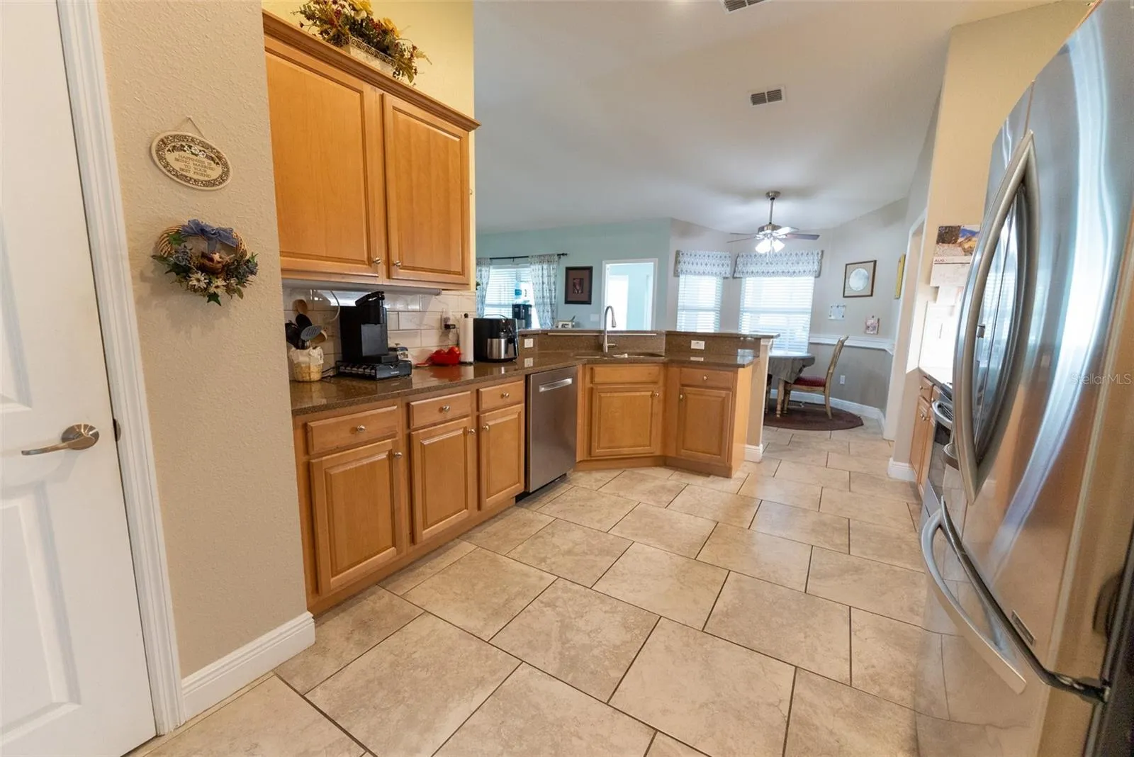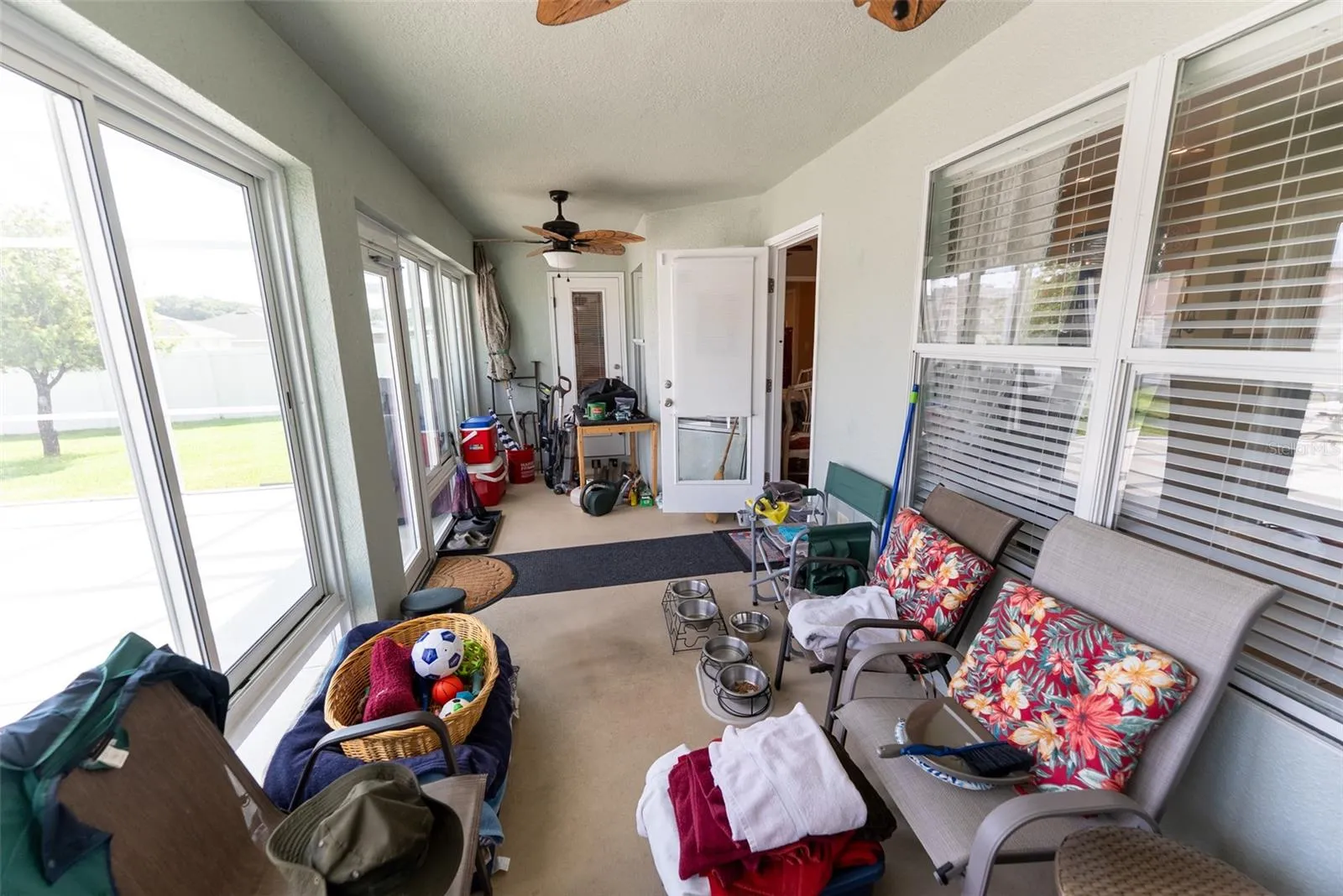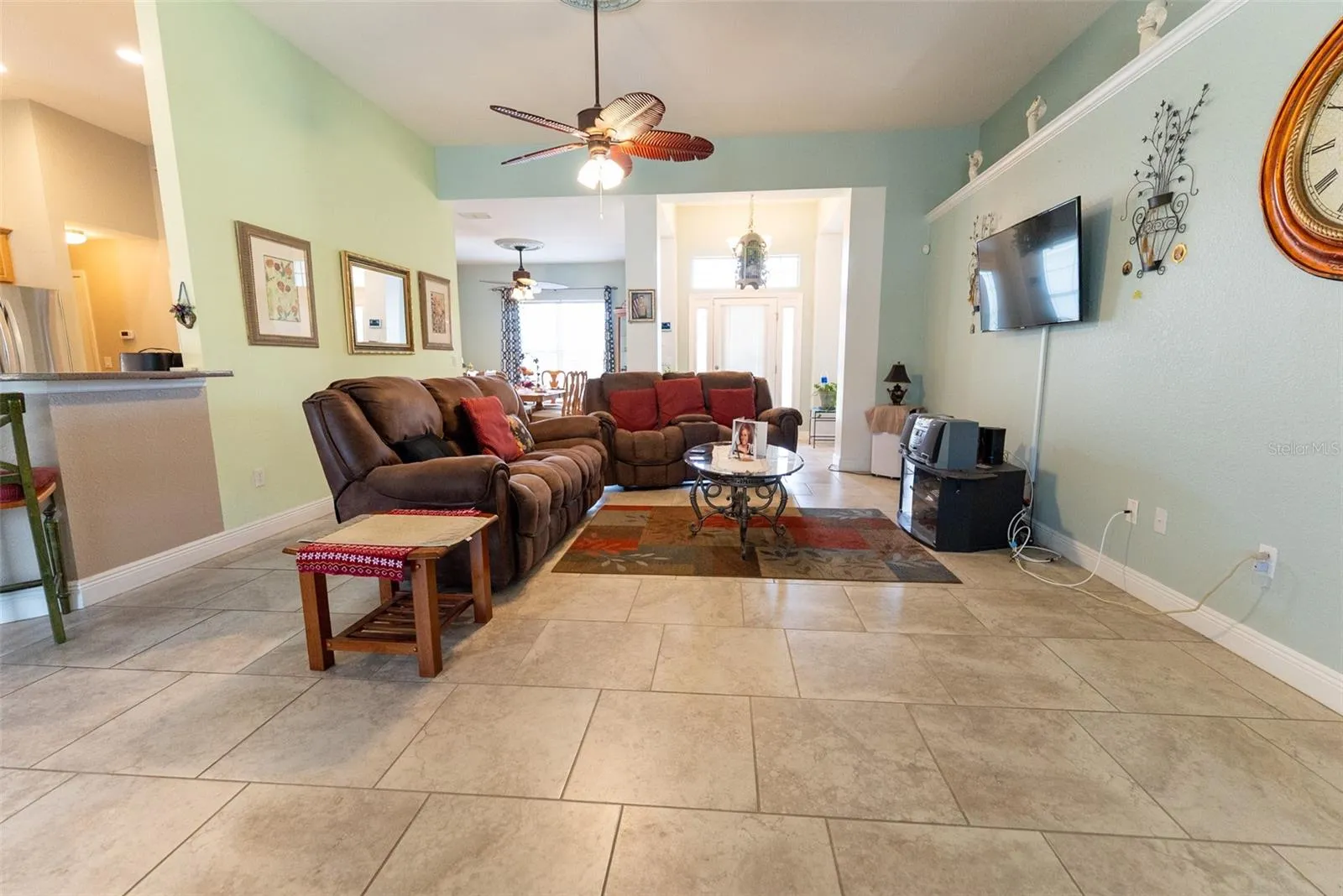 On a sunlit corner lot, where breezes carry the scent of fresh-cut grass, a home waits to wrap you in comfort. Step through the door and into a living room awash in natural light, its soaring ceilings making every moment feel open and free. The kitchen gleams with granite countertops and stainless steel appliances, perfect for unhurried breakfasts or lively gatherings with friends. A flexible bonus room stands ready to become whatever life calls for next: a cozy library, a home office, or a space for new dreams to take shape. The master suite offers a peaceful retreat with a walk-in closet, dual sinks, and a tiled walk-in shower designed for quiet moments. This home’s thoughtful updates a new roof (2024), brand-new garage door, enclosed porch with mini-split AC, and self-timer water softener mean you can settle in without worry. Outside, the screened lanai invites you to linger over coffee while the fenced yard offers privacy, space, and security. A 12×22 storage shed, workshop-ready garage with sink, 7-zone sprinkler system, and generator hookup with included generator make life here as easy as it is beautiful. All this, just minutes from local shops, doctors, schools, and the vibrant energy of The Villages. This isn’t just a home. it’s where your story unfolds.