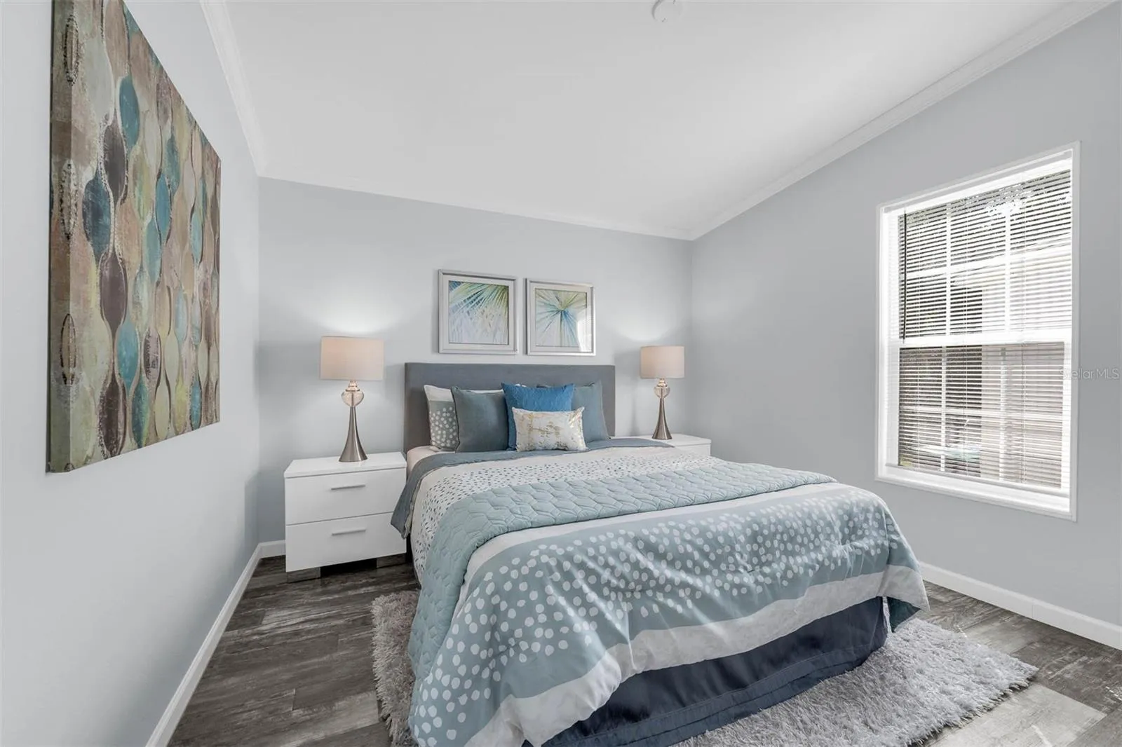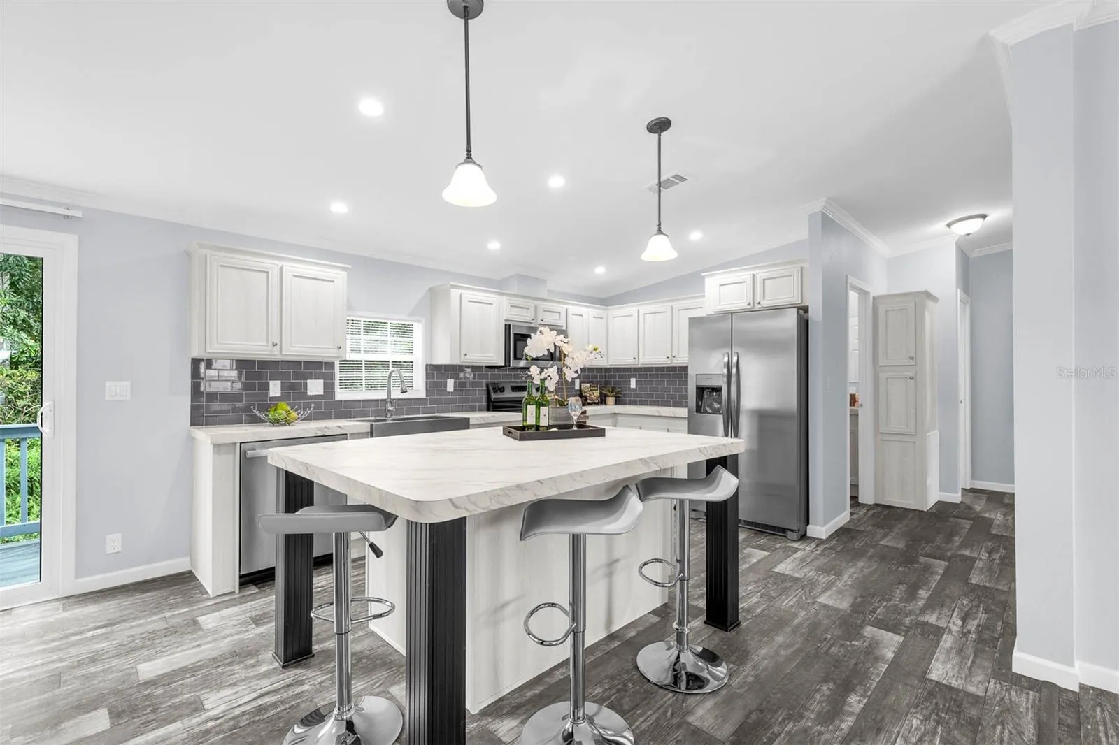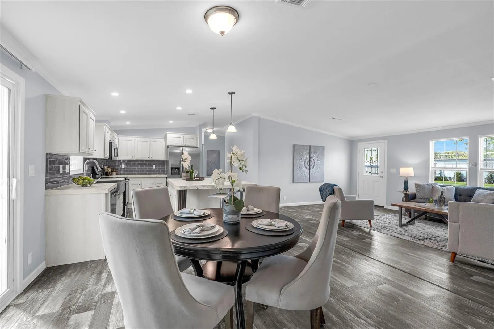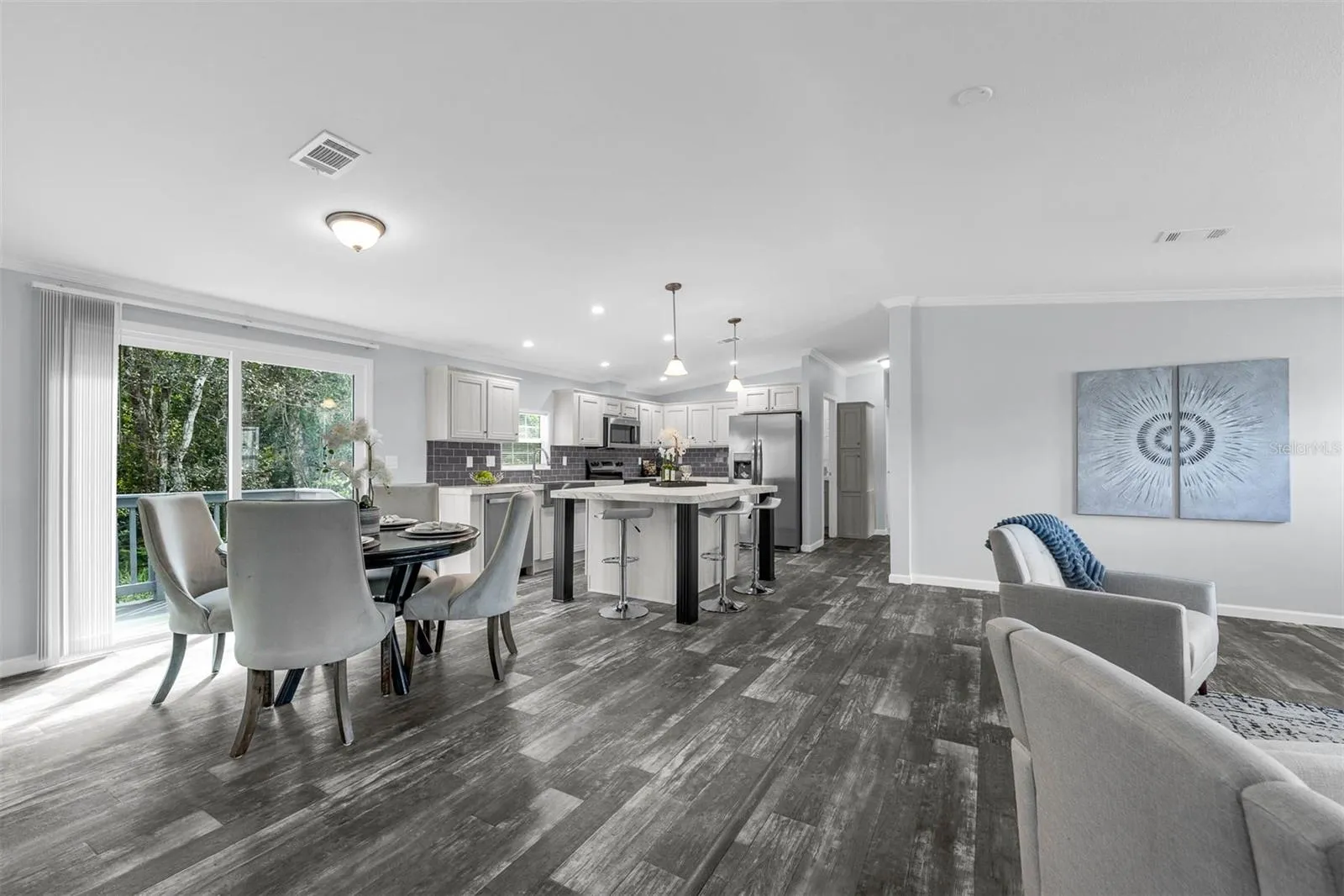 BRAND NEW – NO HOA – YOU OWN THE LAND (NO LOT FEE) – $3,000 SELLER PAID BUYERS CLOSING COSTS – PRICED BELOW APPRAISAL! Features an open living space and split bedroom floor plan. Luxury vinyl floors throughout the entire home for years of low maintenance. The living/dining/kitchen areas are the center of the home and feature vaulted ceilings, crown moulding, with modern color and finishes. A large island in the kitchen is surrounded by lots of cabinets, stainless steel appliances and plenty of counter space. The primary suite has a bedroom with vaulted ceiling and walk in closet. The ensuite bath has dual sinks, large linen closet and walk-in shower with glass door. The additional 3 bedrooms and full bath are on the opposite side of the home. A roomy inside laundry room is located off the living area. Money saving features include double pane windows with blinds already installed and upgraded attic insulation. Sliding doors lead to the rear porch and provide a view of the huge greenbelt behind the home.