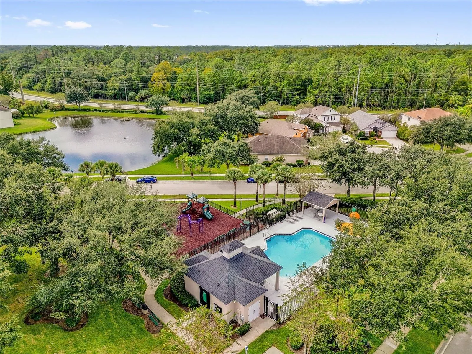 Spacious 4-bed, 2.5-bath split-level home in the Sanctuary — 1,526 sq ft, 2-car garage. First-floor primary suite with walk-in closet and ensuite (dual vanities, soaking tub, separate shower). Bright kitchen, generous living area, tile & laminate on main level; three carpeted bedrooms upstairs. Laundry conveniently located off the garage. Rear patio with partial landscaping and privacy. Recent updates: roof (2019) and water heater (2023). Community pool & playground; minutes to UCF, shopping, dining, and recreation.