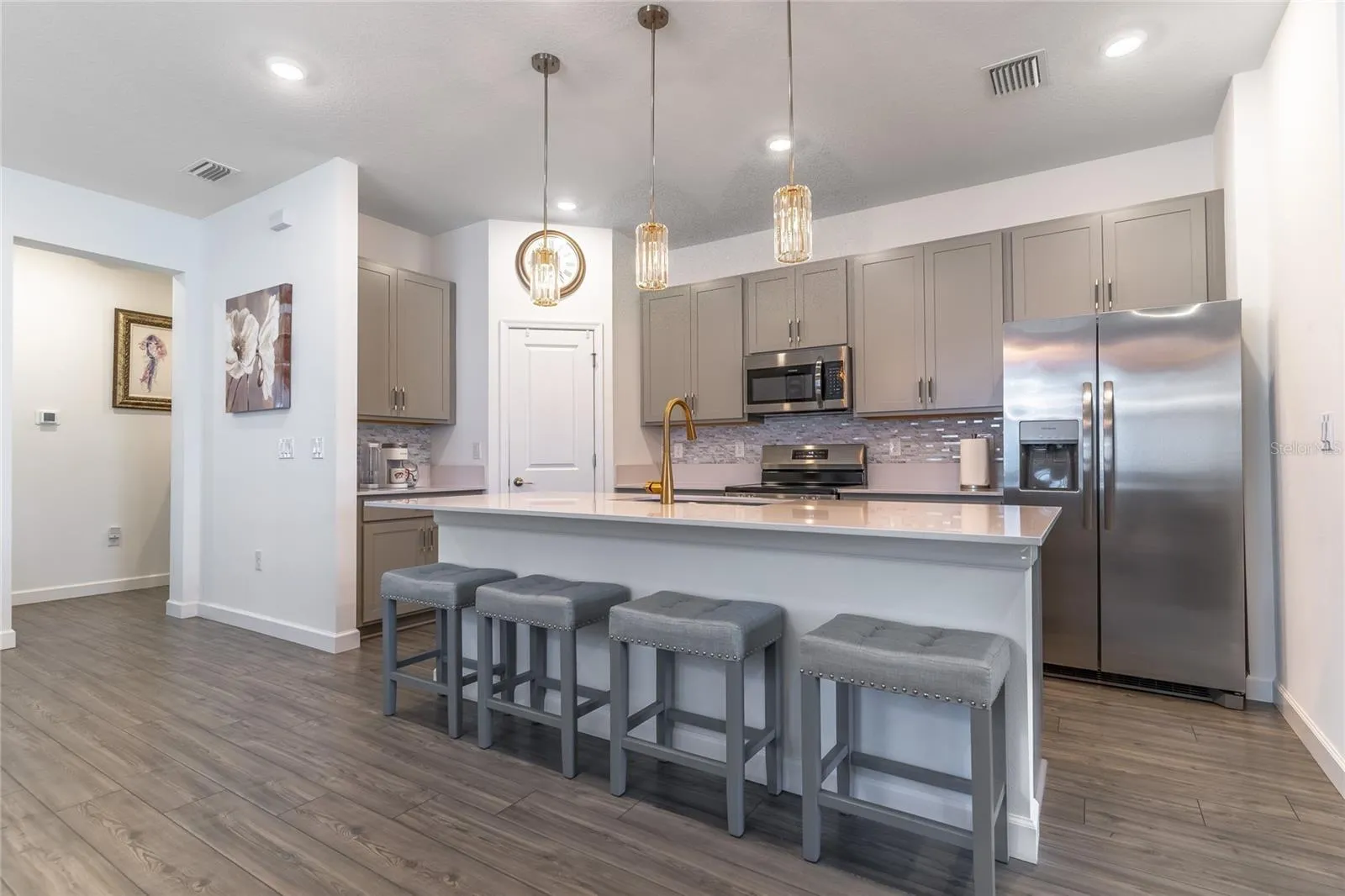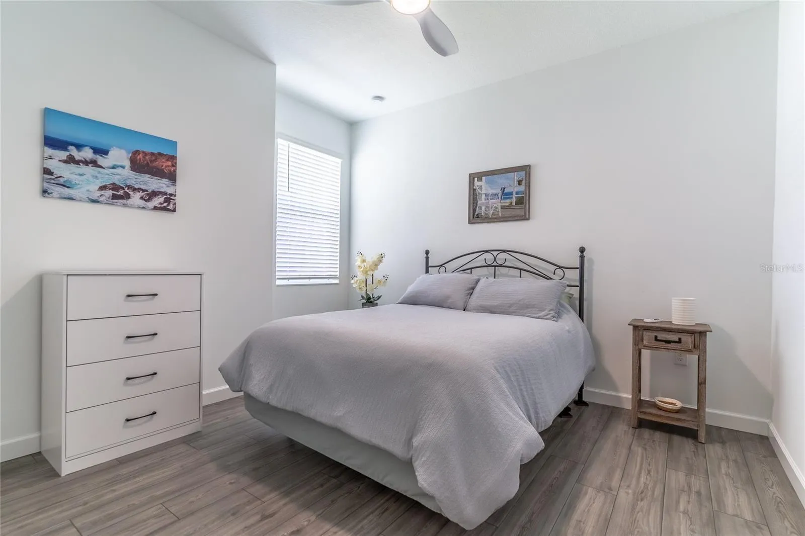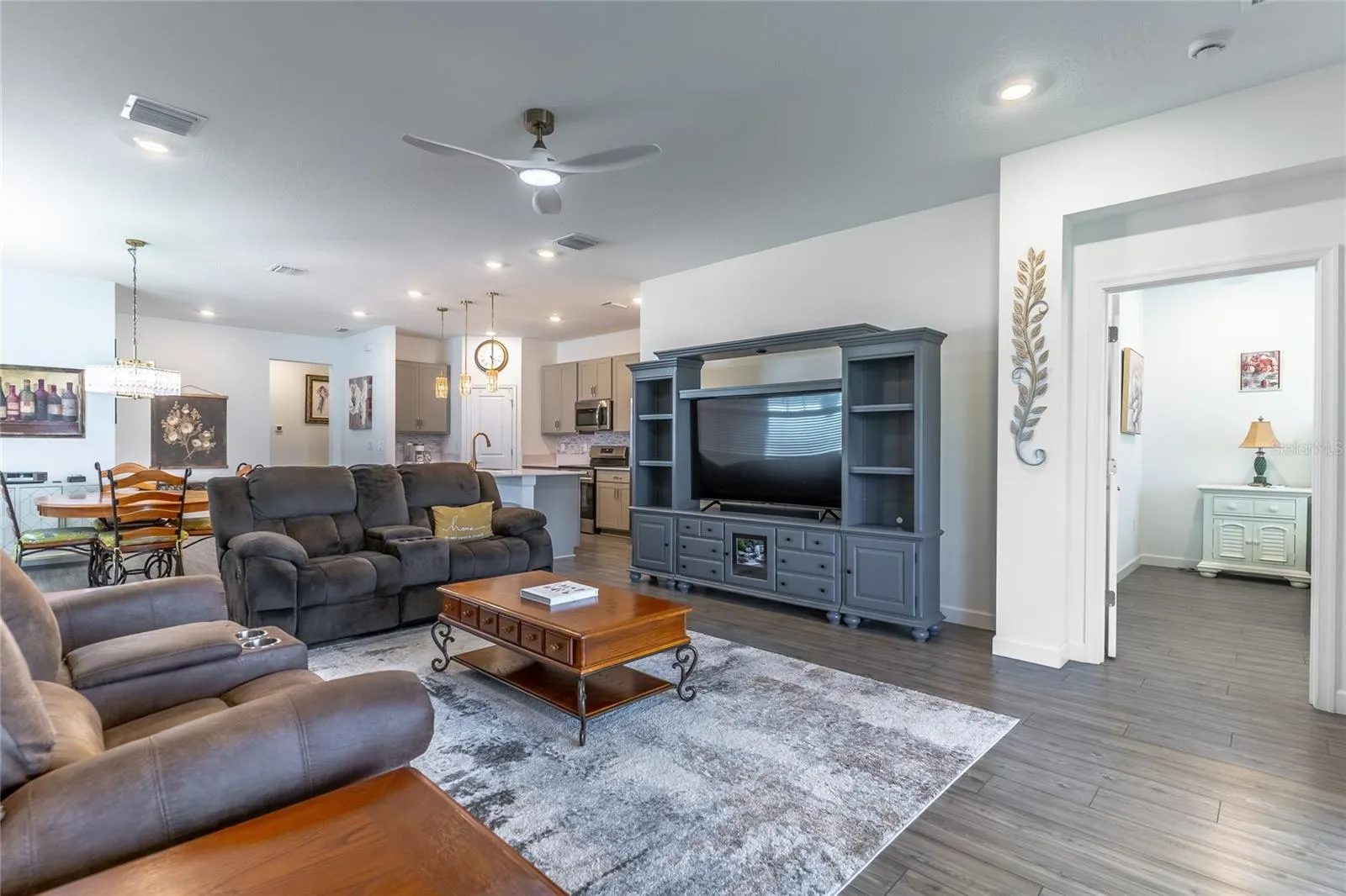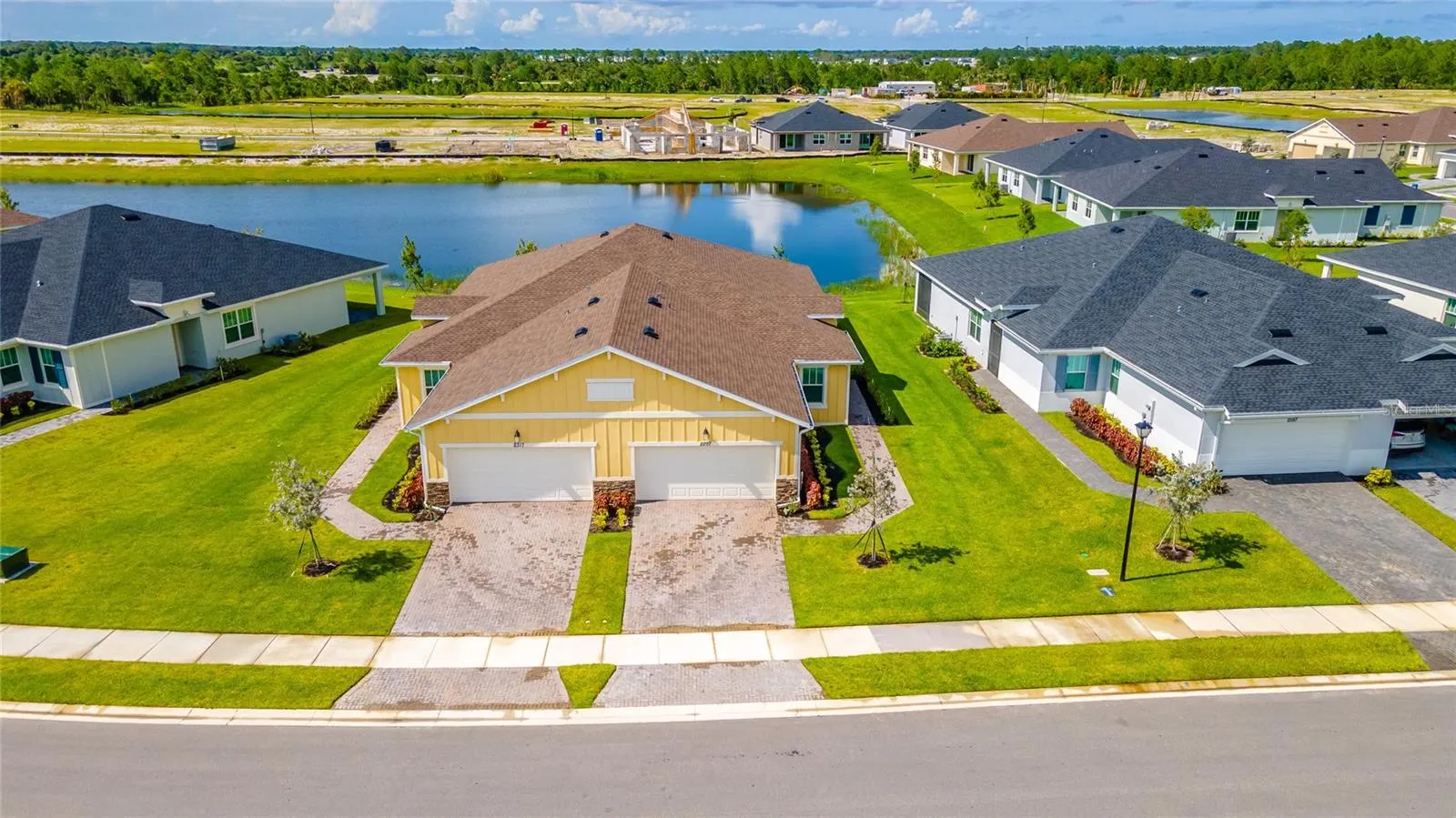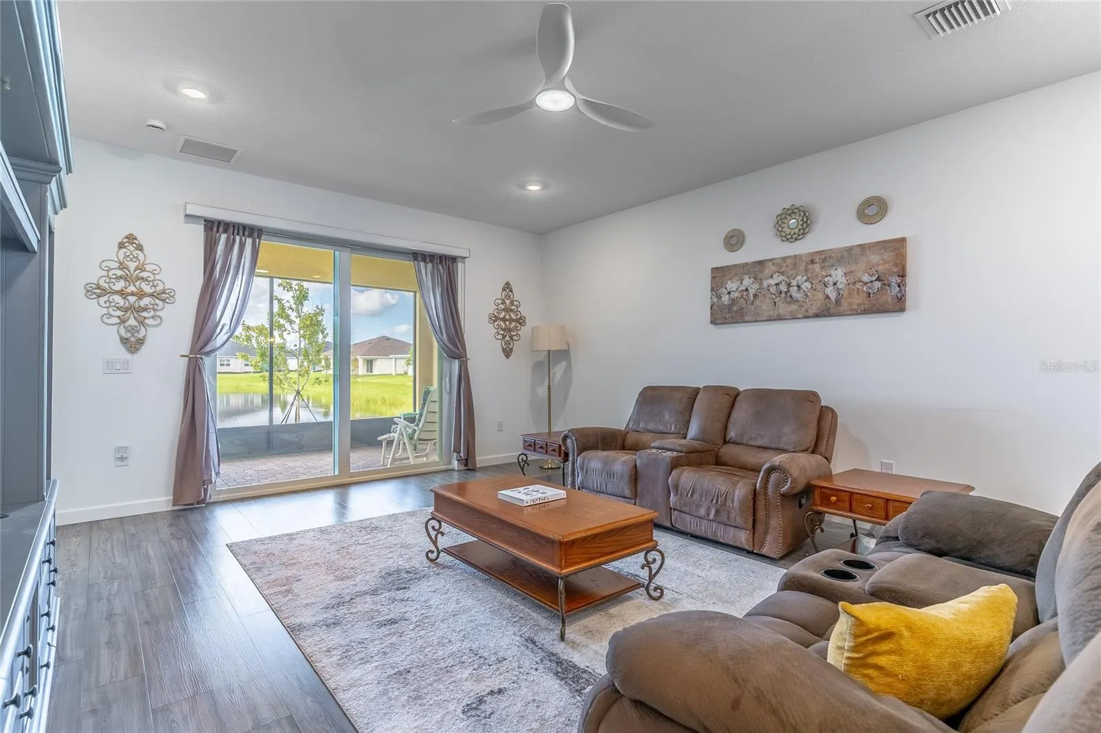 MOVE-IN NOW and get 5k towards CLOSING COSTS. This Azalea floorplan by Lennar is a stylishly UPGRADED Resale Home – Save Time, Money, and Hassle! This less than one-year-old home features luxury vinyl floors and a screened rear patio with beautiful water views. Enjoy the peaceful, no-through street and lawn care included in this active 55 and better community featuring resort-style amenities. Amenities include a clubhouse, pool, movie theater, dog park, tennis & pickleball courts, putting green, walking/golf cart paths, fishing ponds & more. Step inside for a modern take on a classic design, featuring an open floor plan that seamlessly connects a modern kitchen, dining area & great room for easy living.A stylish kitchen with backsplash, new hardware, modern ceiling fans, impact windows and slider, and concrete block construction. The split layout and a flex-space are perfect for an office, pet room, or storage. Discover how luxurious life can be