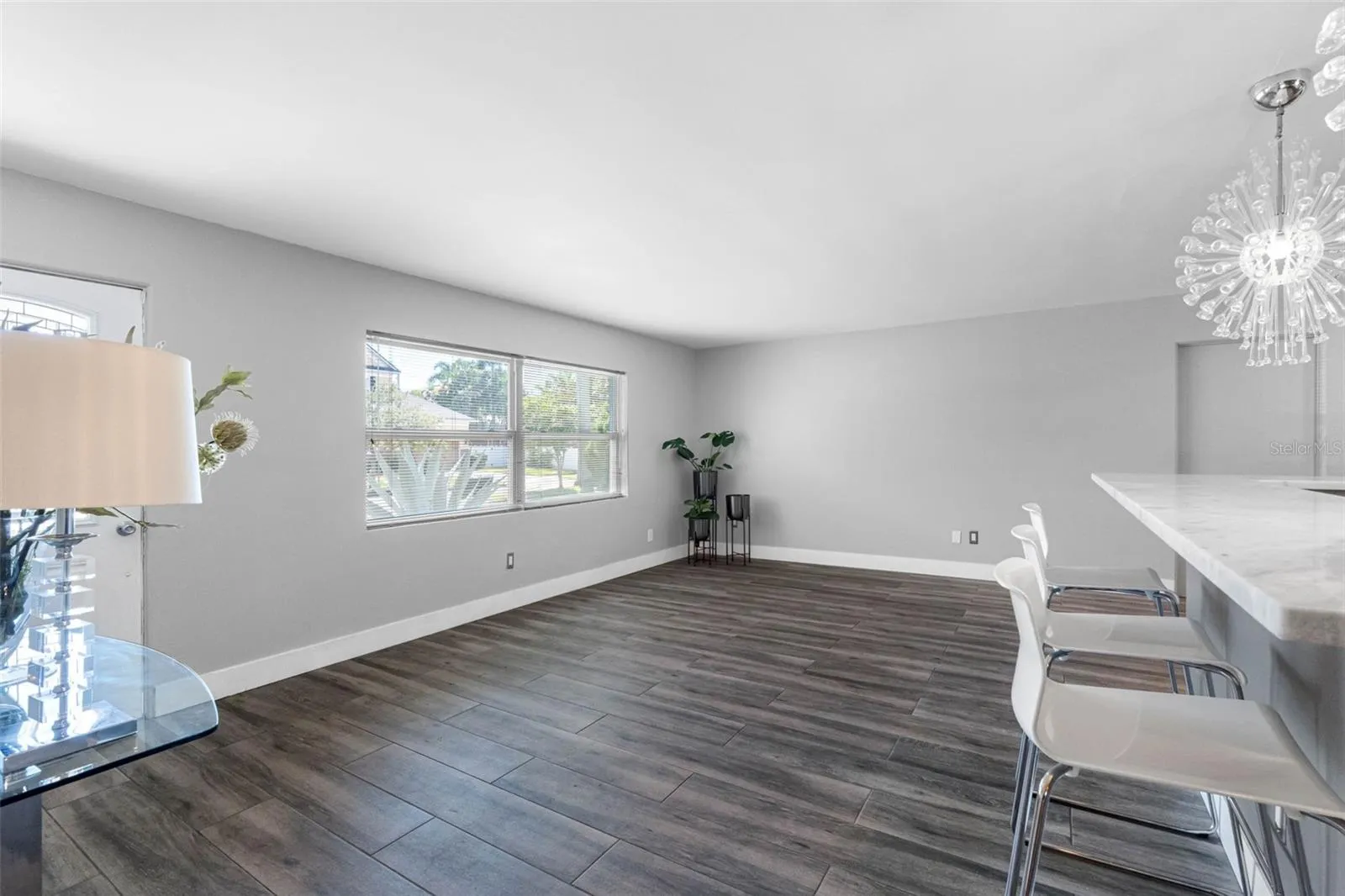 Some pictures have been virtually staged. This contemporary, residence sits proudly on a sunny corner lot, a block-constructed home surrounded by million-dollar neighbors and just moments from vibrant downtown St. Petersburg. Museums, galleries, and fine dining are minutes away, while quick access to I-275 places Tampa International Airport and Clearwater within easy reach. Inside, a spacious open floor plan effortlessly connects everyday living with effortless entertaining. The beautifully updated kitchen features granite countertops, stainless steel appliances, a new dishwasher, a new hot water heater, while three fresh, bright bathrooms serve three generously sized bedrooms. A dedicated home office, play room, exercise gym or den provides the perfect spot for work, hobbies, or working out. Life here extends outdoors. Step into a manicured garden wrapped in green foliage, an inviting setting for morning coffee or evening gatherings.