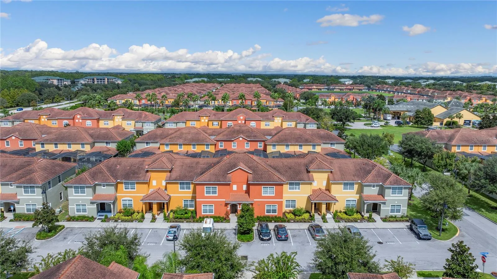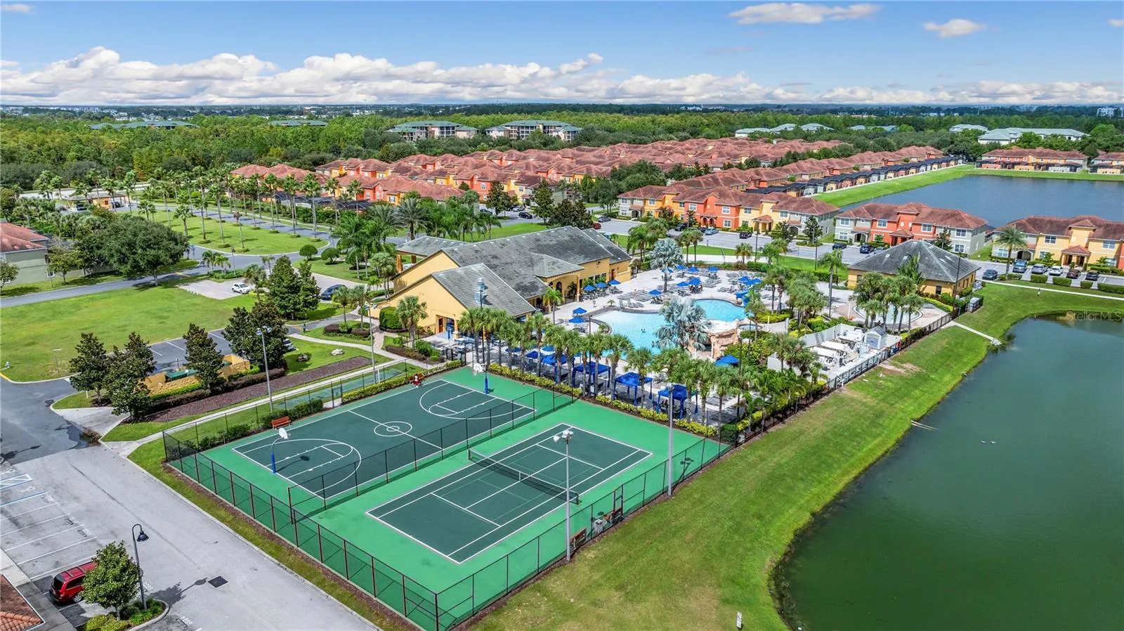 Welcome to this beautifully furnished 4-bedroom, 3-bath townhome located in the highly sought-after gated community of Paradise Palms. This spacious residence features a private screened-in pool, open-concept living and dining areas, and a modern kitchen with granite countertops and stainless steel appliances. A fourth bedroom has been thoughtfully added, providing extra space ideal for guests, an office, or family needs. The home is fully equipped and move-in ready, offering comfort and style throughout. Rent includes high-speed internet, cable TV, valet trash service, and private pool maintenance. Residents also enjoy access to resort-style amenities such as a clubhouse with a fitness center and movie theater, a large community pool with spa, tiki bar, convenience store, playground, tennis courts, and more. Ideally situated just minutes from Disney parks, restaurants, shopping, and major highways, this property offers the perfect blend of luxury and convenience.