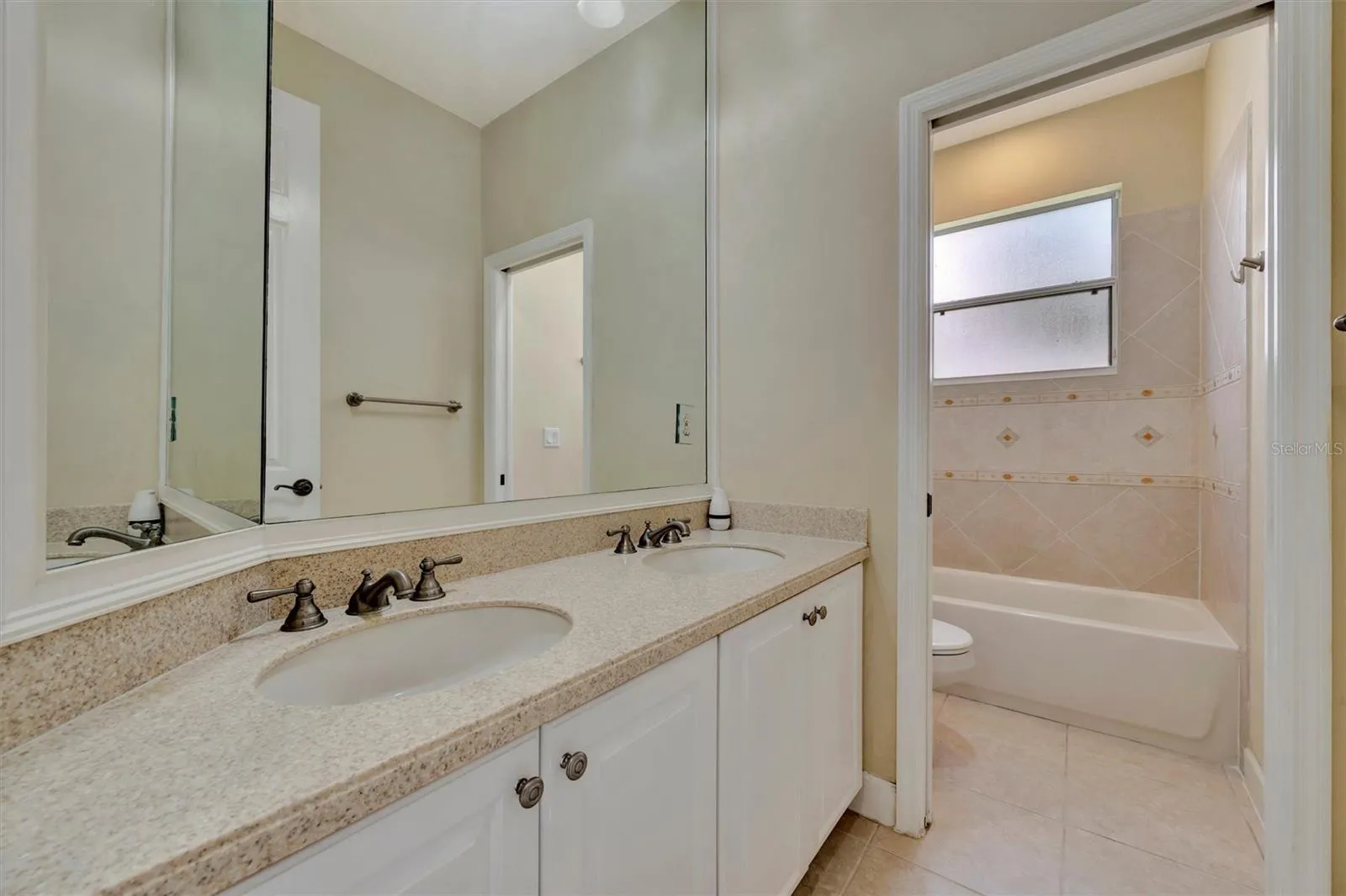 This spacious 3 bedroom, 2 bathroom home offers a versatile layout with additional room that can serve as a home office, play nook, or formal dining room. The kitchen features a breakfast bar and eat-in space, opening to a large oversized family room perfect for gatherings. The primary suite is tucked privately at the back of the home, complete with a garden tub, dual vanities, and a separate shower. Two guest bedrooms share a bathroom designed with a private commode and shower room for added convenience. Additional highlights include an indoor laundry room with washer/dryer provided, a large garage with fresh epoxy floors, and the entire home painted in a light coastal hue, all set for your upcoming move! The backyard provides a tranquil setting ideal for potted plants or a zen garden, while the community offers a refreshing pool for residents to enjoy.